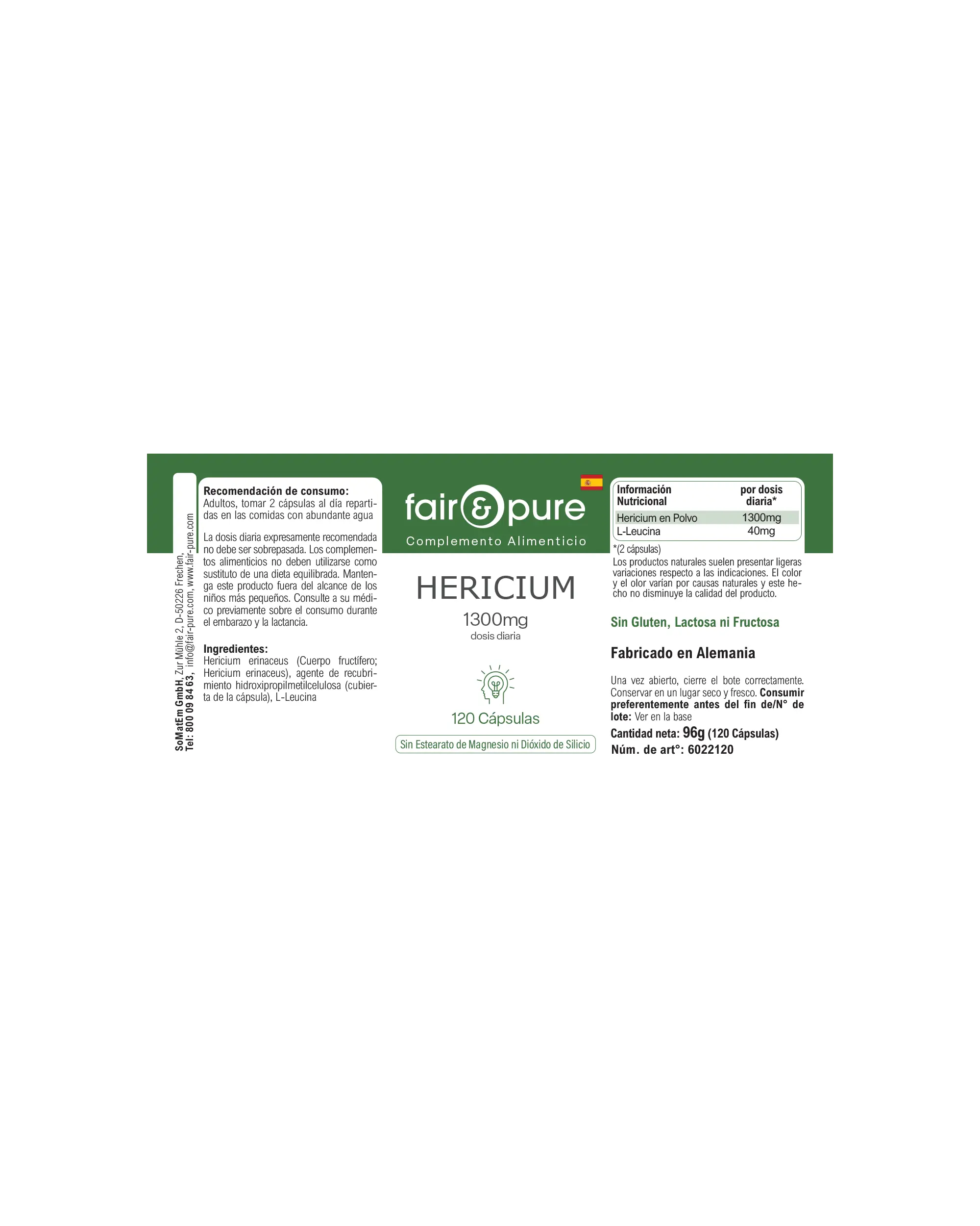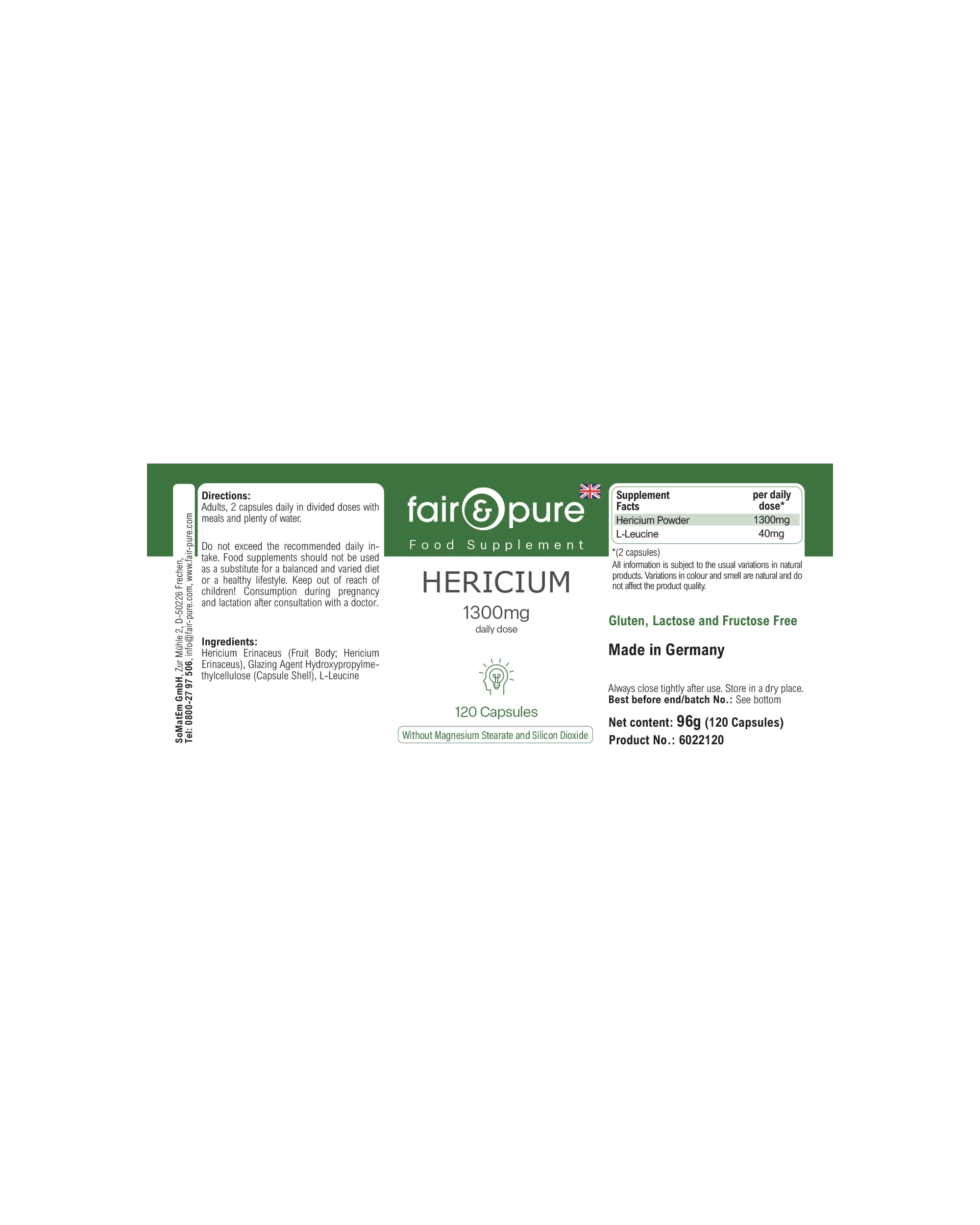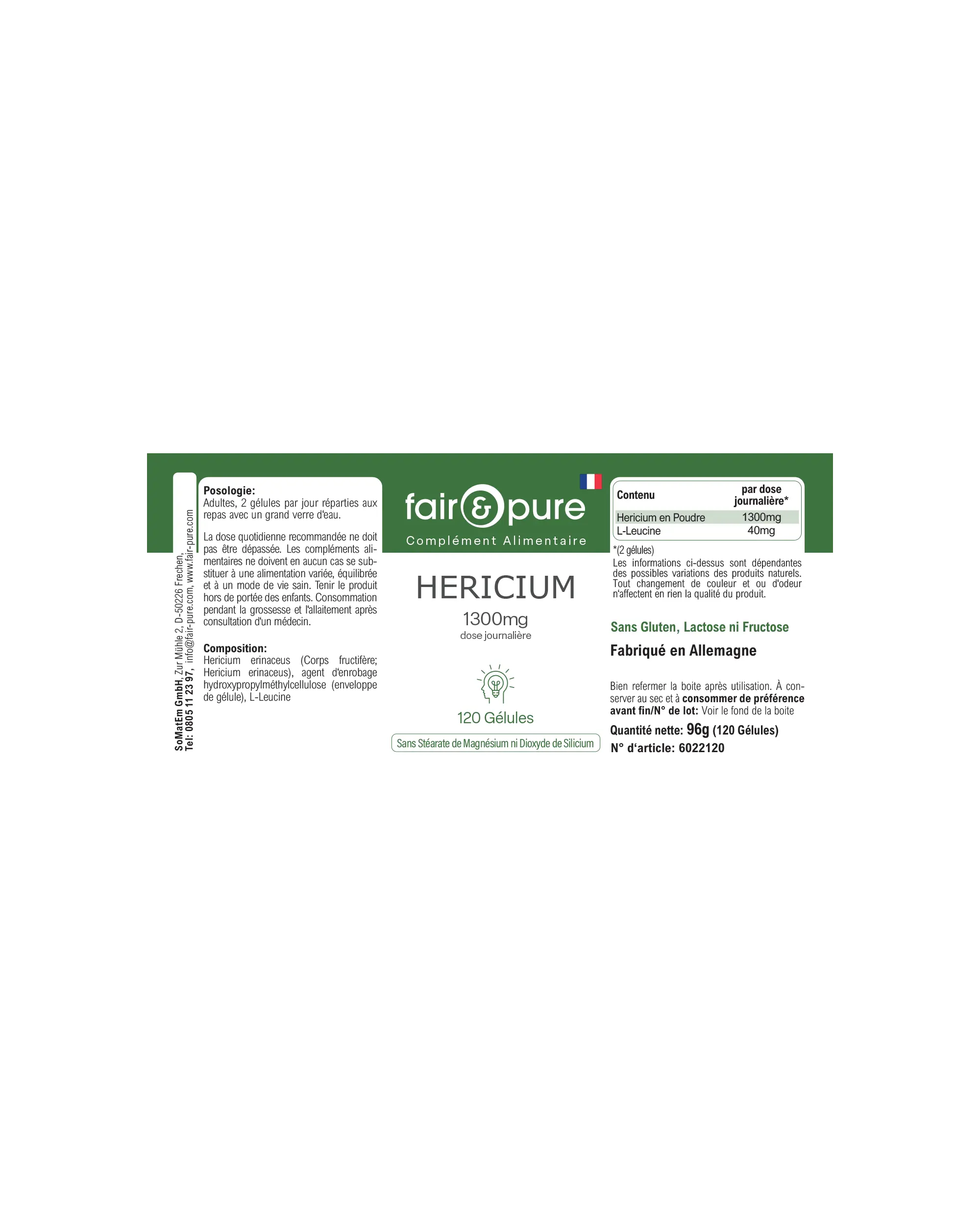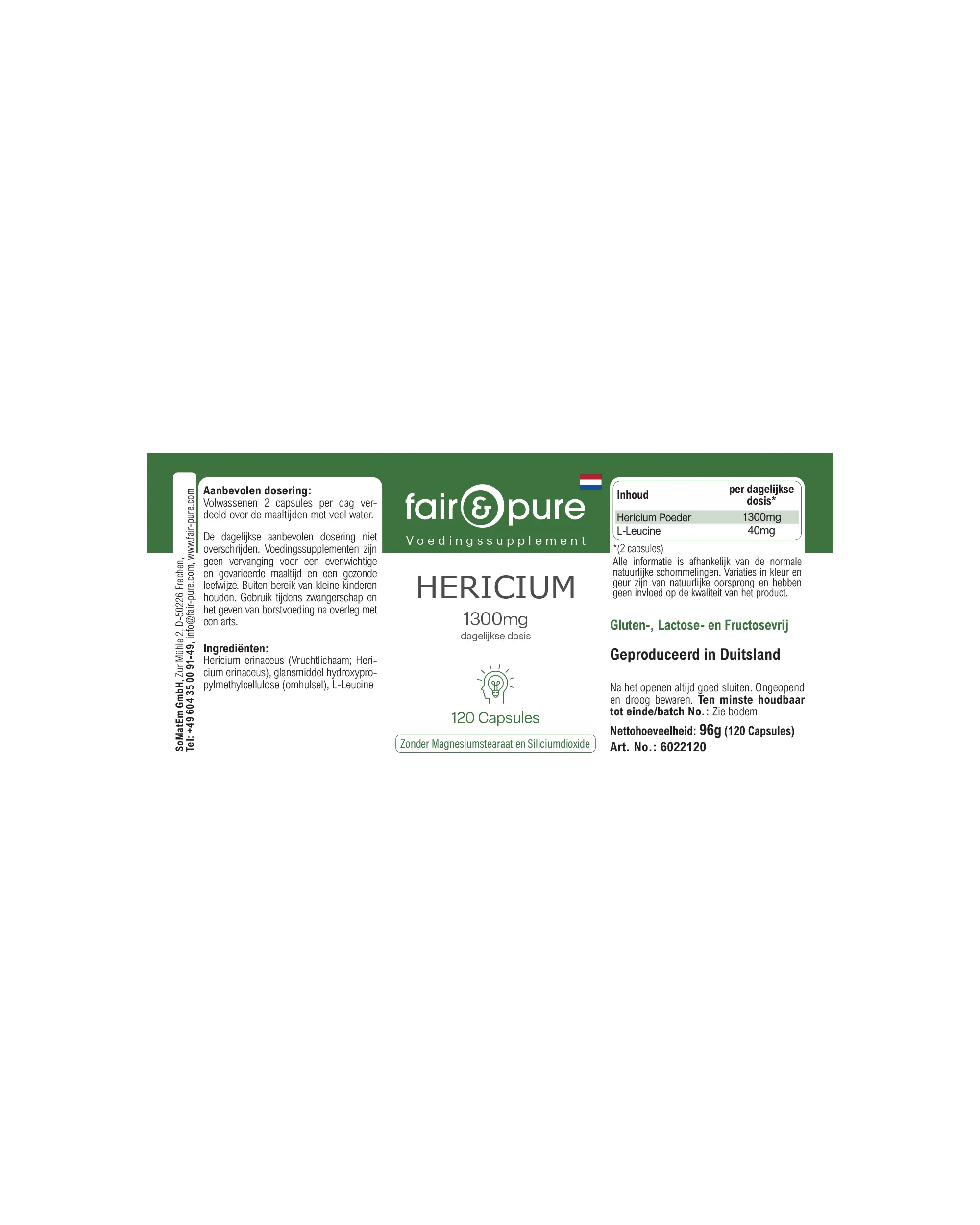 Hericium erinaceus (Vruchtlichaam; Hericium erinaceus), glansmiddel hydroxypropylmethylcellulose (omhulsel), L-Leucine