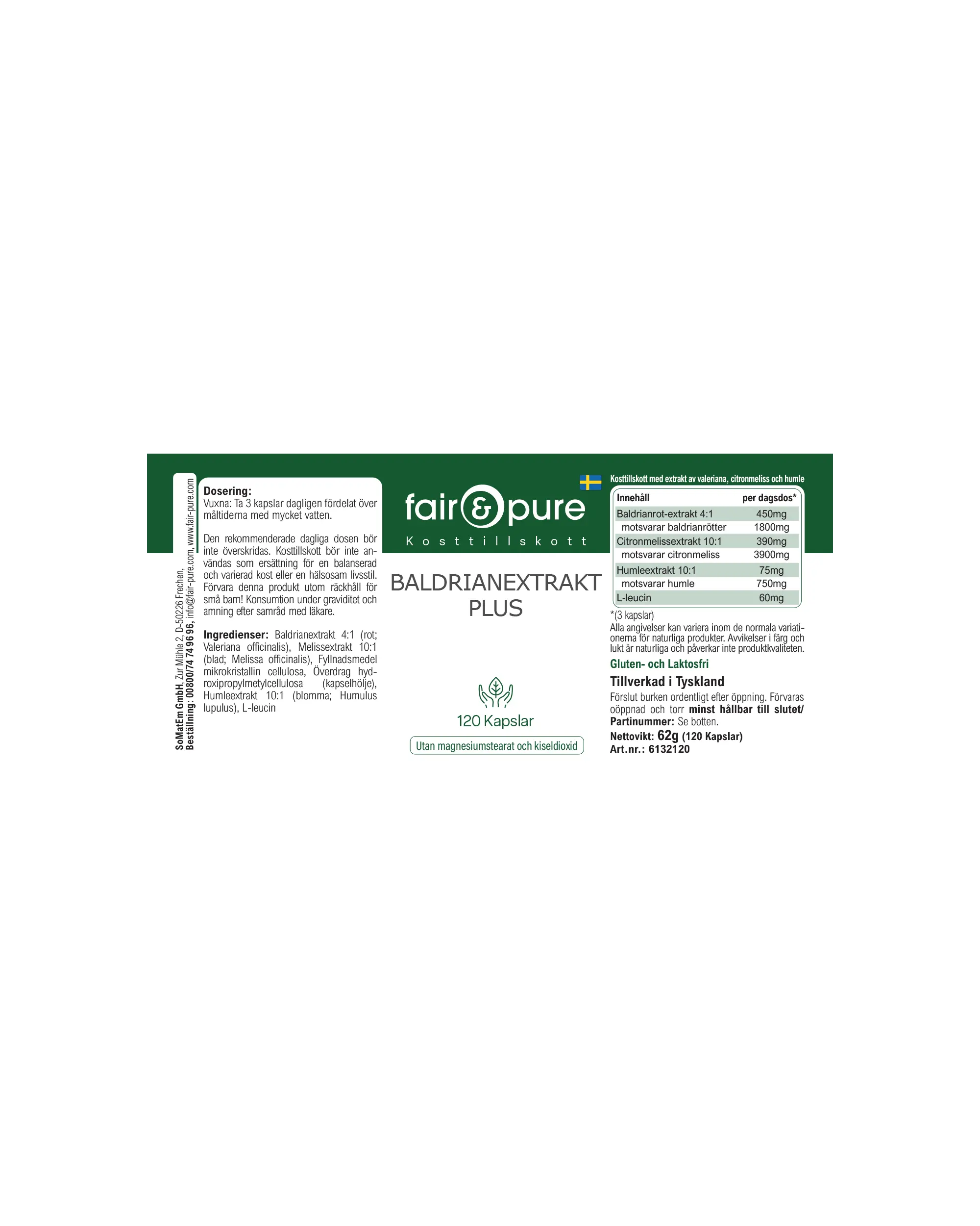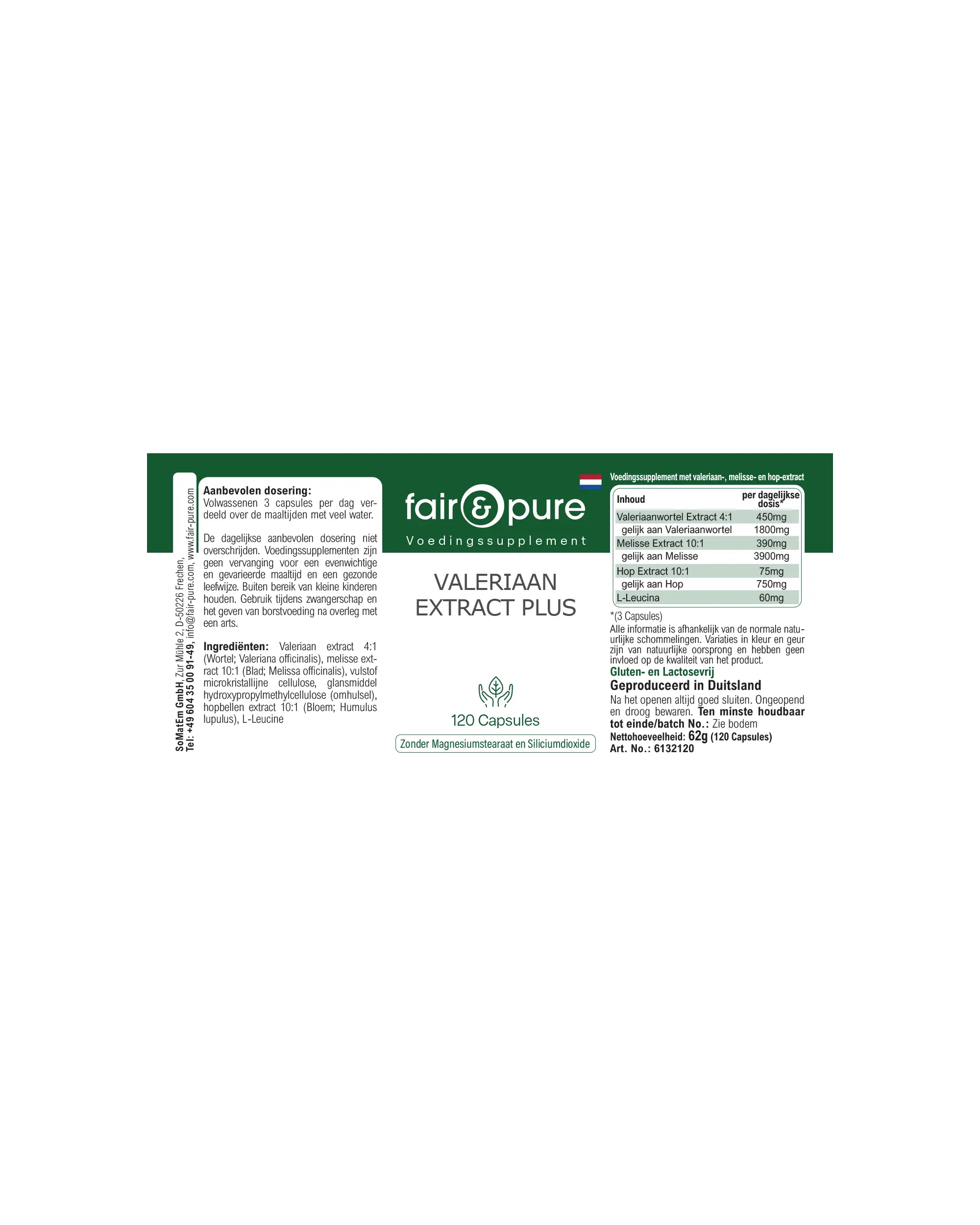 Productinformatie "Valeriaan Extract Plus - 120 capsules - Gemakkelijk in te nemen | fair-pure"