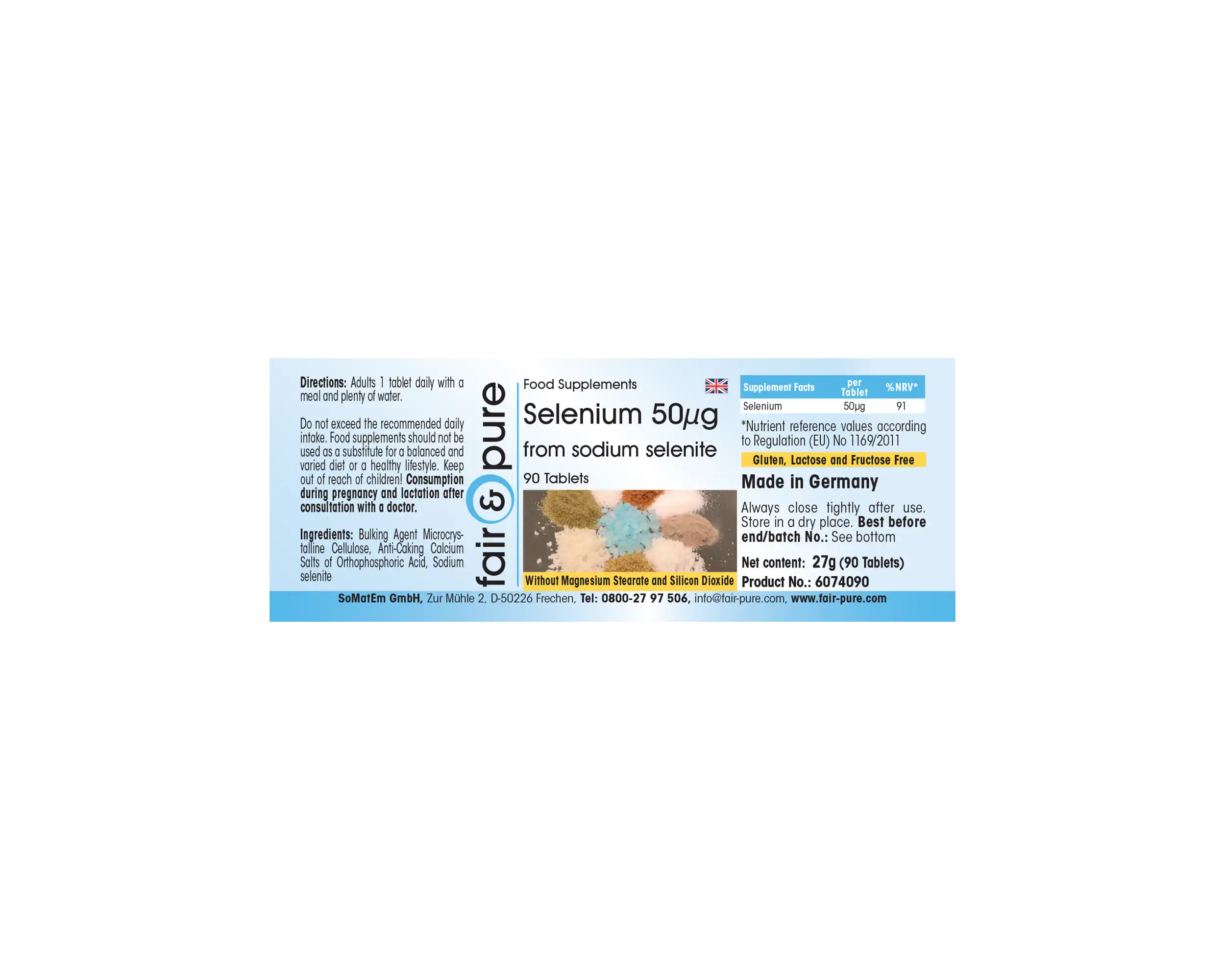 Bulking Agent Microcrystalline Cellulose, Anti-Caking Calcium Salts of Orthophosphoric Acid, Sodium selenite