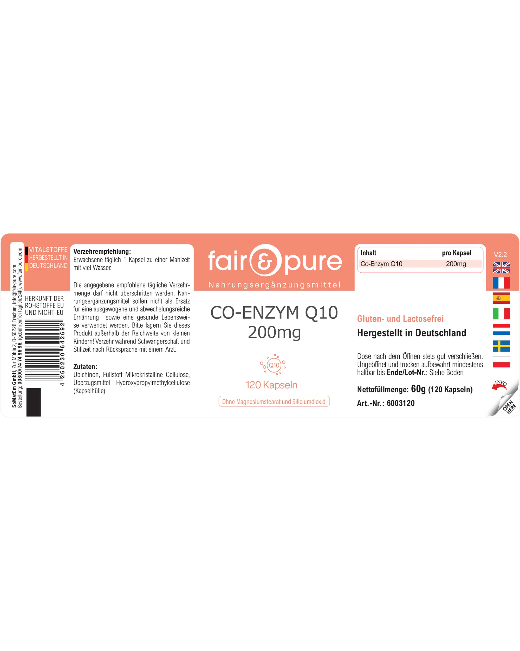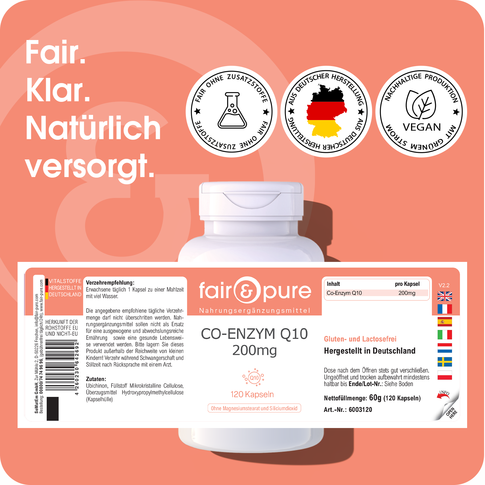 Produktinformationen "Co-Enzym Q10 200mg - Ubichinon - 120 Kapseln | fair-pure"