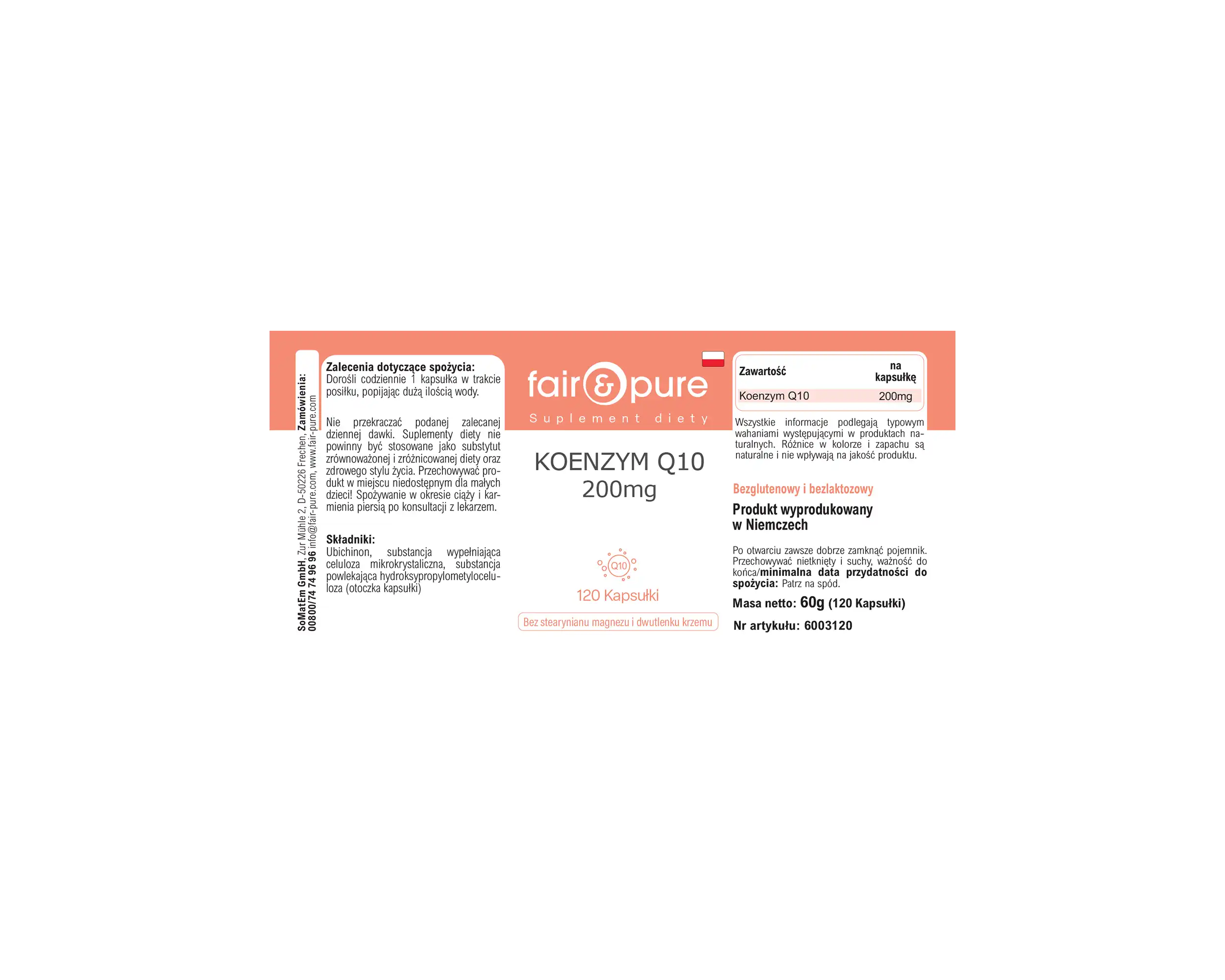 Co-Enzym Q10 200 mg von Fair & Pure enthält hochwertiges Ubichinon in hochdosierter Form. Coenzym Q10 ist eine vitaminähnliche Substanz, die natürlicherweise im menschlichen Körper vorkommt und auch über die Nahrung aufgenommen wird.