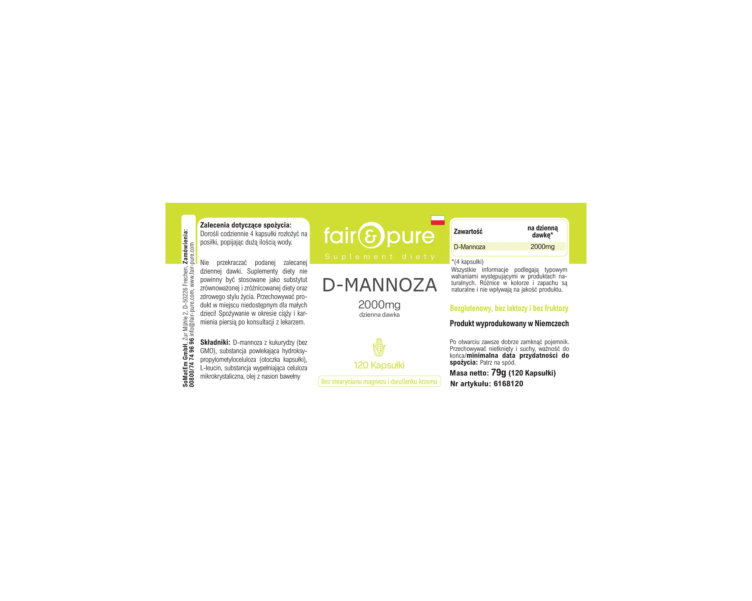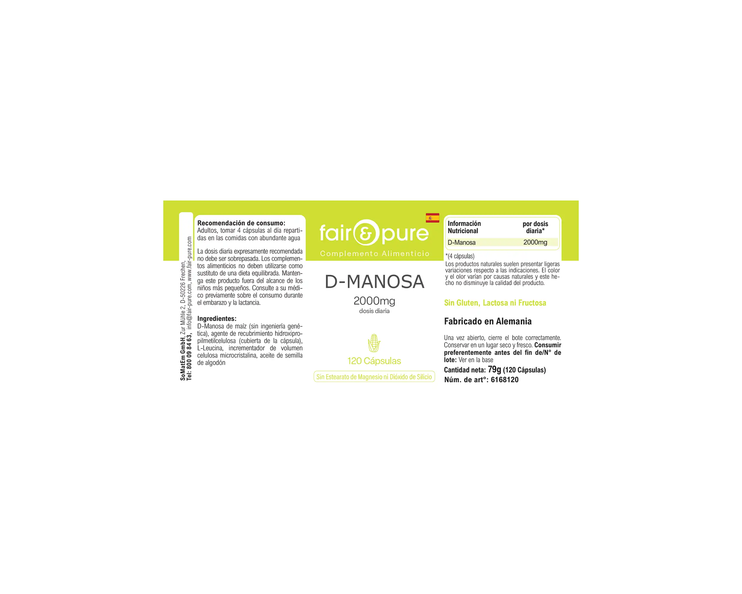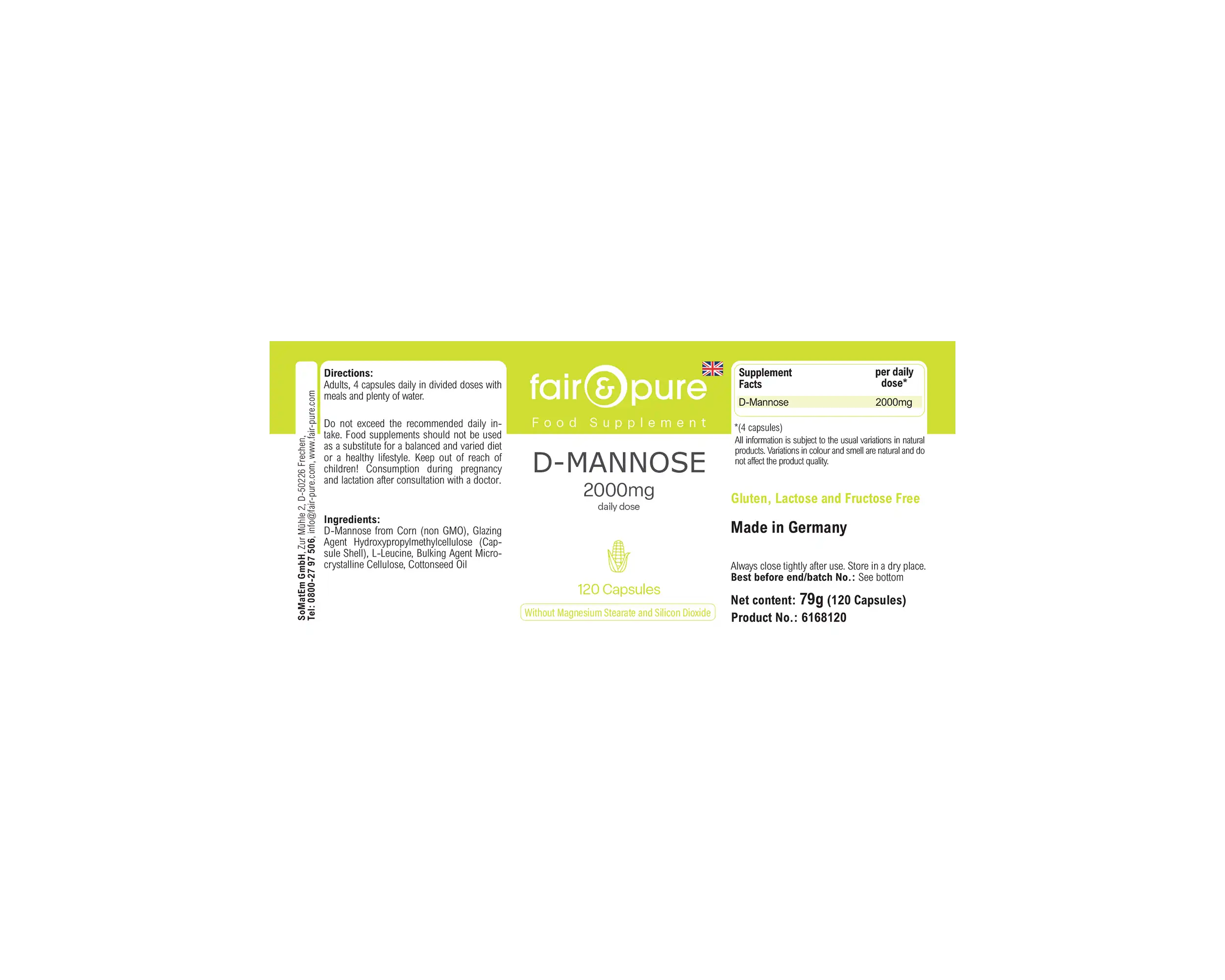 Diese Kapseln enthalten 2000 mg D-Mannose, die aus Mais gewonnen wird und ohne Gentechnik verarbeitet ist. D-Mannose ist ein Zucker, der häufig zur Unterstützung der Harnwegsgesundheit verwendet wird, indem er hilft, unerwünschte Substanzen aus den Harnwegen zu binden.