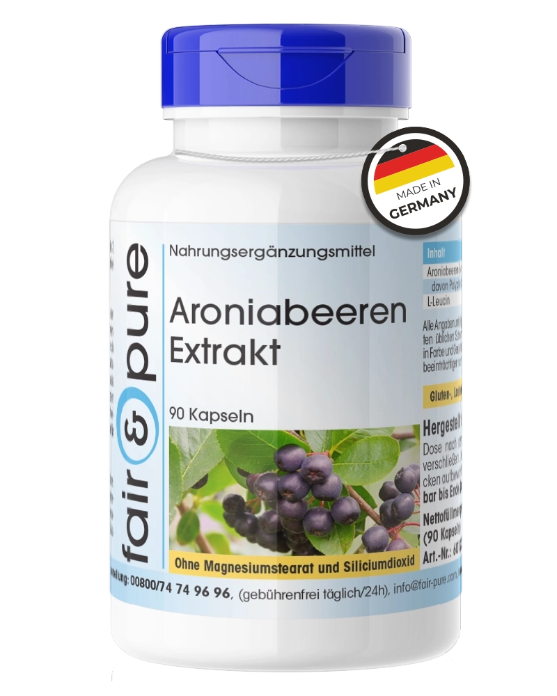 Die praktische Kapselform ermöglicht eine einfache Einnahme und eine gezielte Ergänzung mit Aroniabeeren-Extrakt. Jede Kapsel liefert eine präzise Dosierung und lässt sich mühelos in den täglichen Ernährungsplan integrieren.