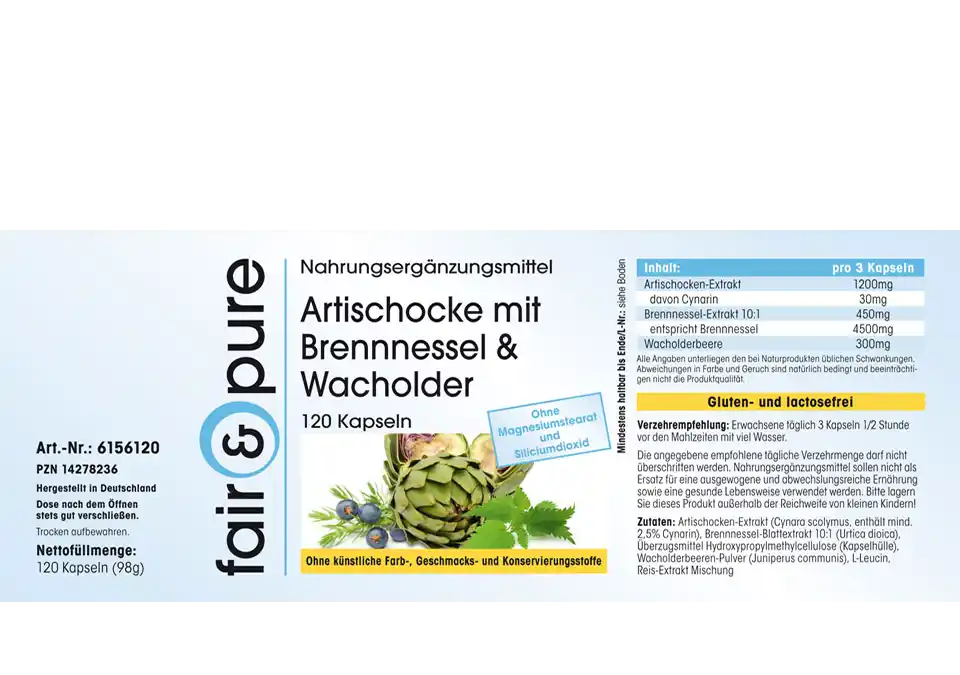 Produktinformationen "Artischocke mit Brennnessel & Wacholder | fair-pure"