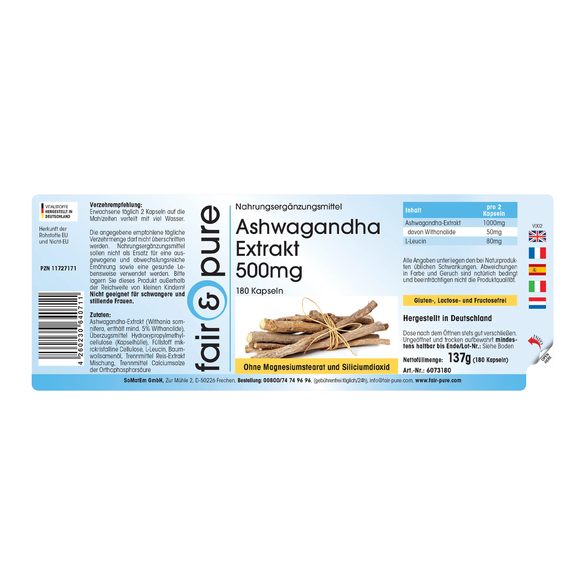 Produktinformationen "Ashwagandha Extrakt 500mg – Ayurvedischer Pflanzenextrakt | Fair & Pure"