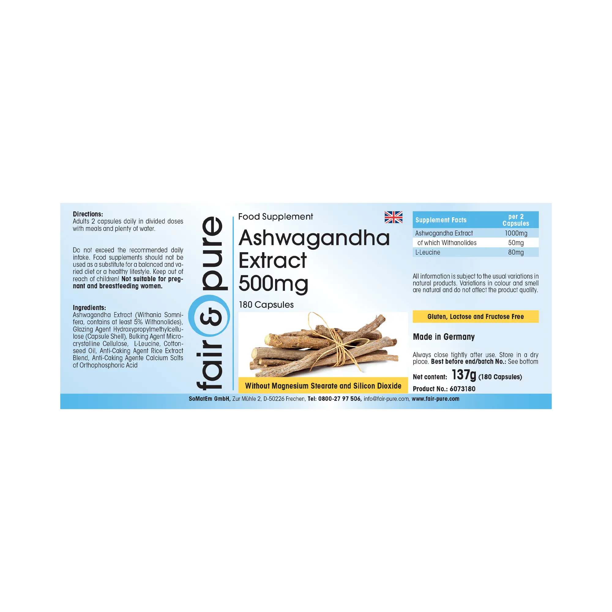 Ashwagandha Extrakt 500mg – Ayurvedischer Pflanzenextrakt | Fair & Pure