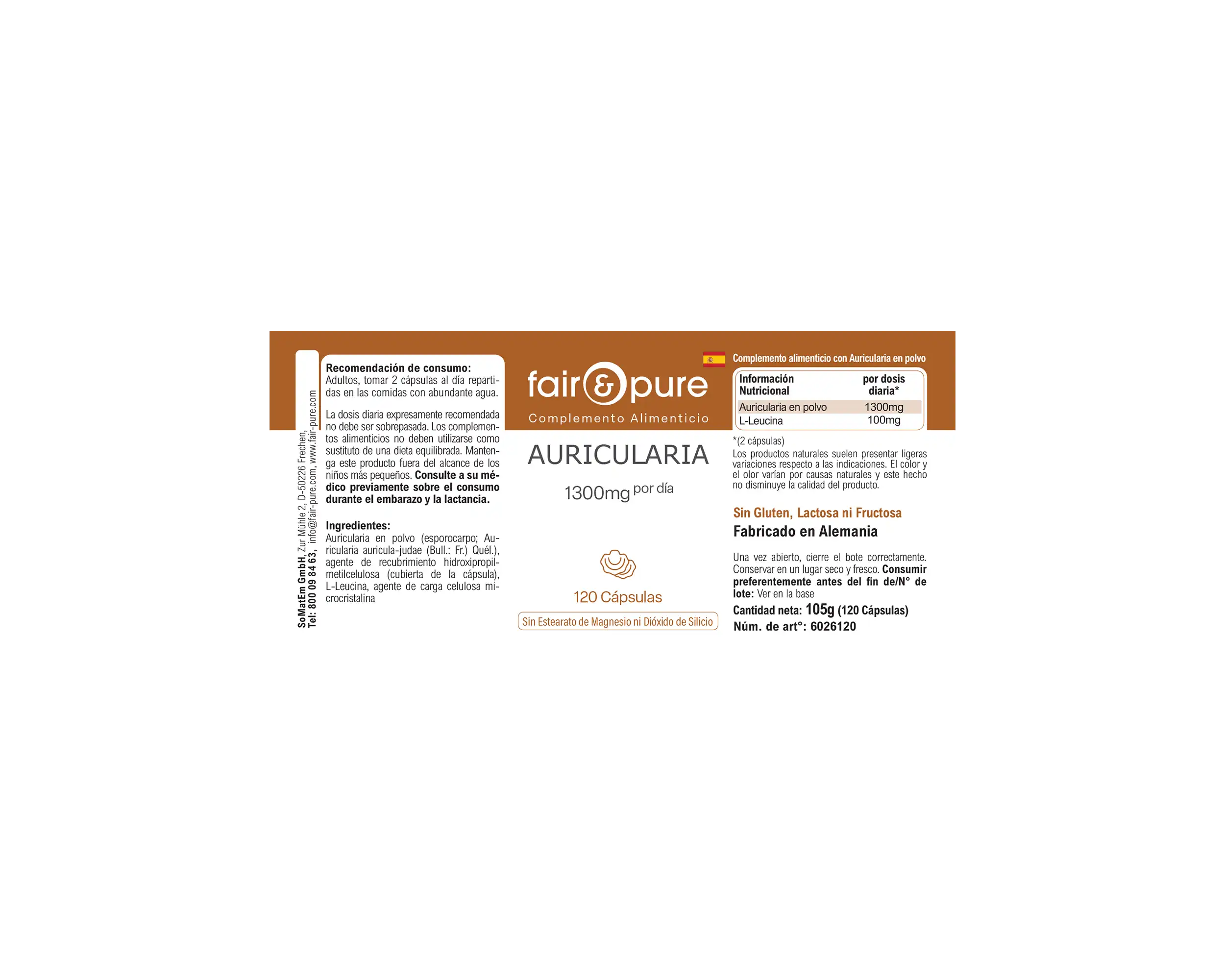 Inhalt pro 2 Kapseln: Auricularia Pulver (1300mg), L-Leucin (100mg)