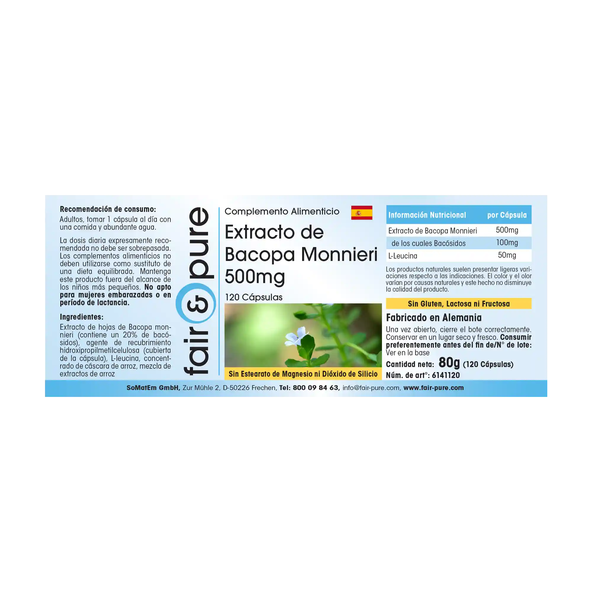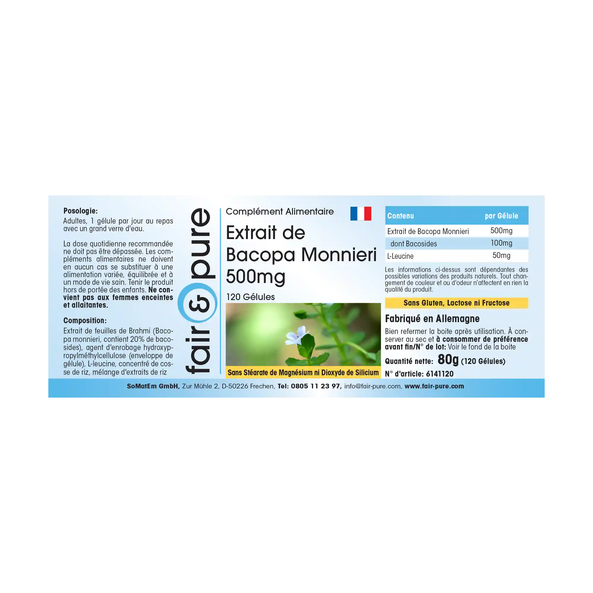 Diese Kapseln enthalten 500 mg hochwertigen Bacopa Monnieri Extrakt, gewonnen aus der Pflanze Bacopa monnieri, die auch als Brahmi bekannt ist. Diese Pflanze wird seit Jahrhunderten in der traditionellen Pflanzenkunde geschätzt.