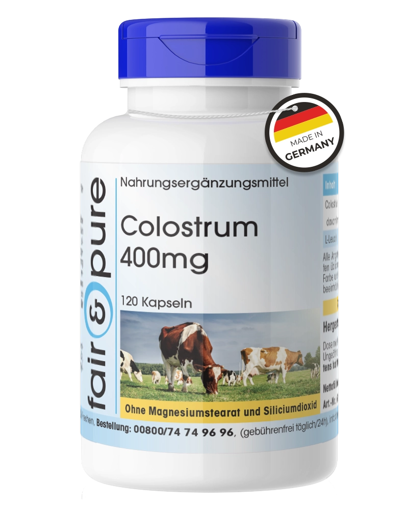 Colostrum ist eine natürliche Substanz, die in der ersten Milch nach der Geburt eines Säugetiers enthalten ist. Das Colostrum von fair & pure wird aus der Erstmilch von Kühen gewonnen, die aus einer konventionellen Landwirtschaft stammen. Die Milch wird schonend verarbeitet, so bleiben alle wertvollen Nährstoffe der Milch erhalten. Die Colostrum Kapseln fair & pure sind eine gute Ergänzung für Ihren täglichen Bedarf an Nährstoffen. Das fair & pure Nahrungsergänzungsmittel Colostrum 400 mg ist auf einen Gehalt von 30% Immunglobulinen standardisiert. Pro Tagesverzehr von 3 Kapseln entspricht das 360 mg Immunglobulin G. Eine Standardisierung ist ein wesentliches Qualitätsmerkmal eines Nahrungsergänzungsmittels.