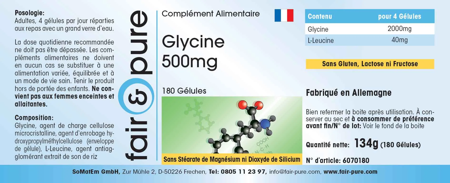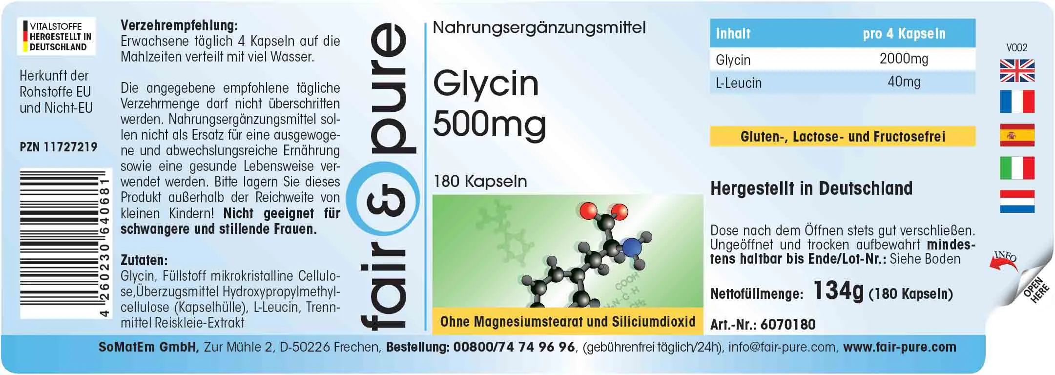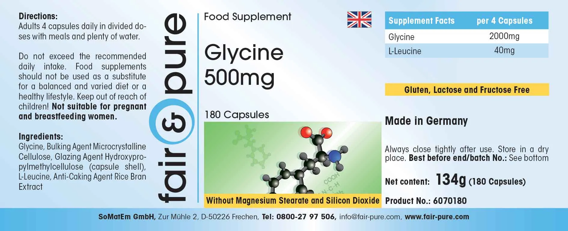Produktinformationen "Glycin 500mg | fair-pure"