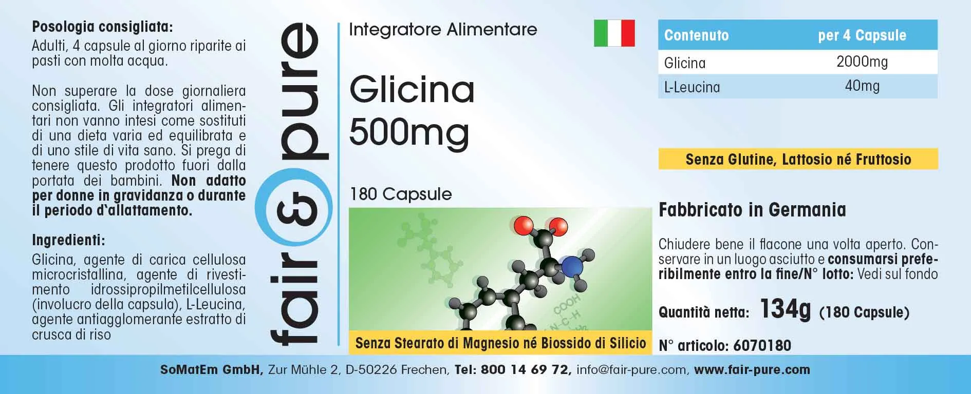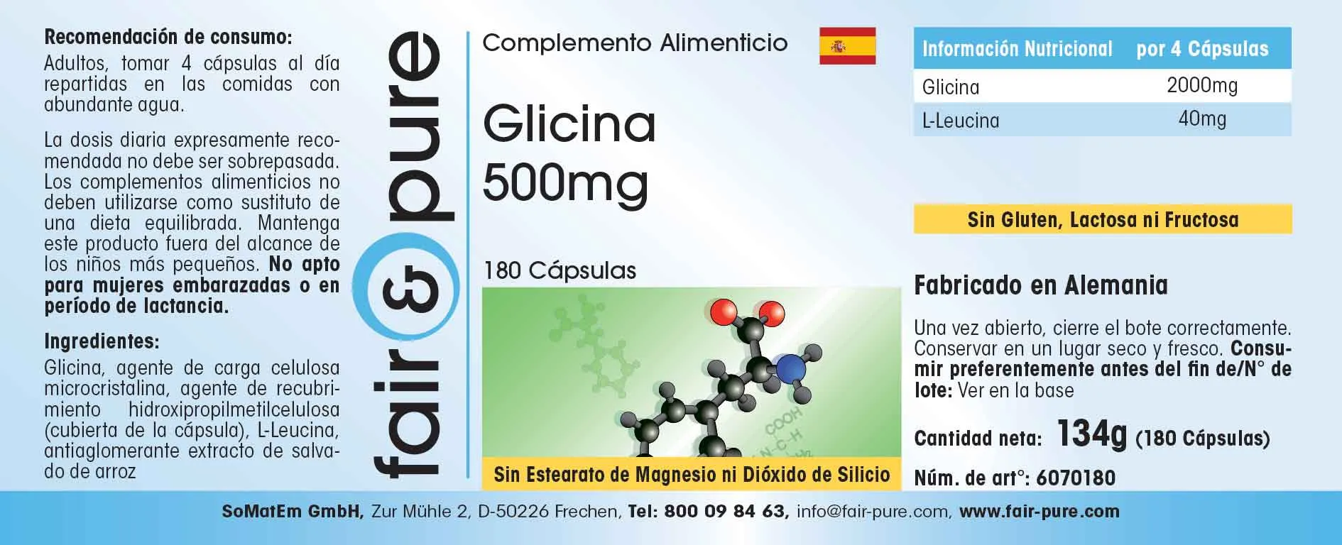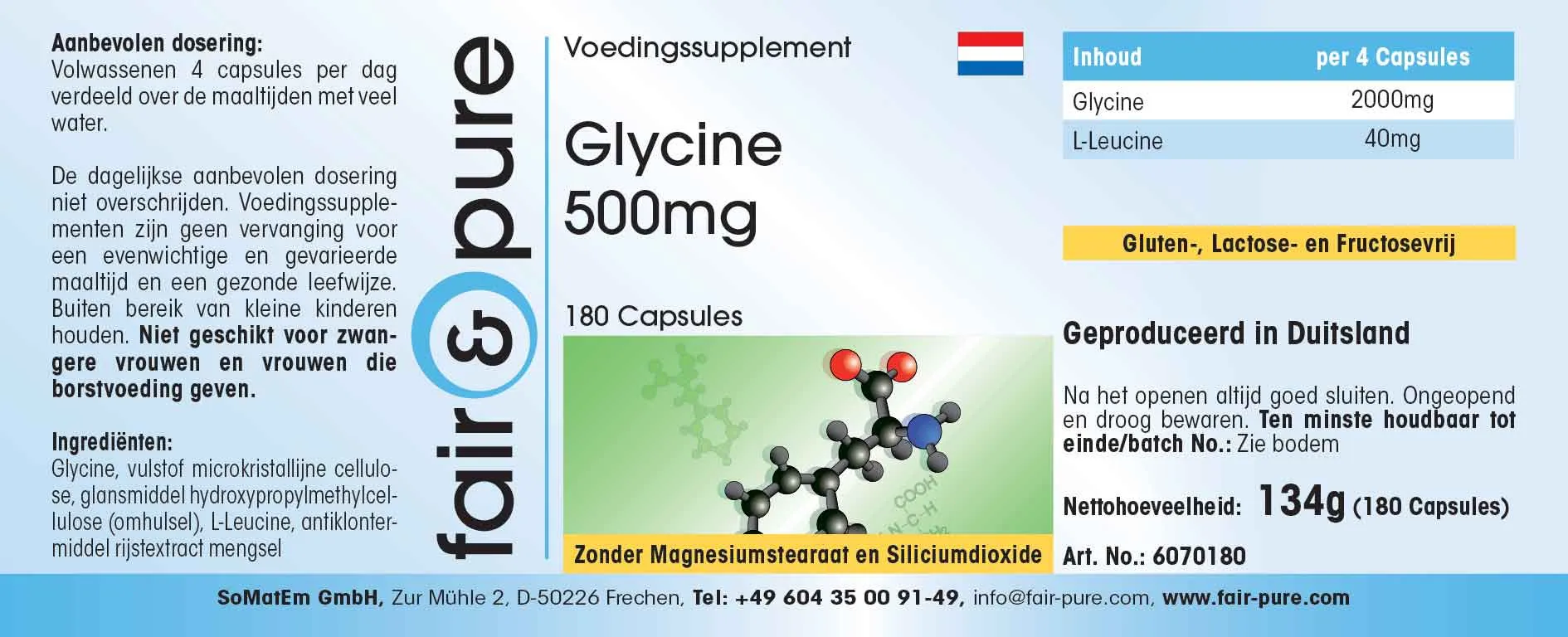 Produktinformationen "Glycin 500mg | fair-pure"