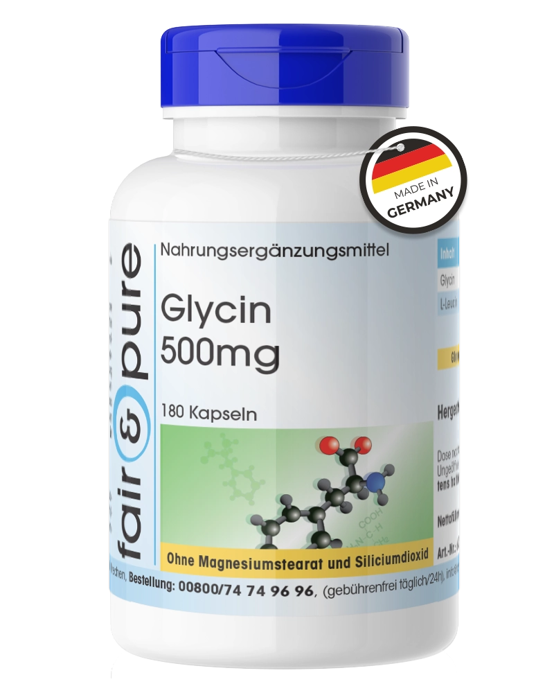 Diese Kapseln enthalten hochwertiges Glycin, eine natürliche Aminosäure, die als Bestandteil von Proteinen in vielen biologischen Prozessen vorkommt.