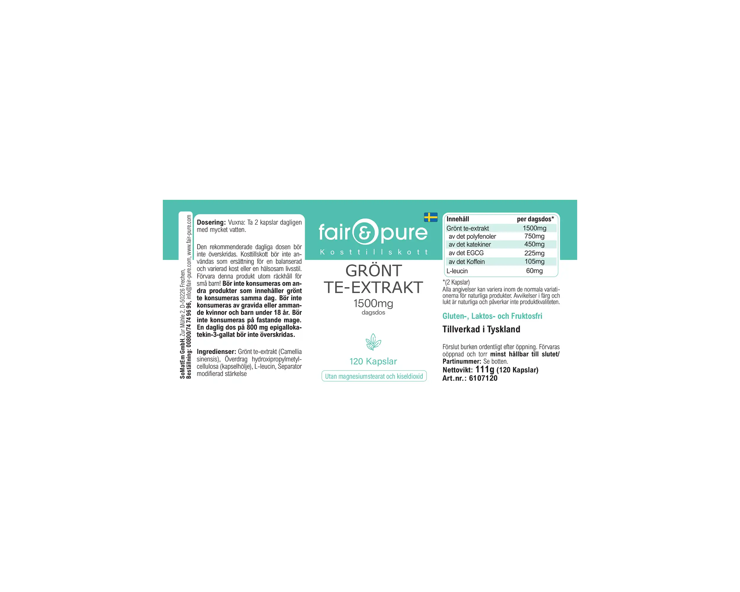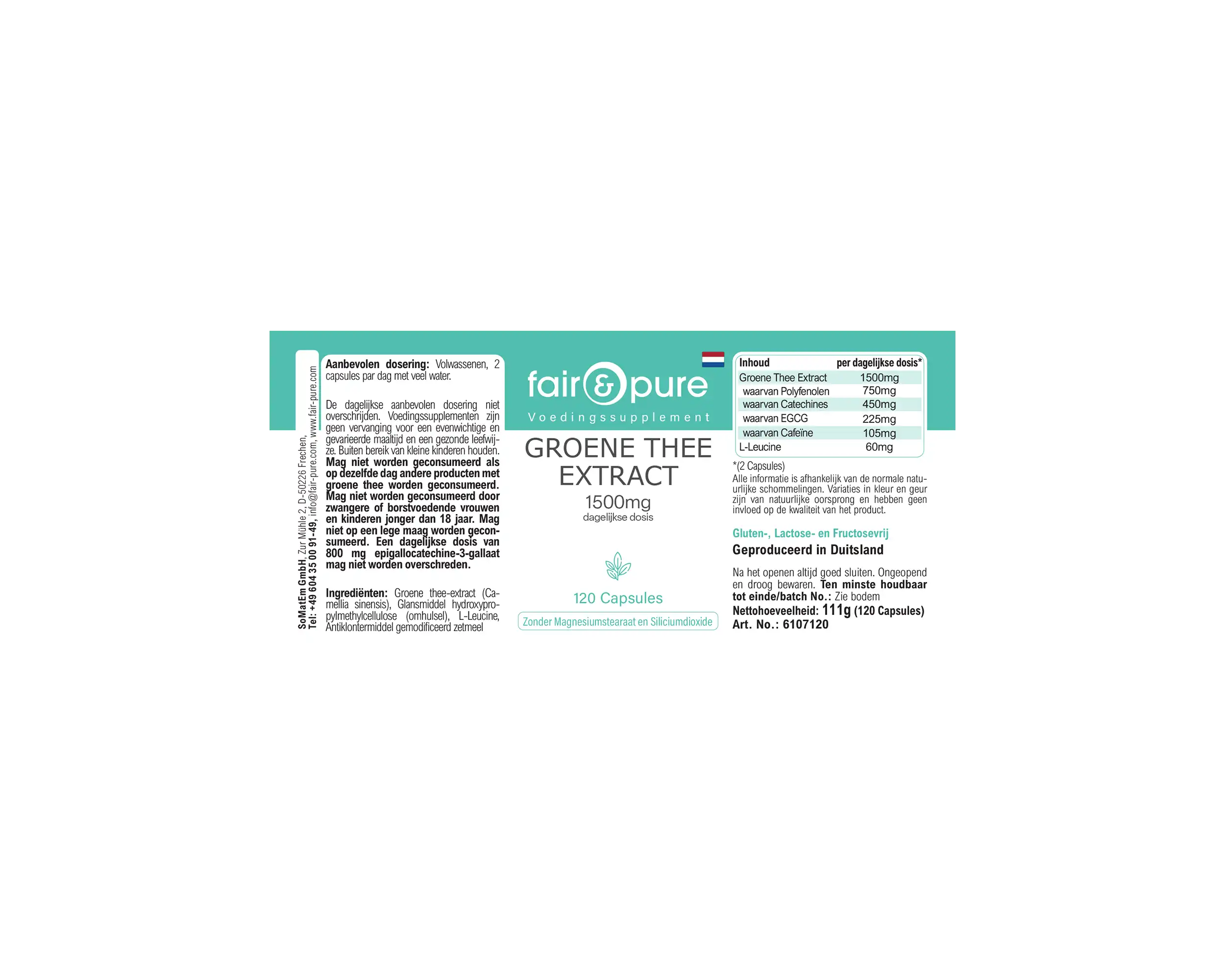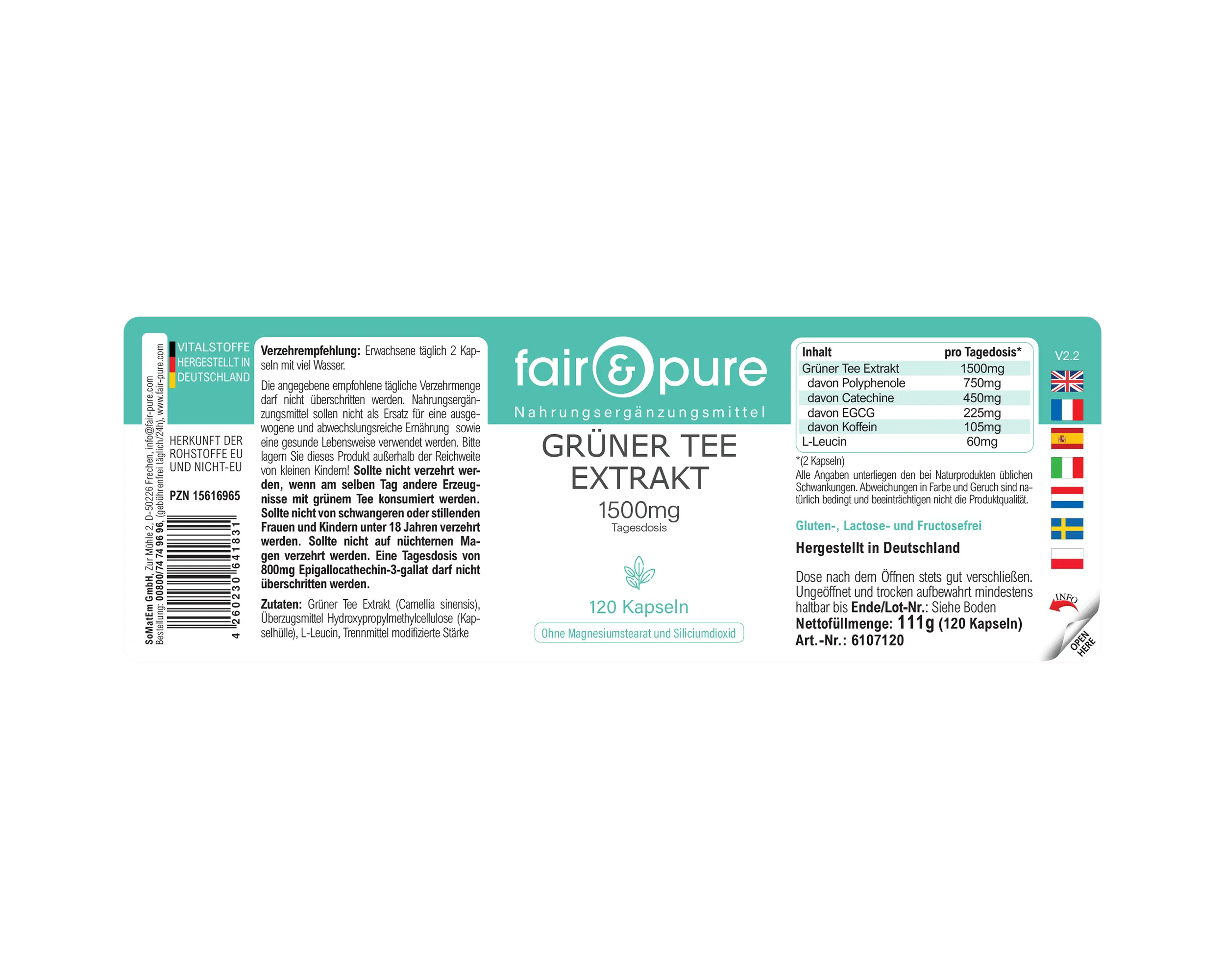Grüner Tee Extrakt 1500mg- 120 Kapseln | fair-pure
