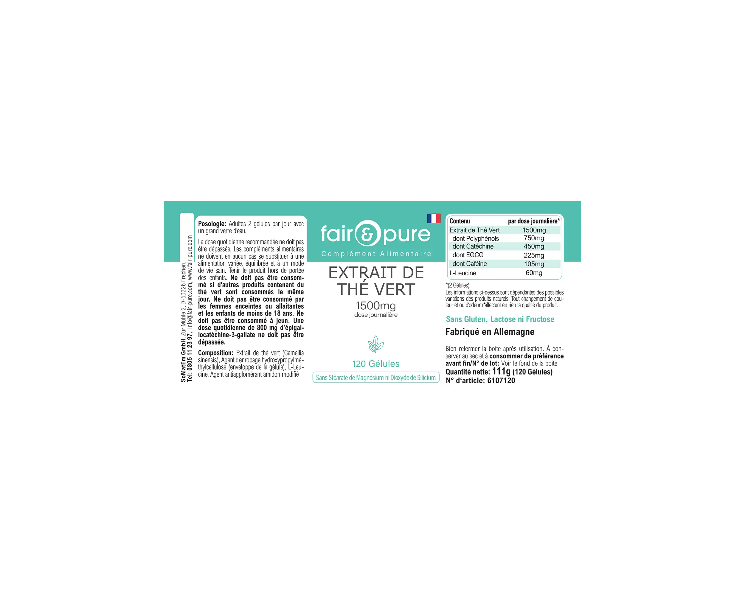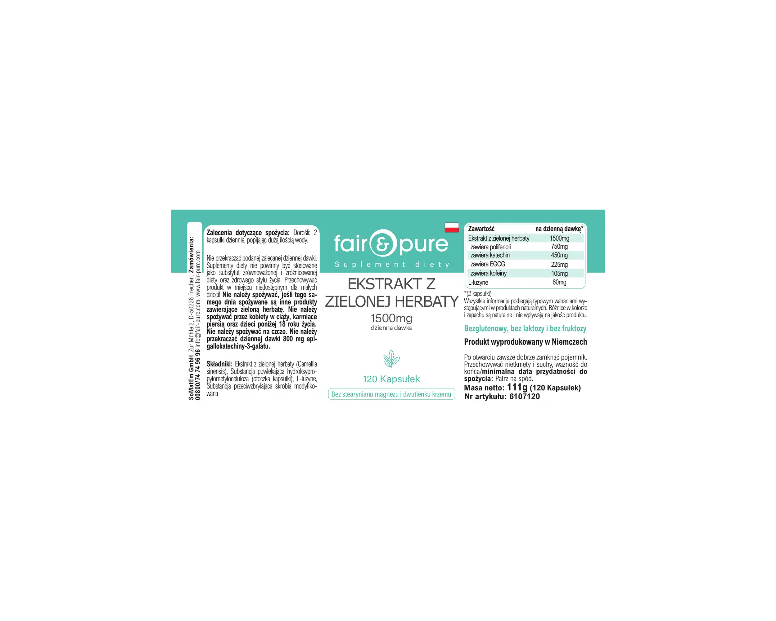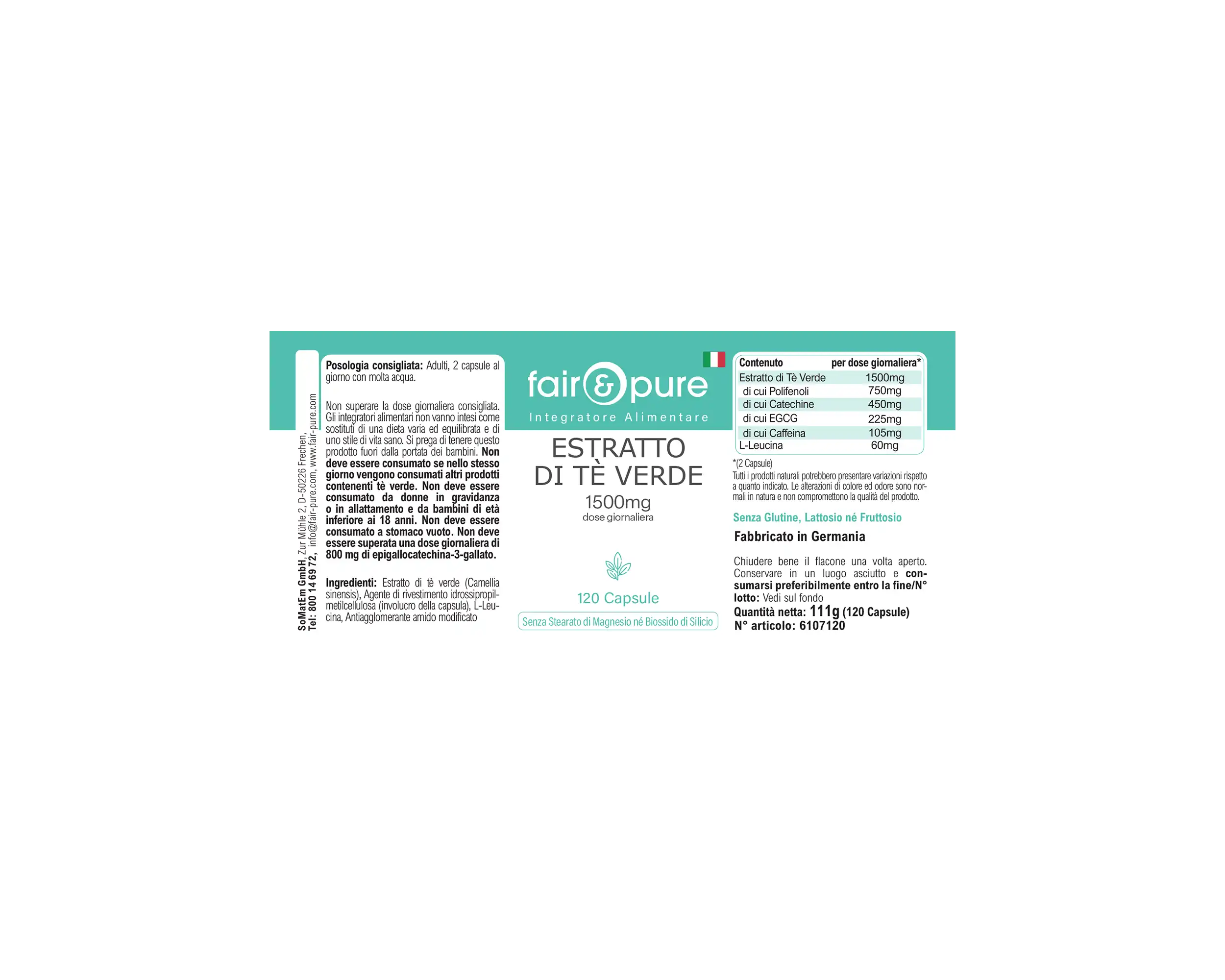 Grüner Tee Extrakt 1500mg- 120 Kapseln | fair-pure