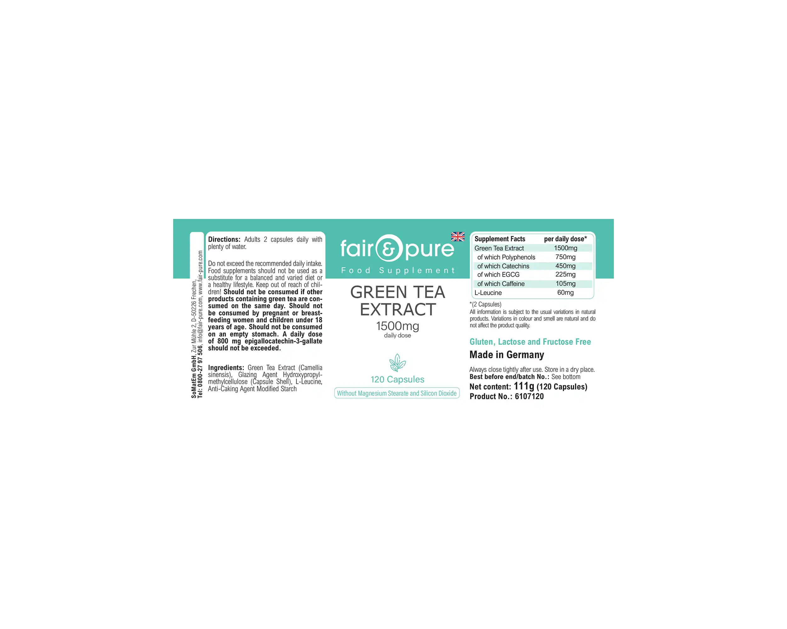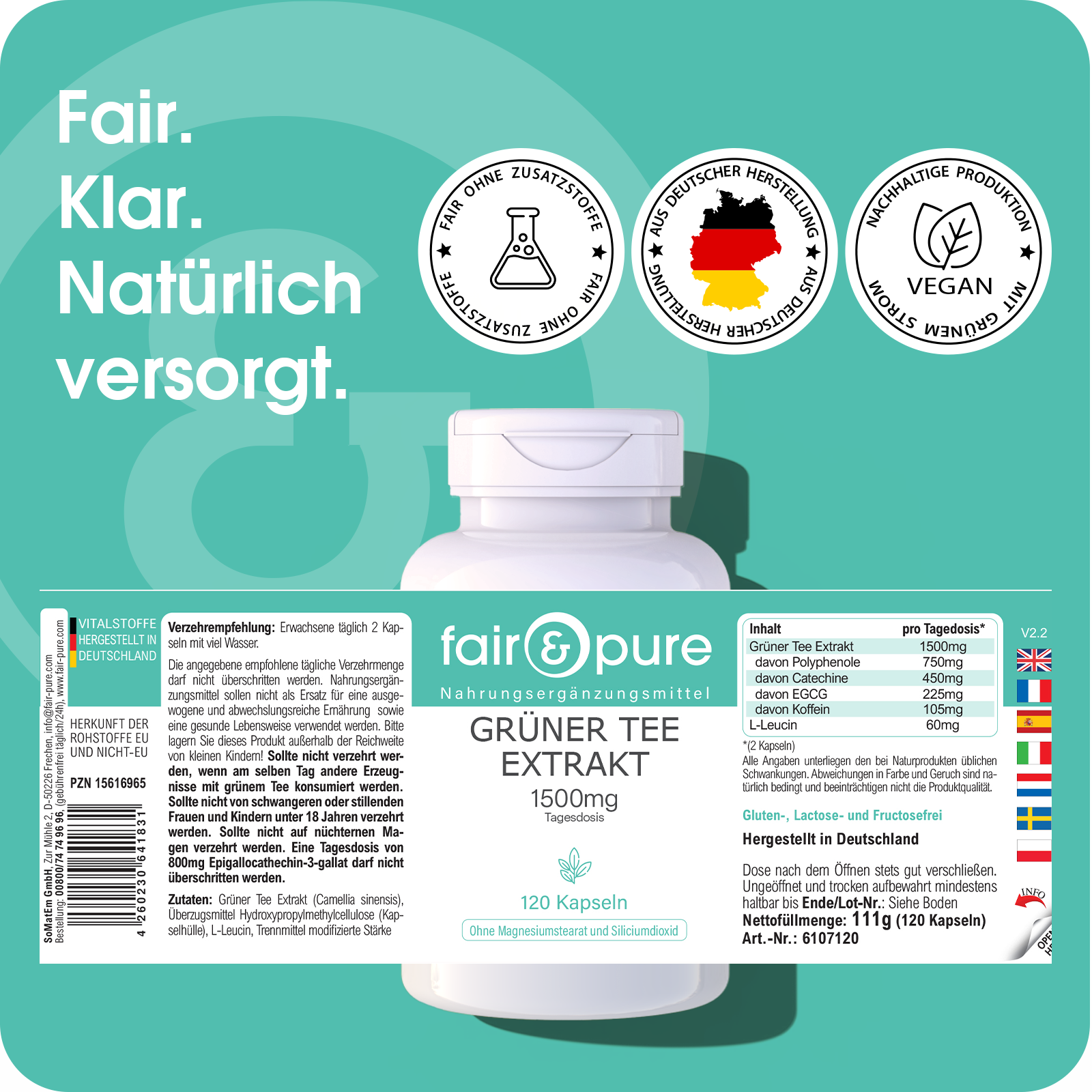 Produktinformationen "Grüner Tee Extrakt 1500mg- 120 Kapseln | fair-pure"