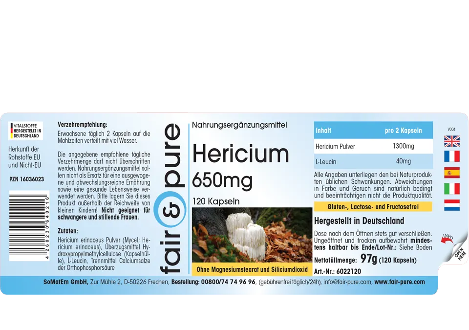 Produktinformationen "Hericium 650mg | fair-pure"