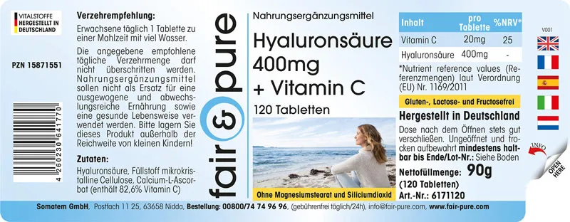 Produktinformationen "Hyaluronsäure 400mg + Vitamin C | fair-pure"