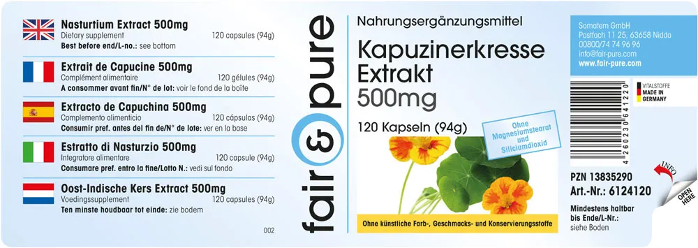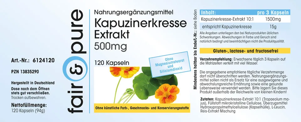 Produktinformationen "Kapuzinerkresse Extrakt 500mg | fair-pure"