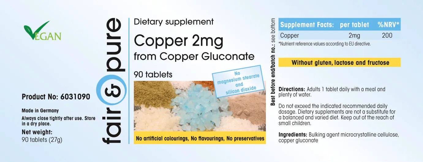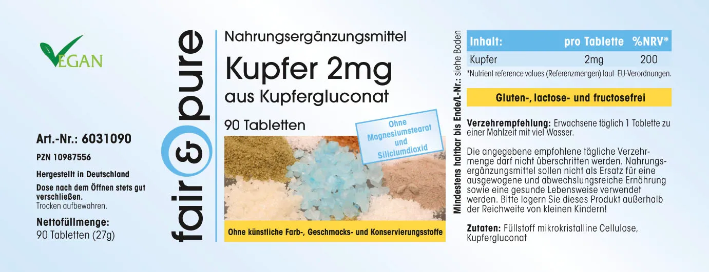 Produktinformationen "Kupfer 2mg | 90 Tabletten | fair-pure"