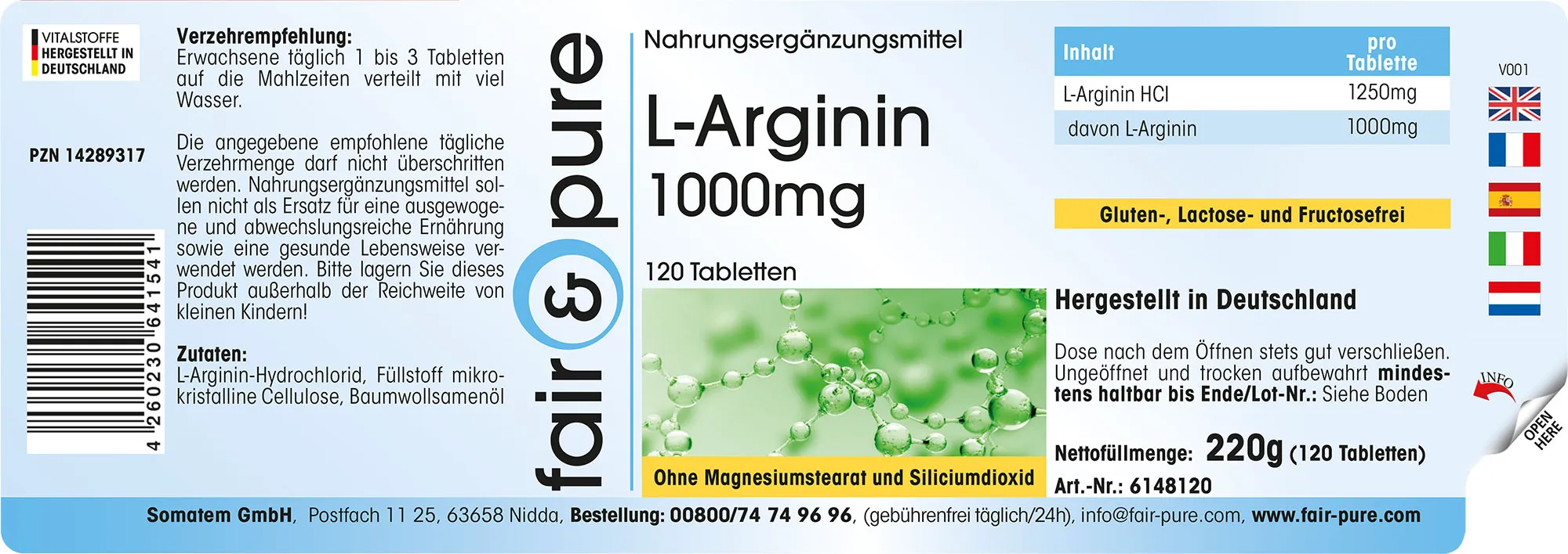 Produktinformationen "L-Arginin 1000mg | fair-pure"