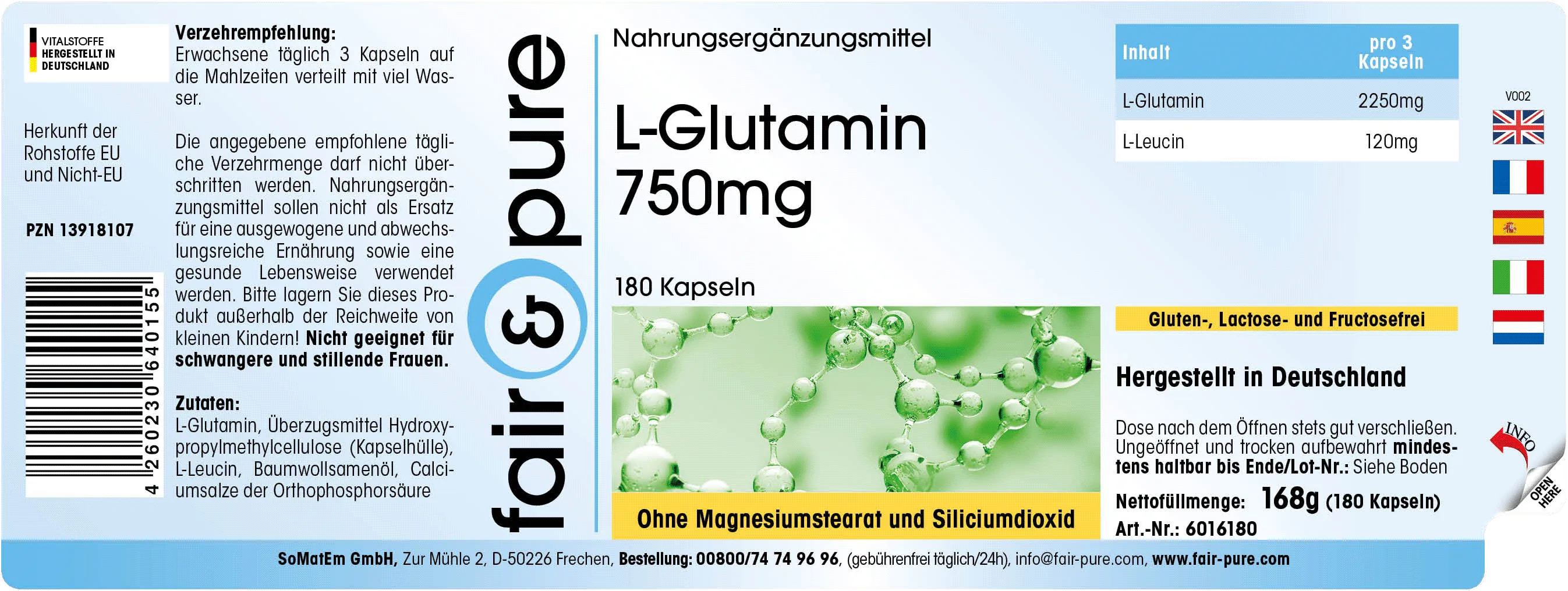 Produktinformationen "L-Glutamin 750mg | fair-pure"