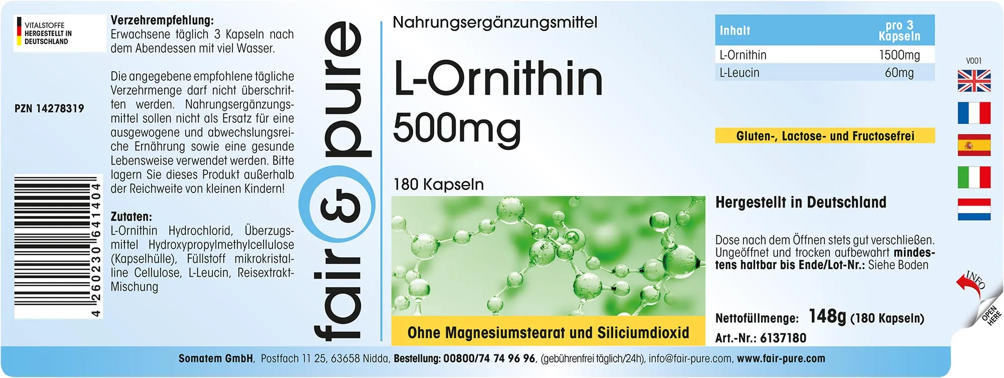 Produktinformationen "L-Ornithin 500mg | fair-pure"