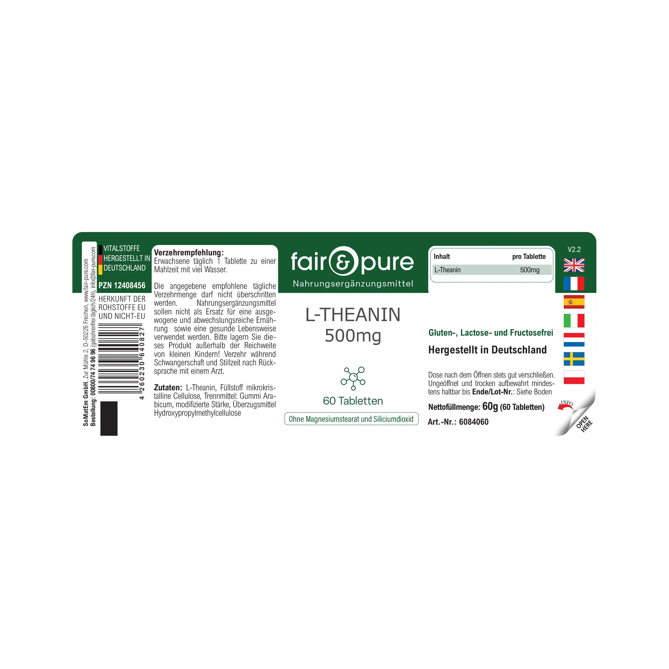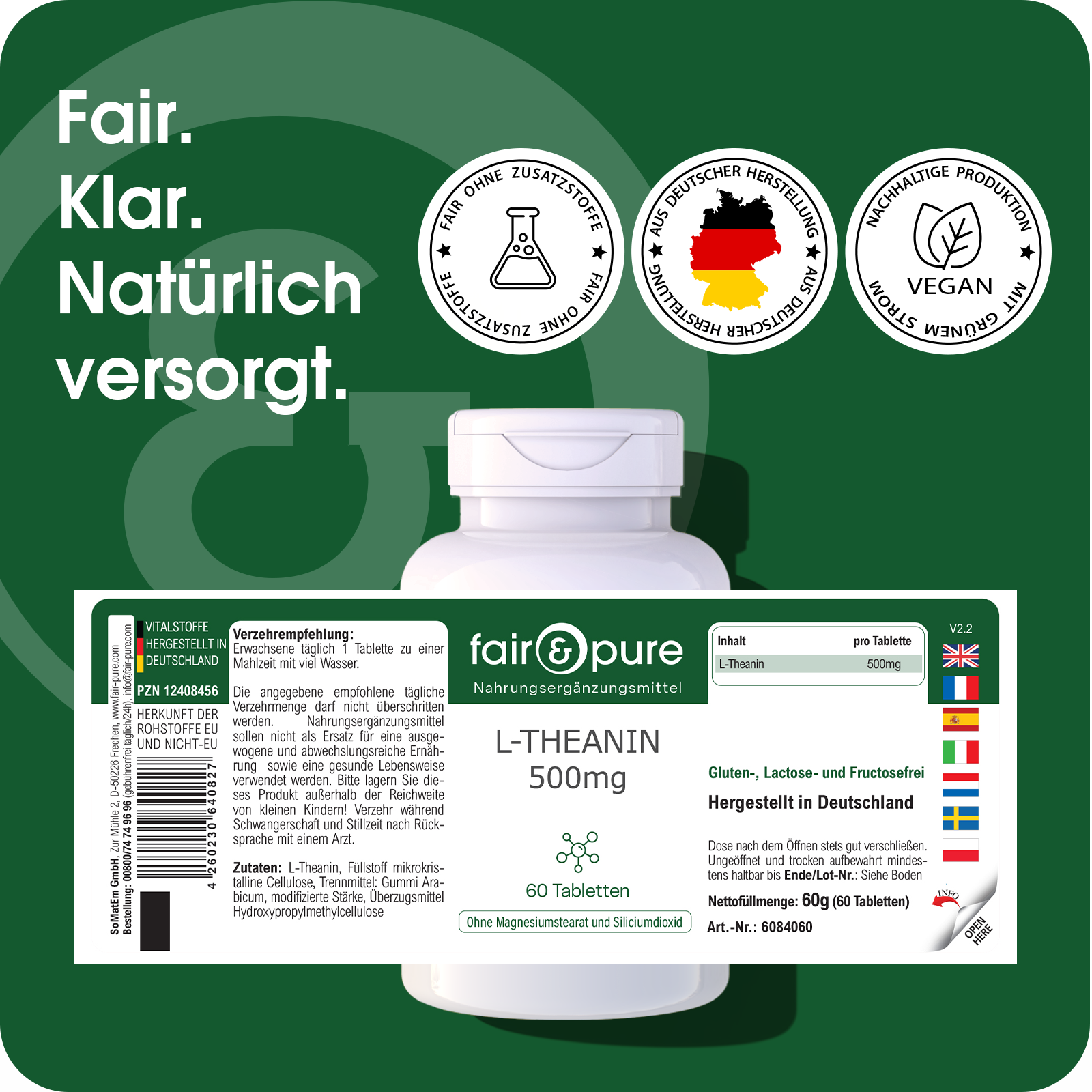 Produktinformationen "L-Theanin 500mg - 60 Tabletten | fair-pure"