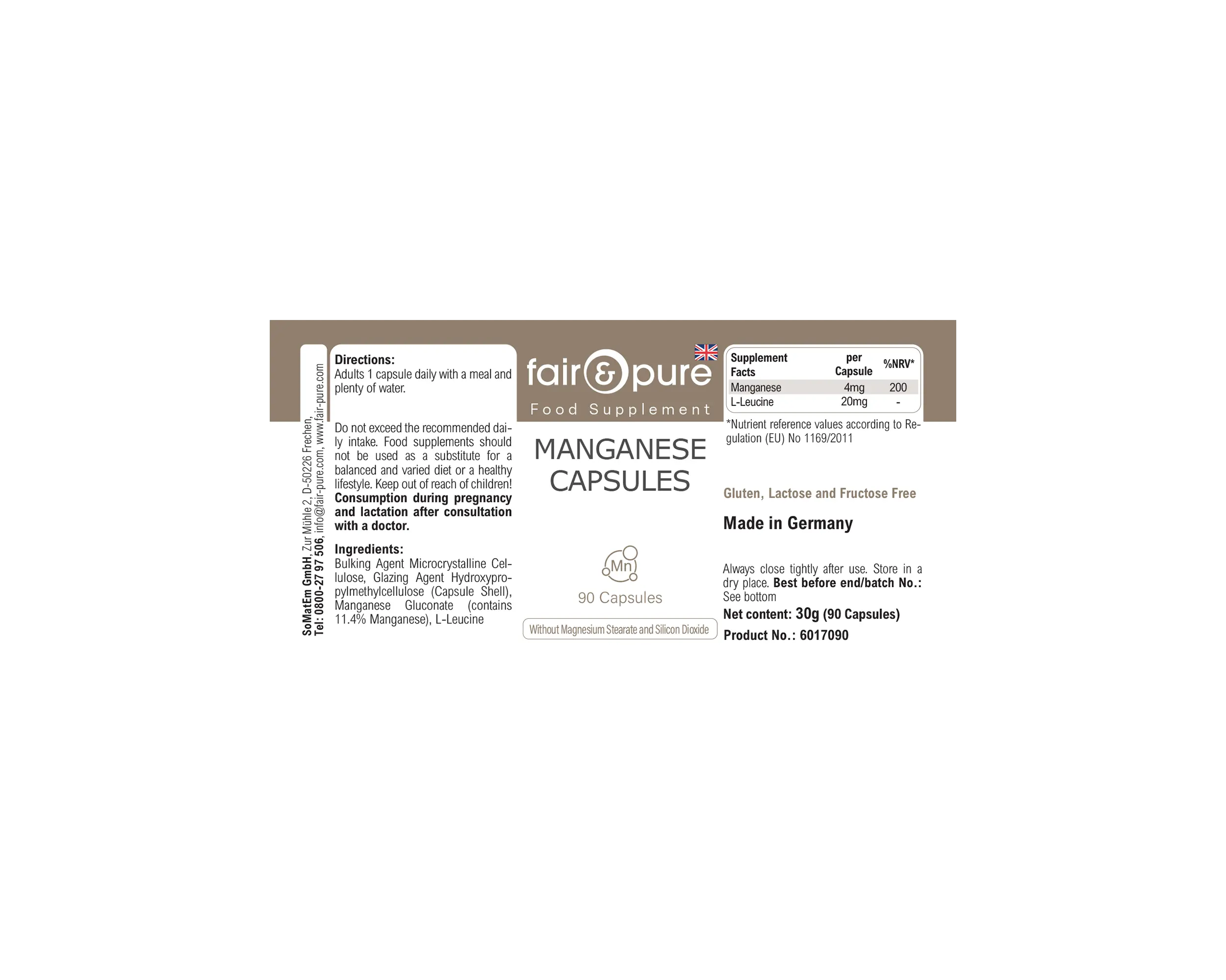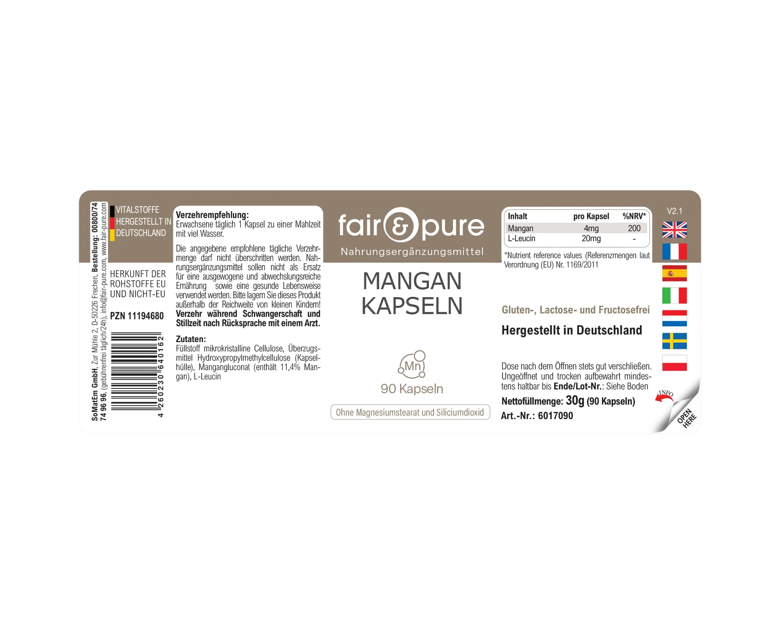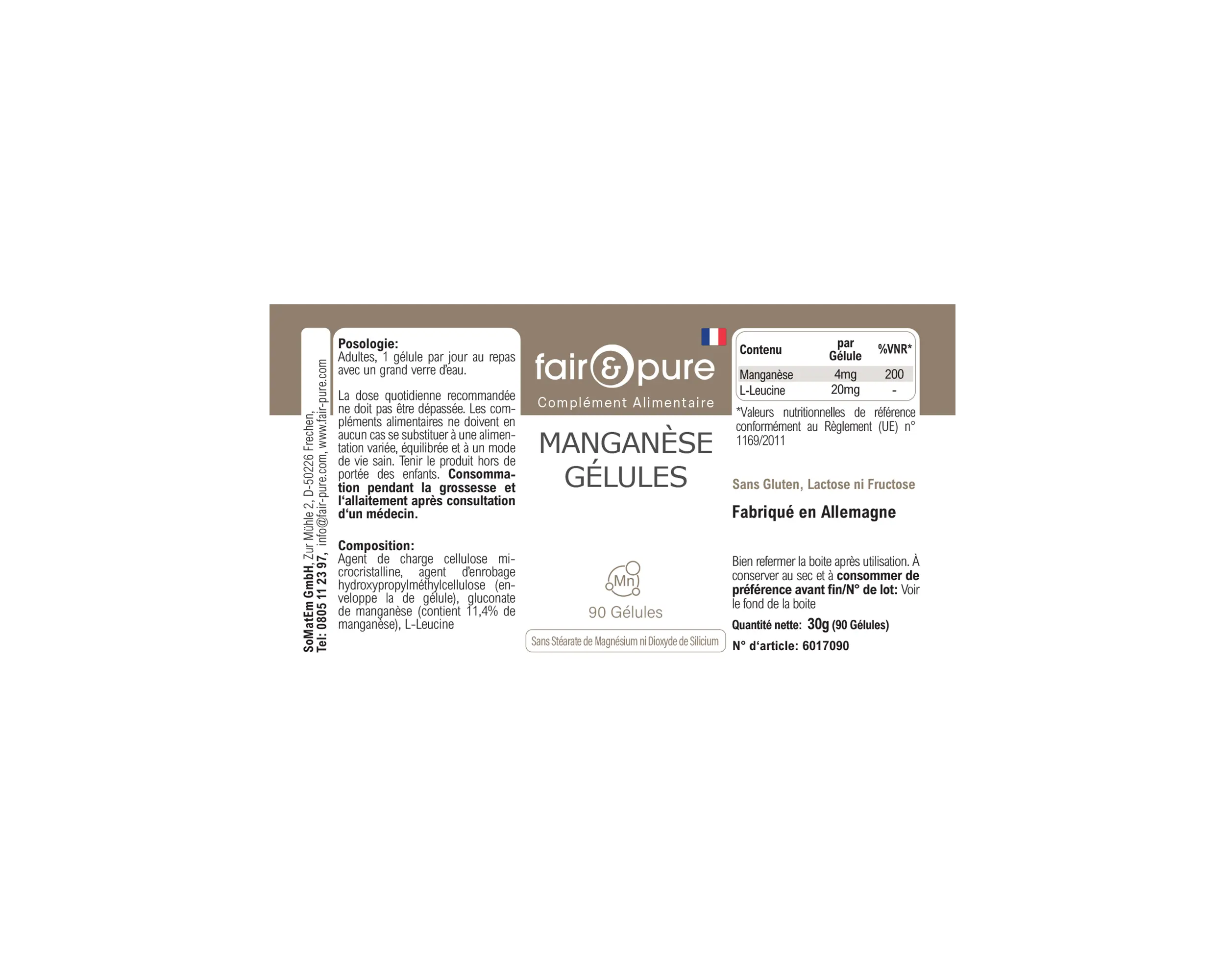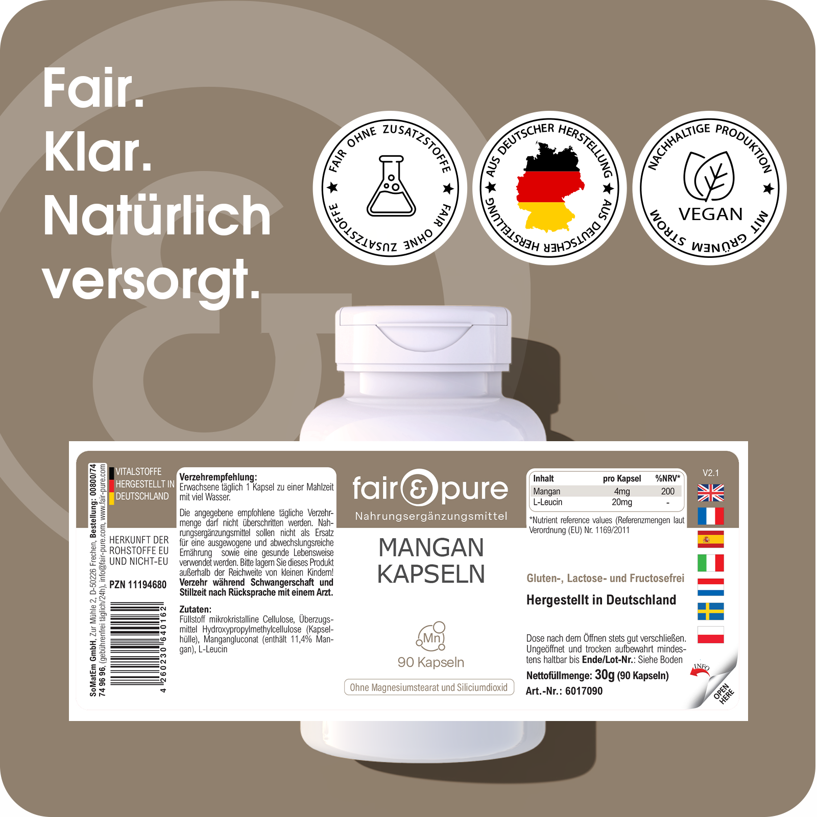 Diese Kapseln enthalten Mangan in einer gut verfügbaren Form. Mangan ist ein essenzielles Spurenelement, das natürlicherweise in Lebensmitteln wie Nüssen, Hülsenfrüchten und Vollkornprodukten vorkommt.