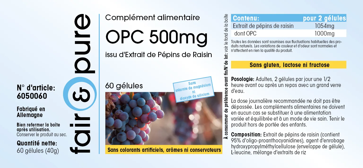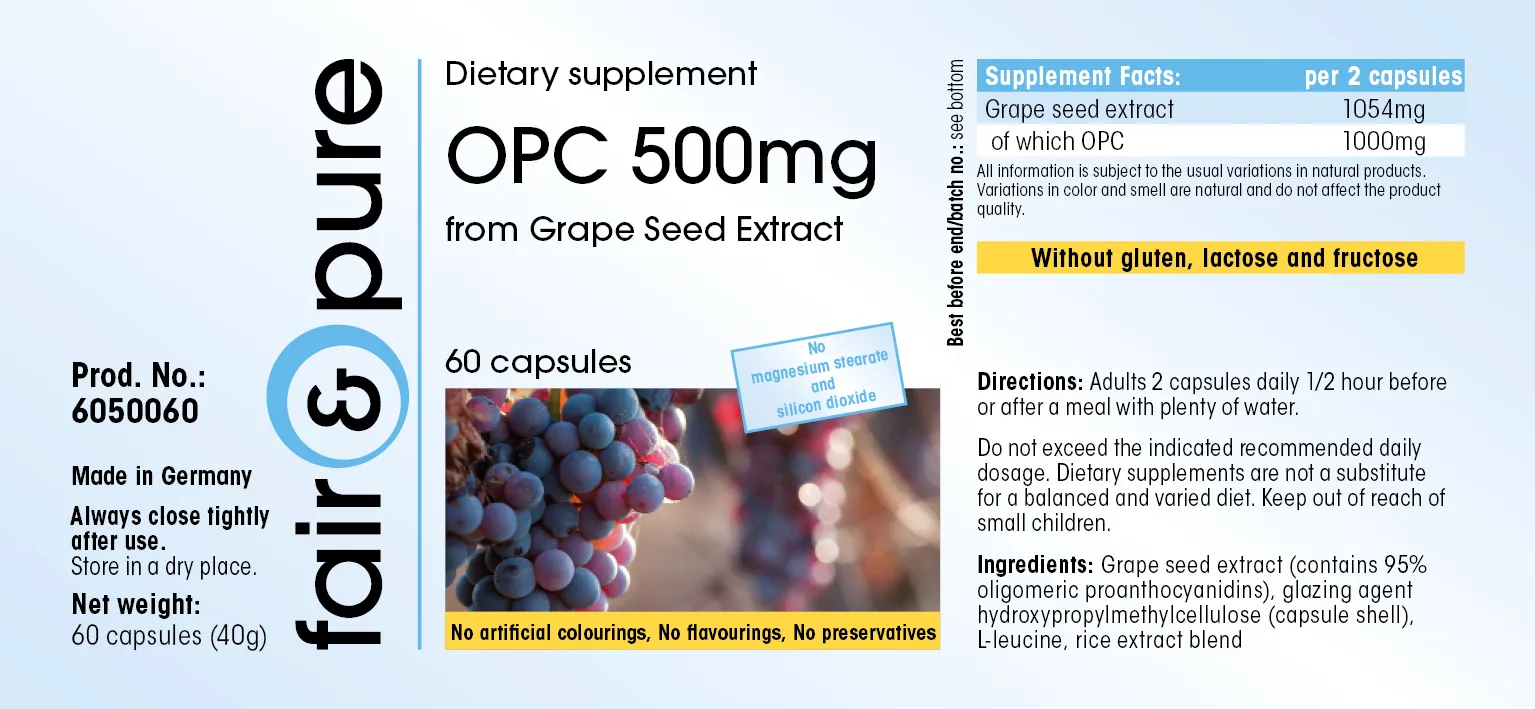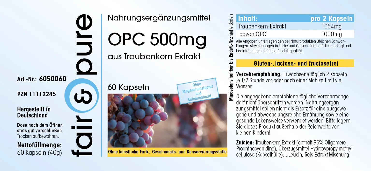 Produktinformationen "OPC 500mg aus Traubenkernextrakt -60 Kapseln | fair-pure"