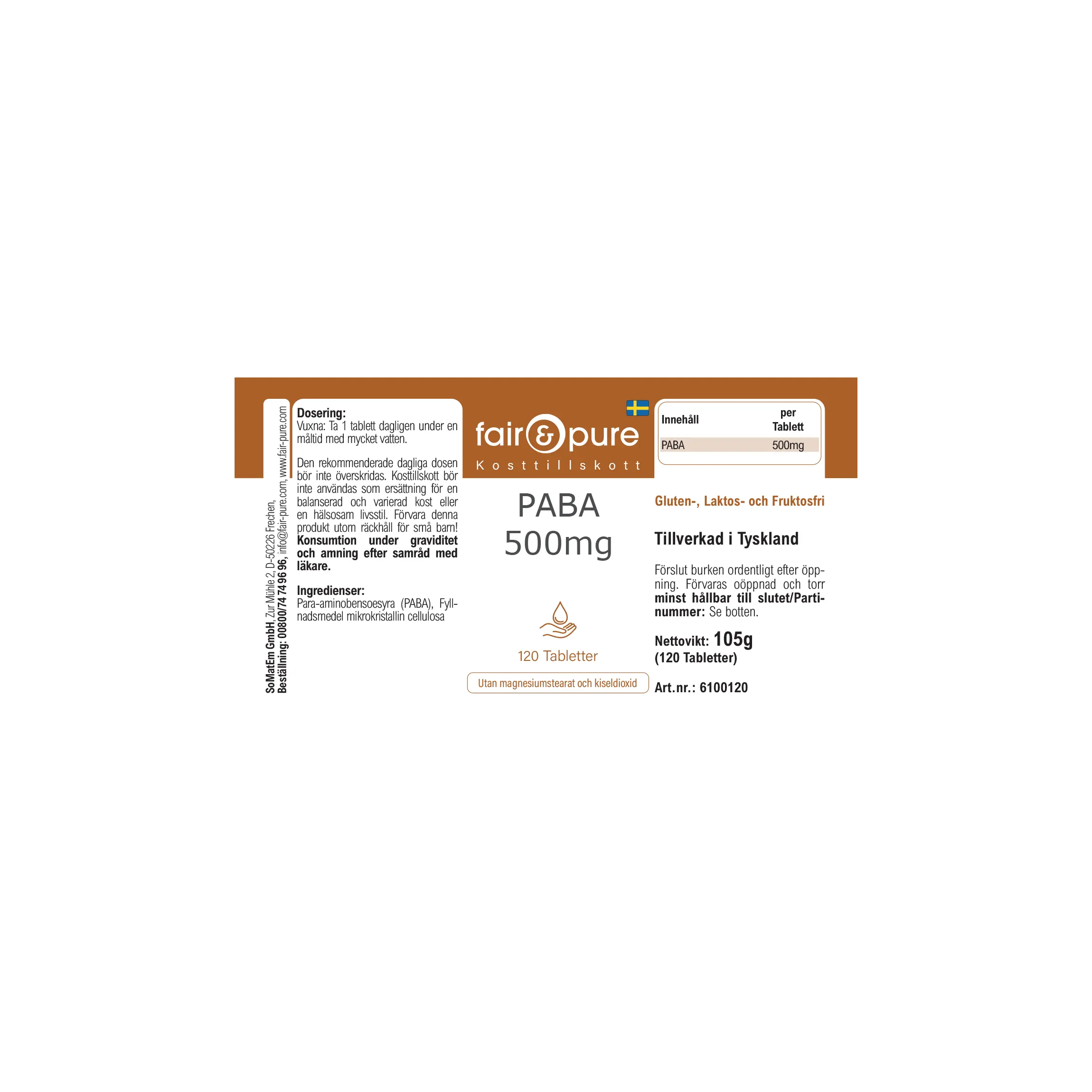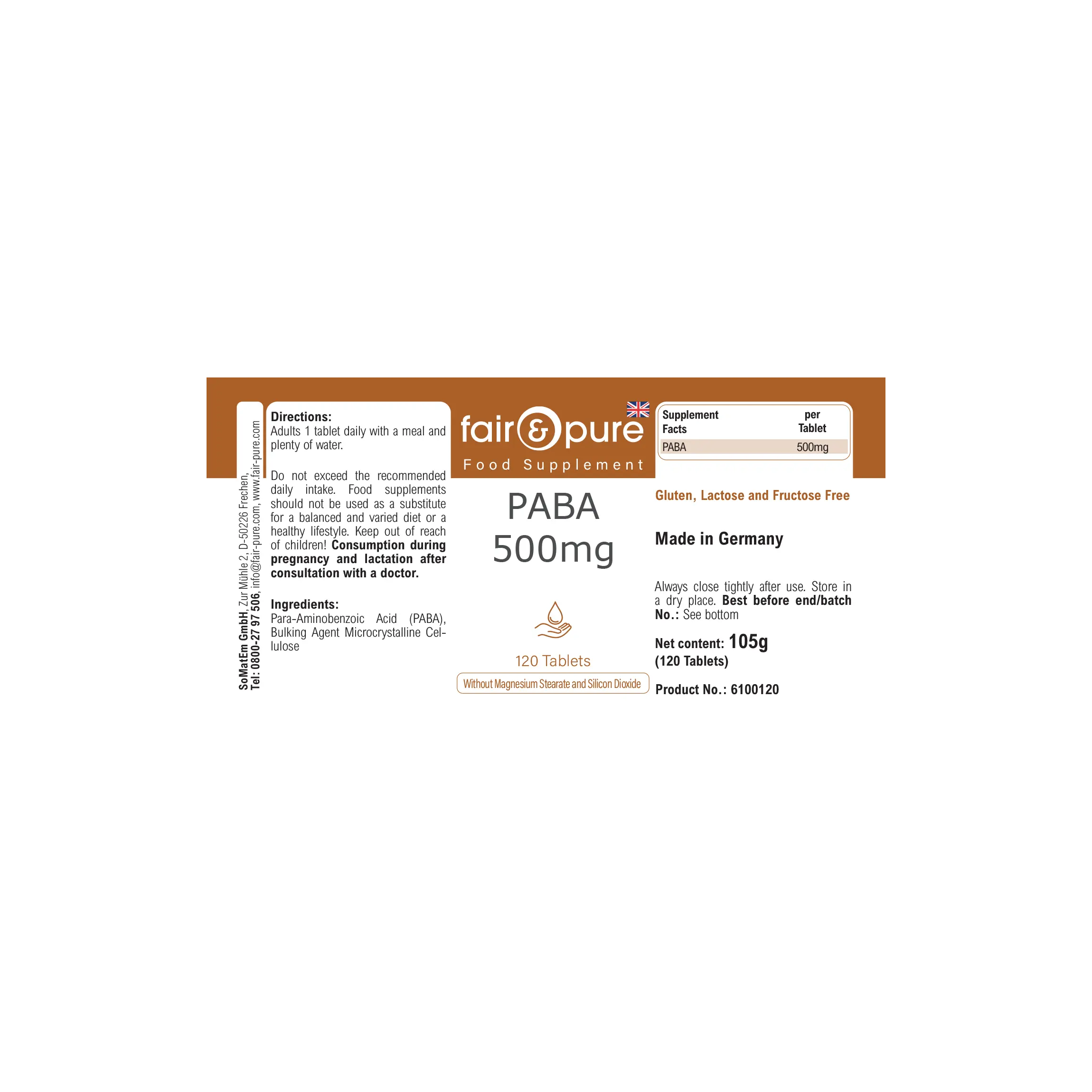 PABA 500 mg - 120 Tabletten - Para-Aminobenzoesäure - Vitamin B10 | fair & pure