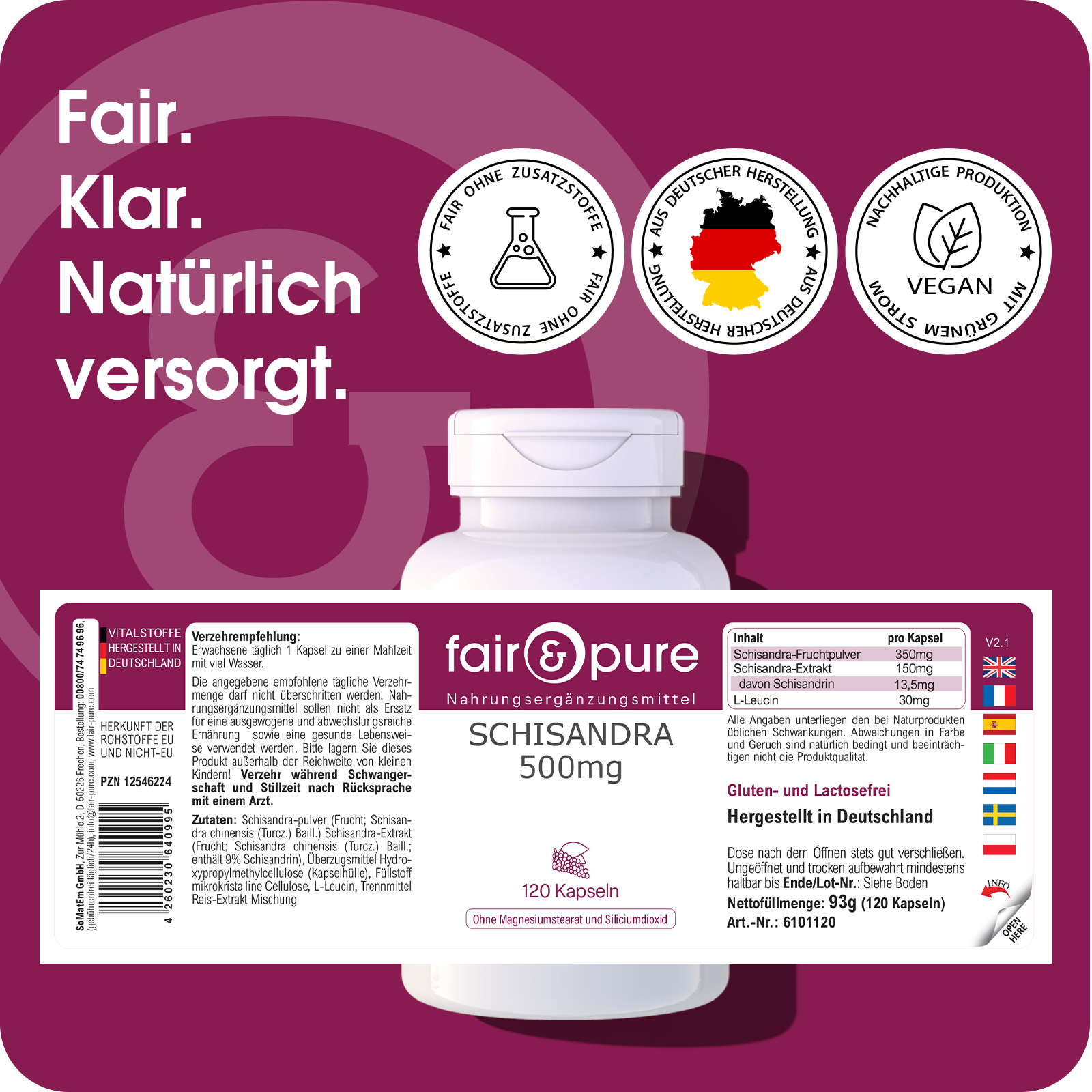 Produktinformationen "Schisandra Extrakt 500mg | fair-pure"