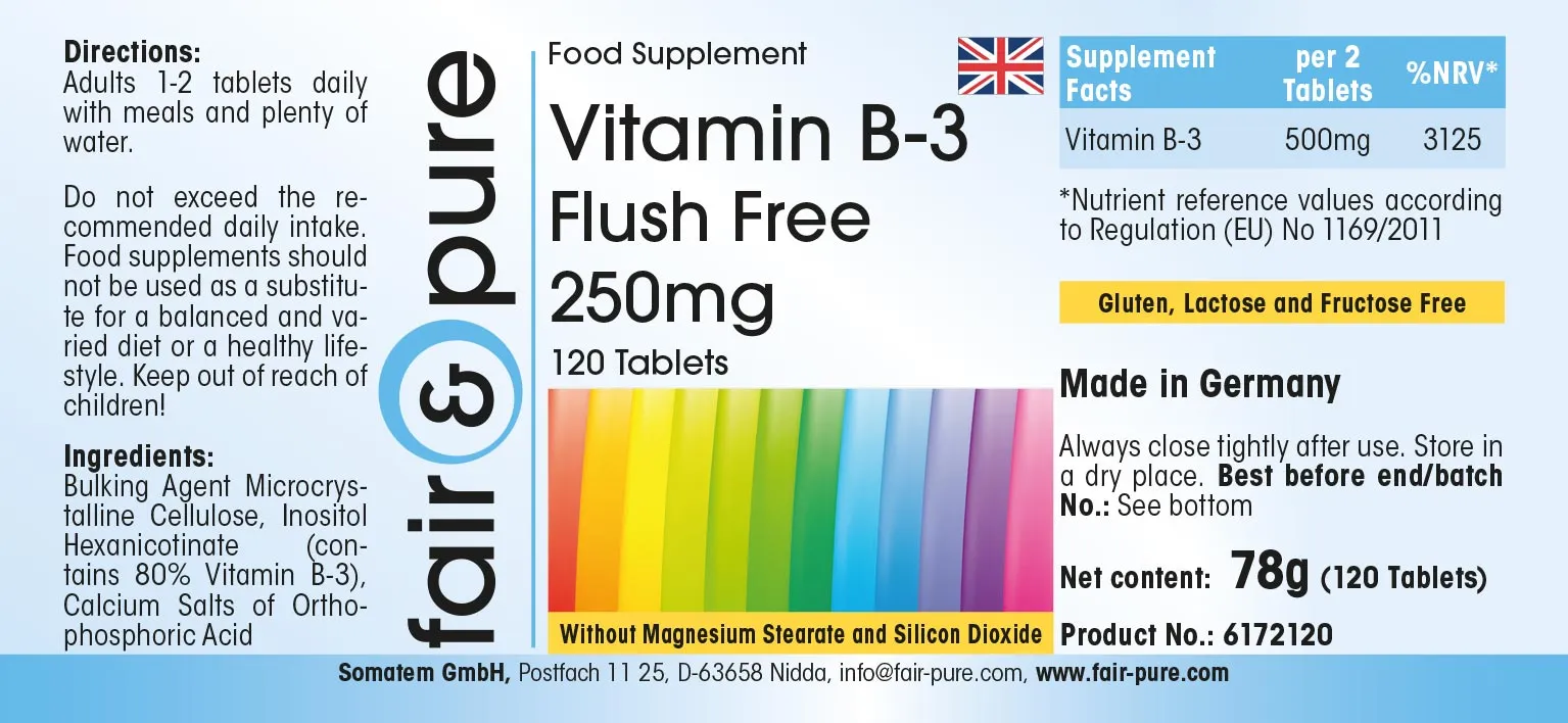 Vitamin B3 250mg Flush Free | fair-pure