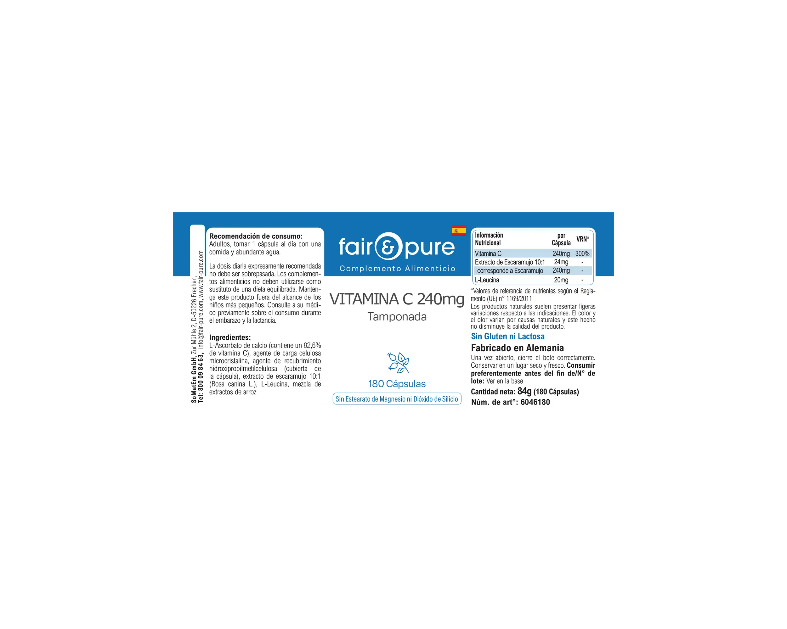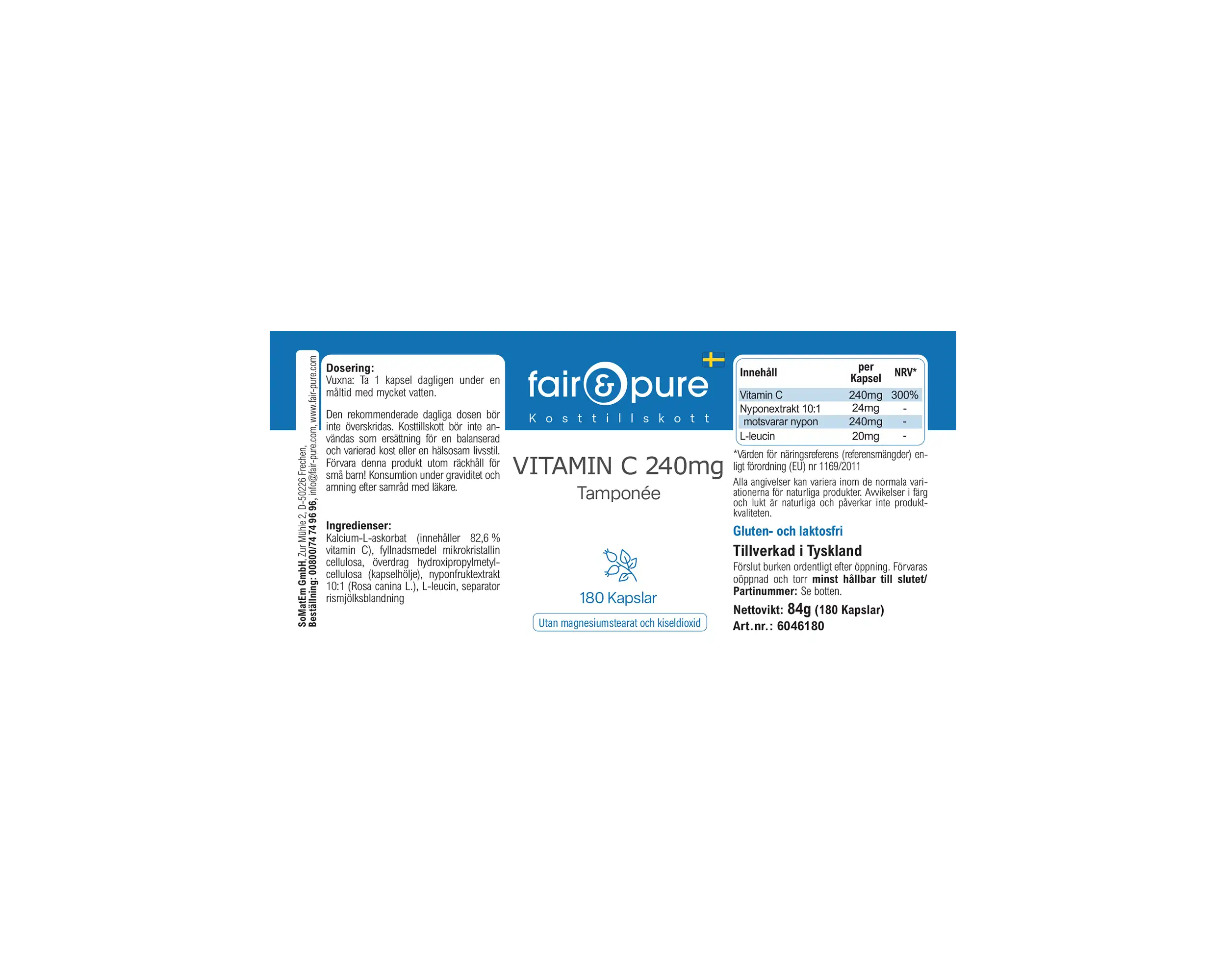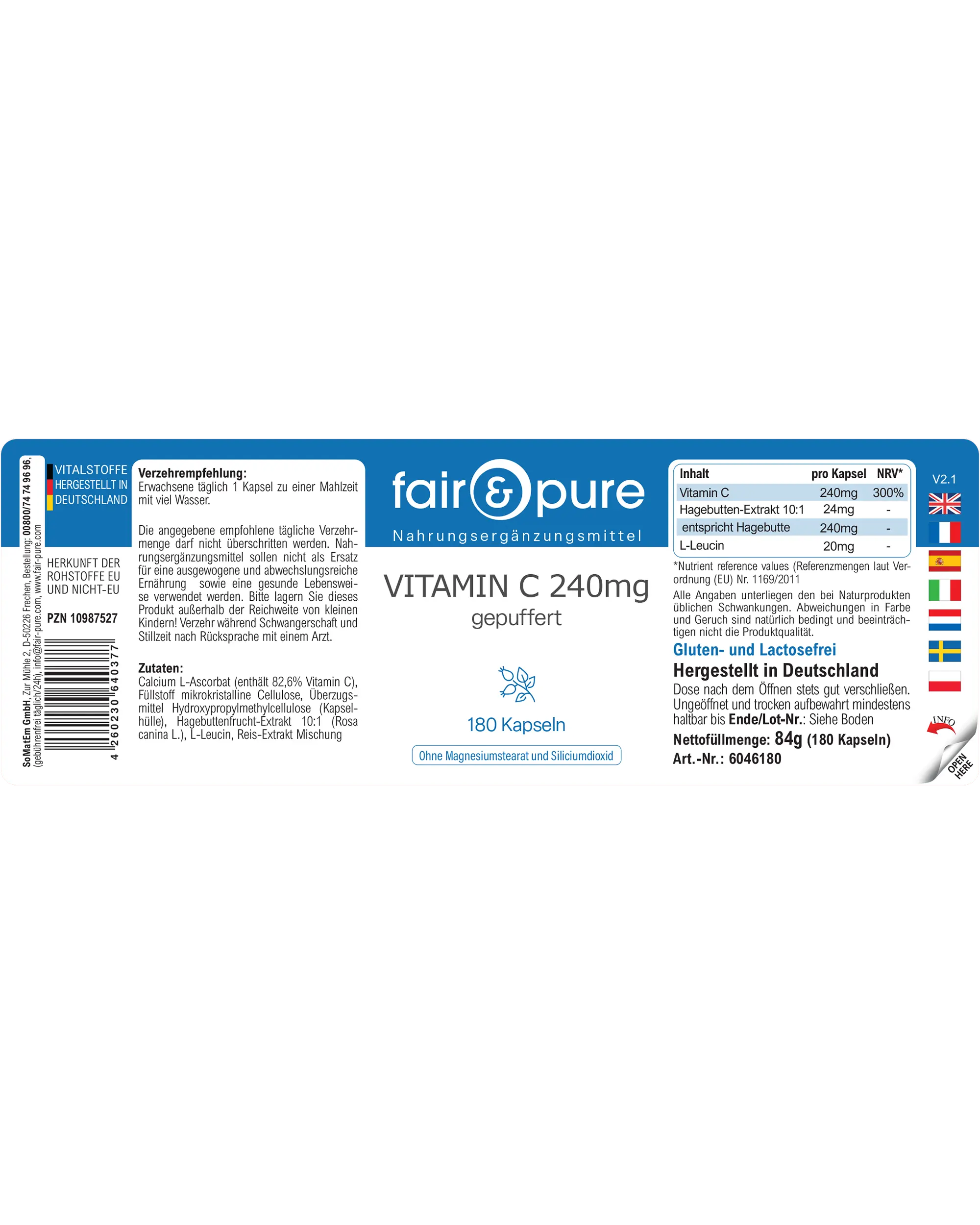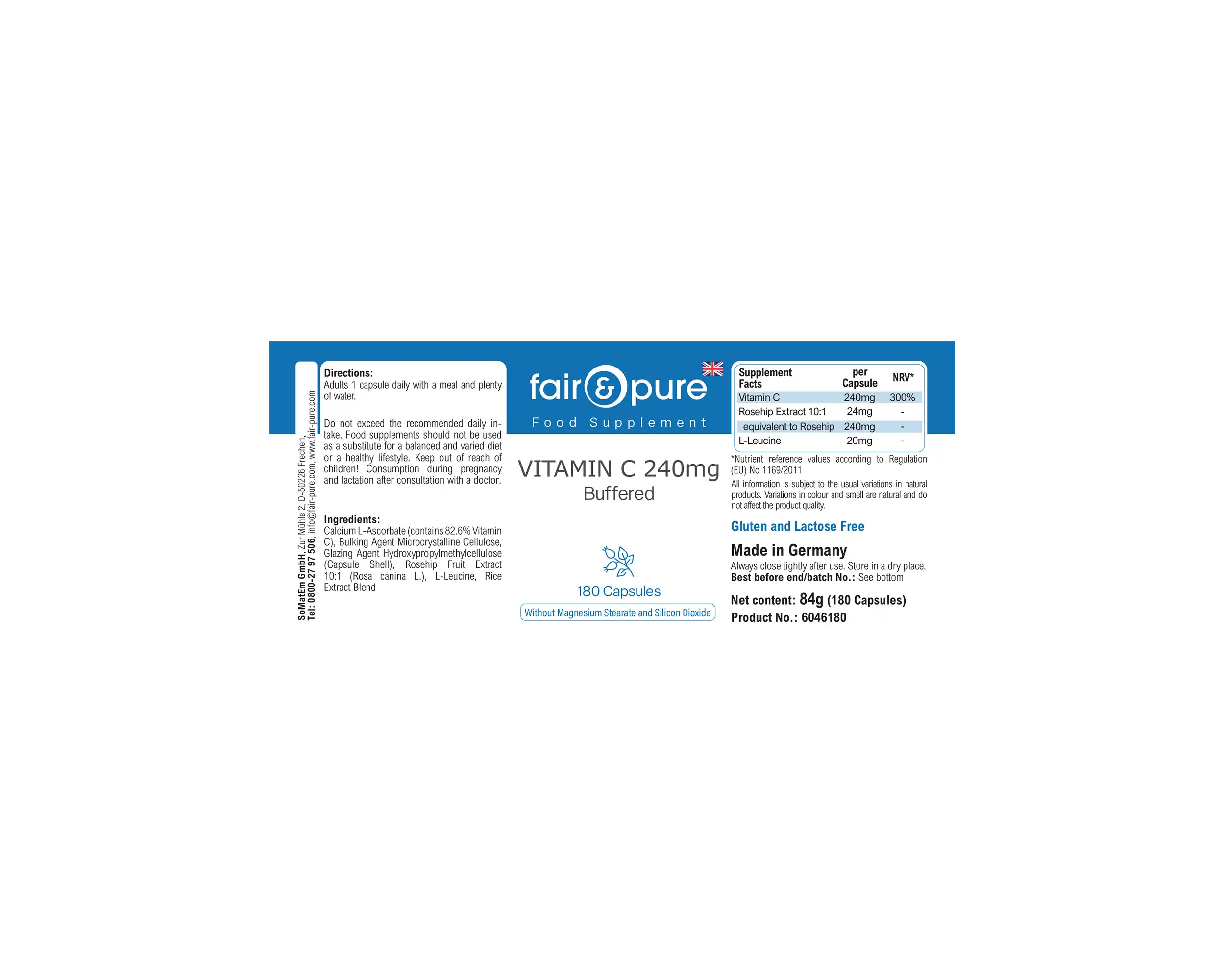 Produktinformationen "Vitamin C 240mg gepuffert - 180 Kapseln | fair-pure"