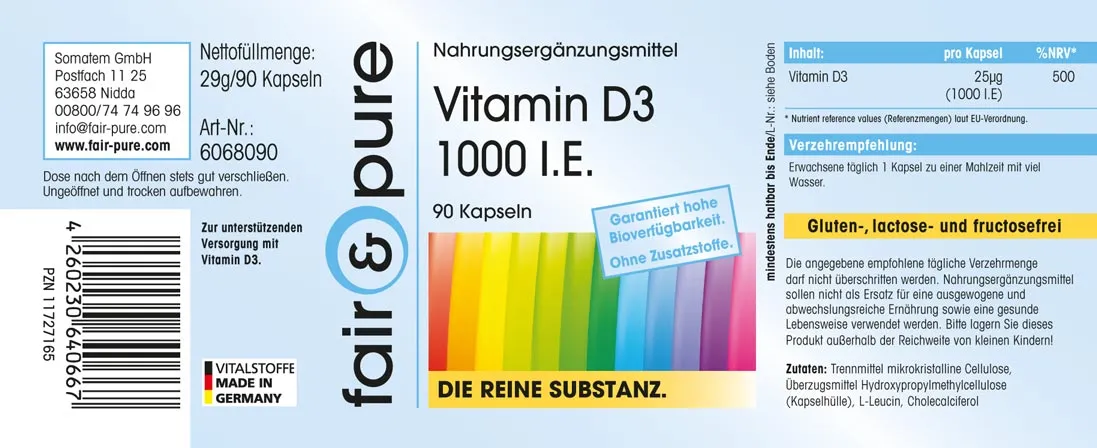 Produktinformationen "Vitamin D3 1000 I.E. | fair-pure"
