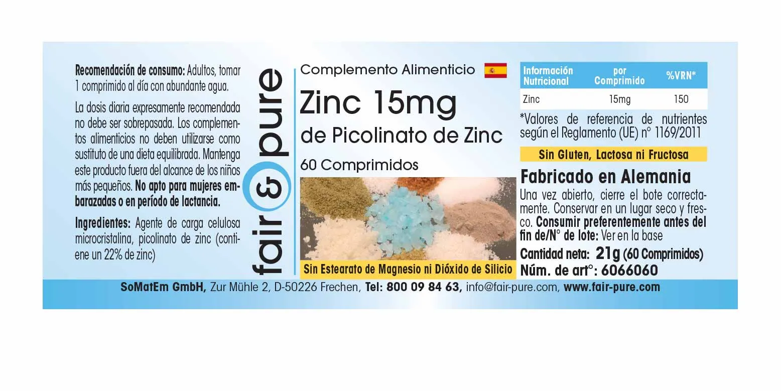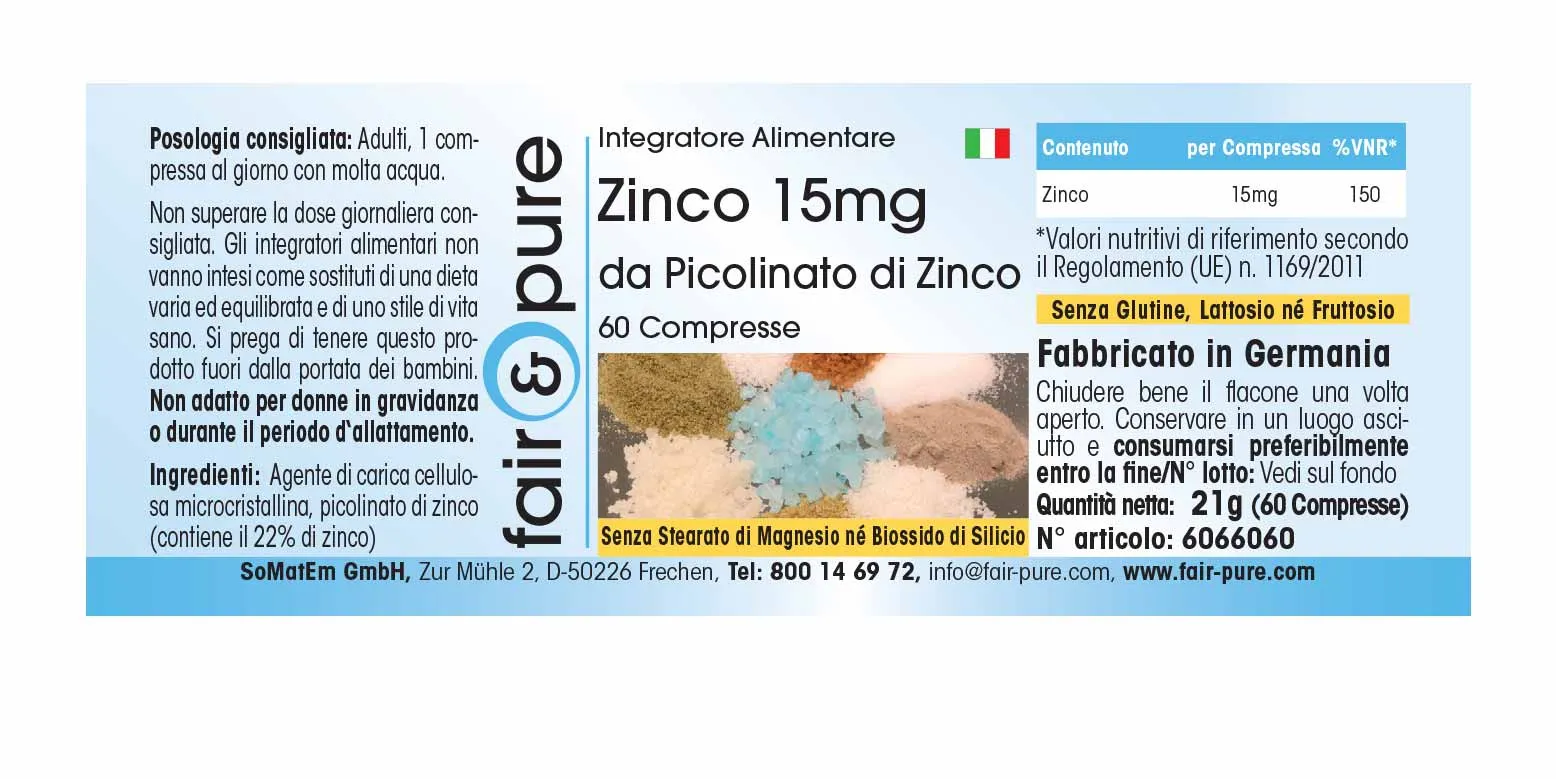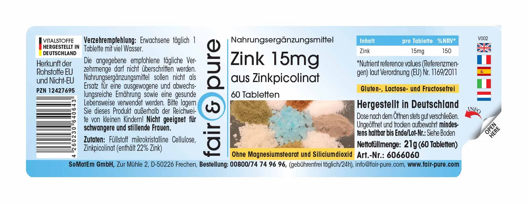 Diese Tabletten enthalten 15 mg Zink pro Tablette in einer gut verfügbaren Form. Zink ist ein wichtiges Spurenelement, das natürlicherweise in Lebensmitteln wie Fleisch, Nüssen und Hülsenfrüchten vorkommt.