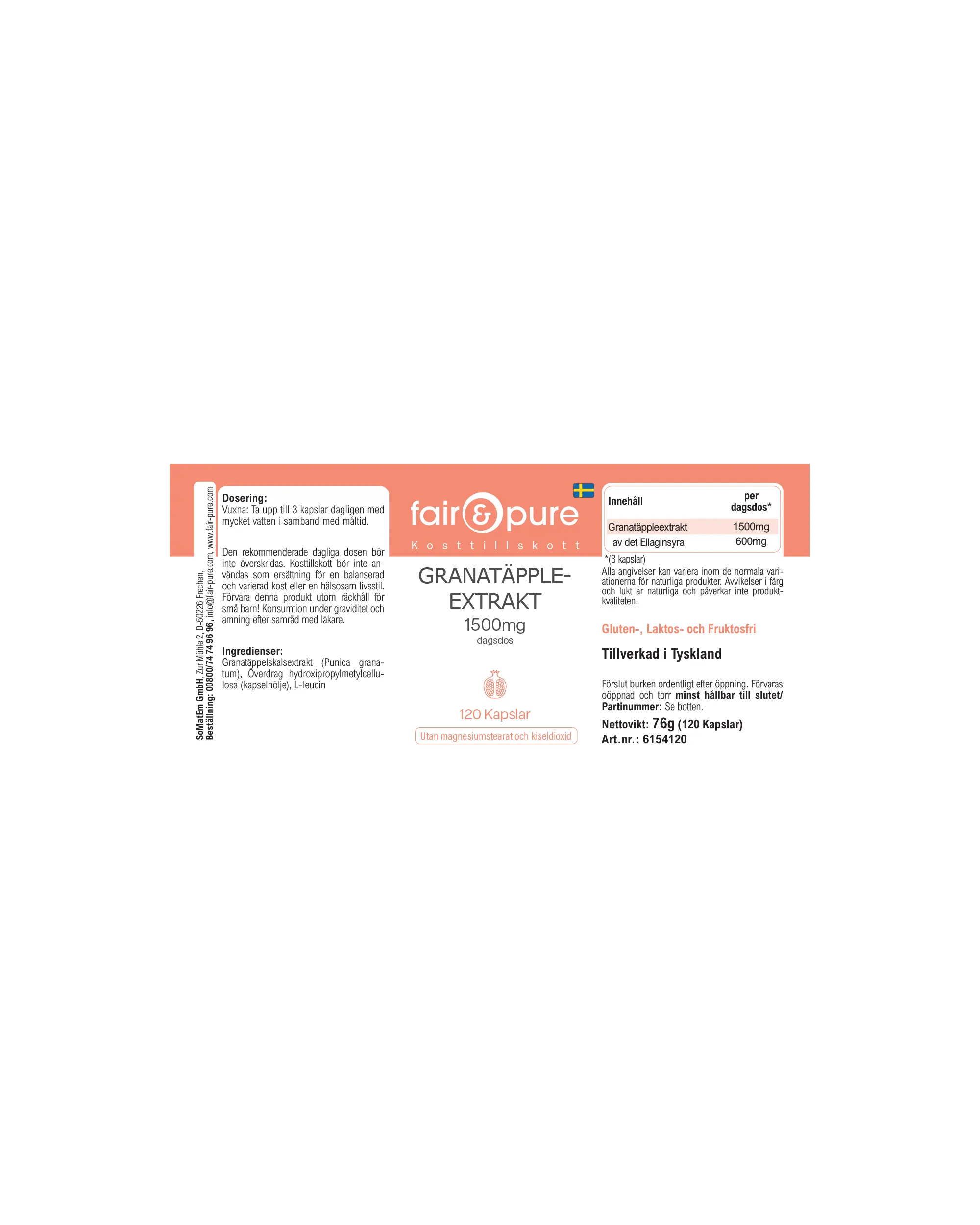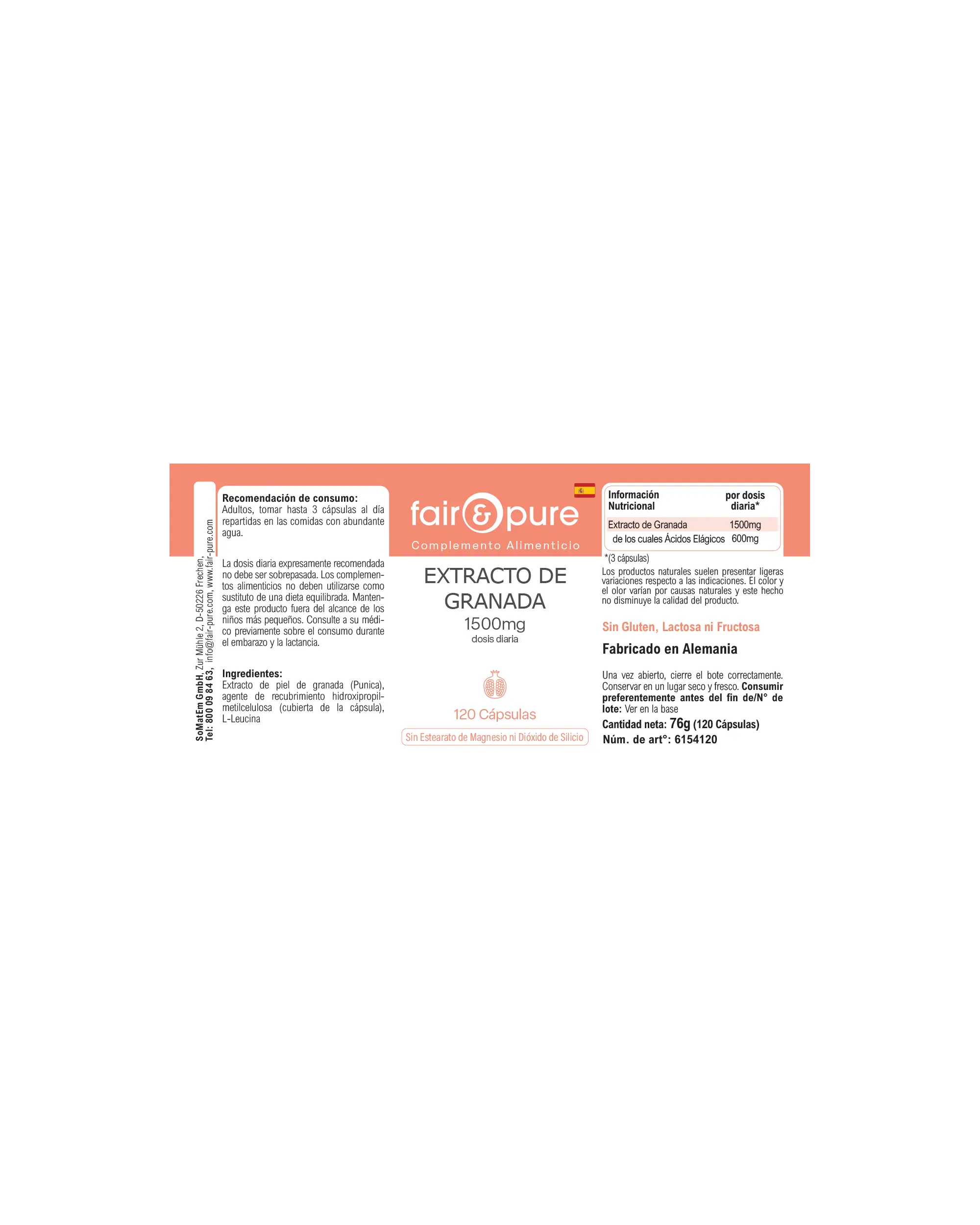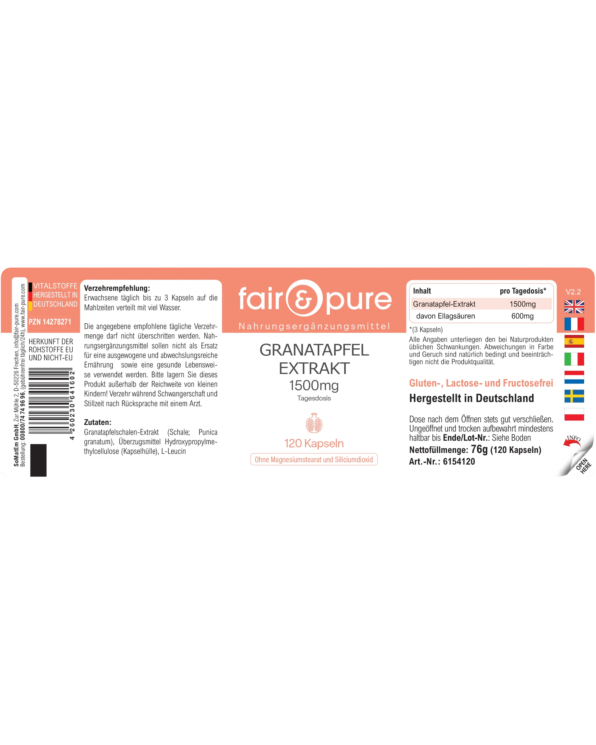Estas cápsulas contienen extracto concentrado de cáscara de granada con un alto contenido del 40% de ácidos elágicos – uno de los valiosos compuestos vegetales secundarios de la granada (Punica granatum).