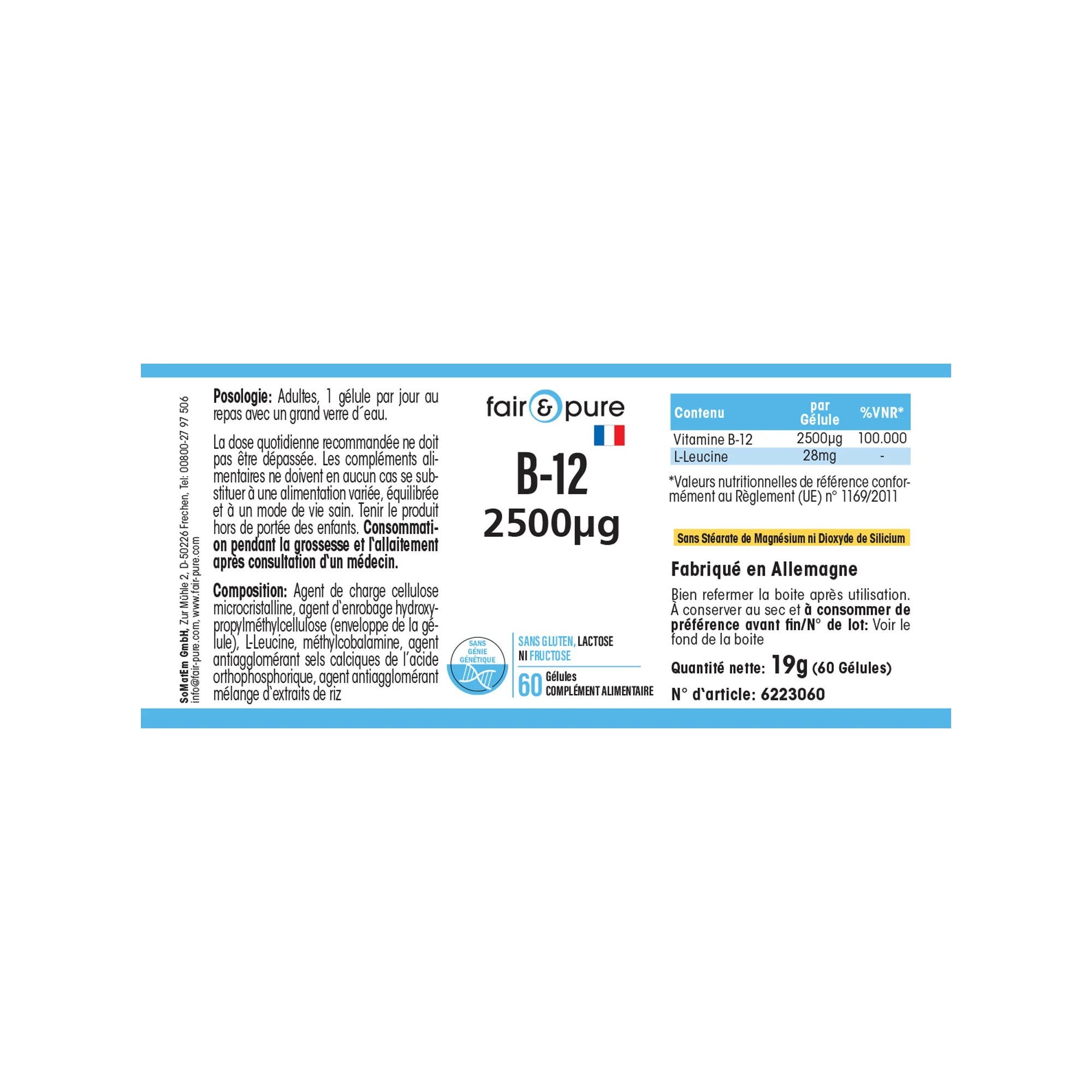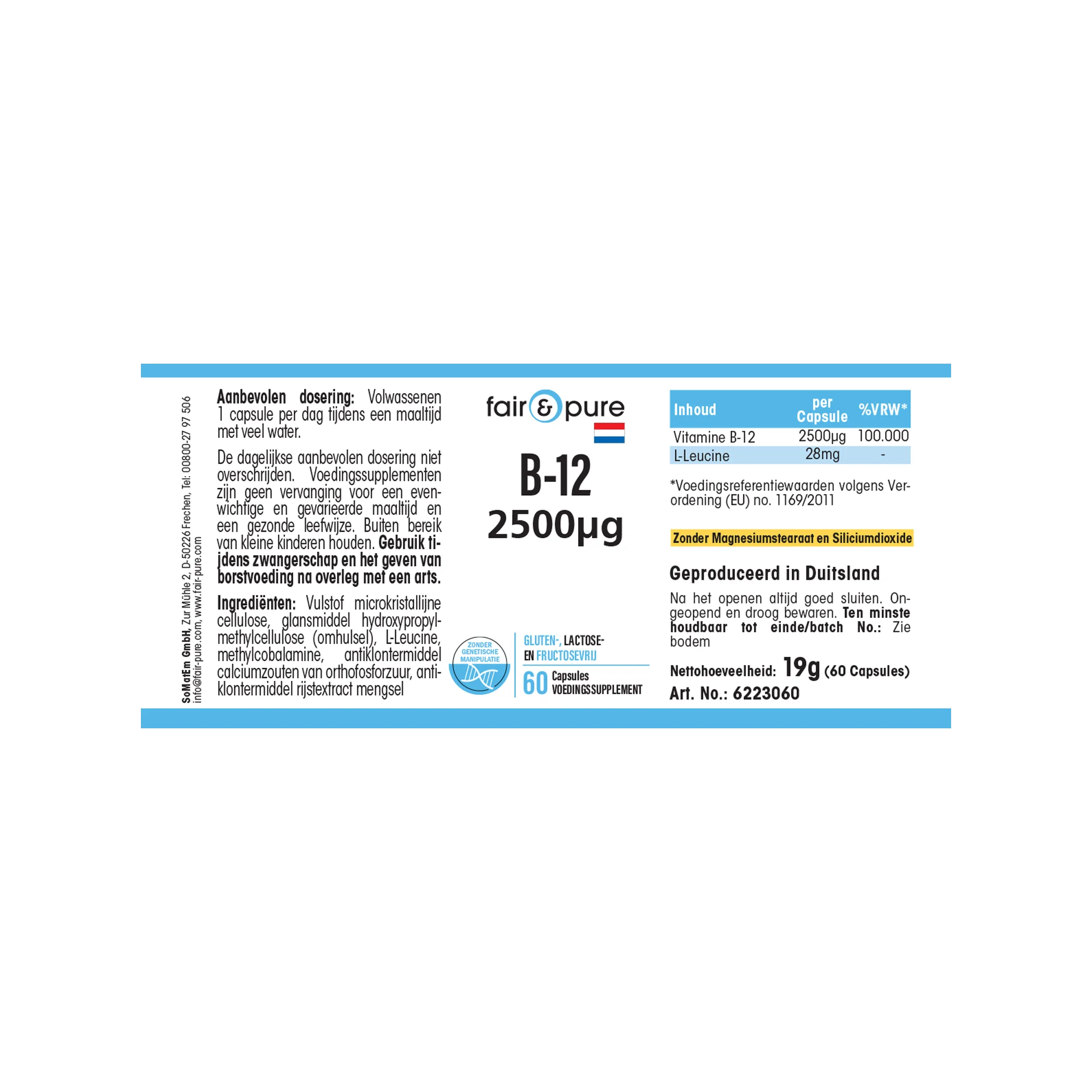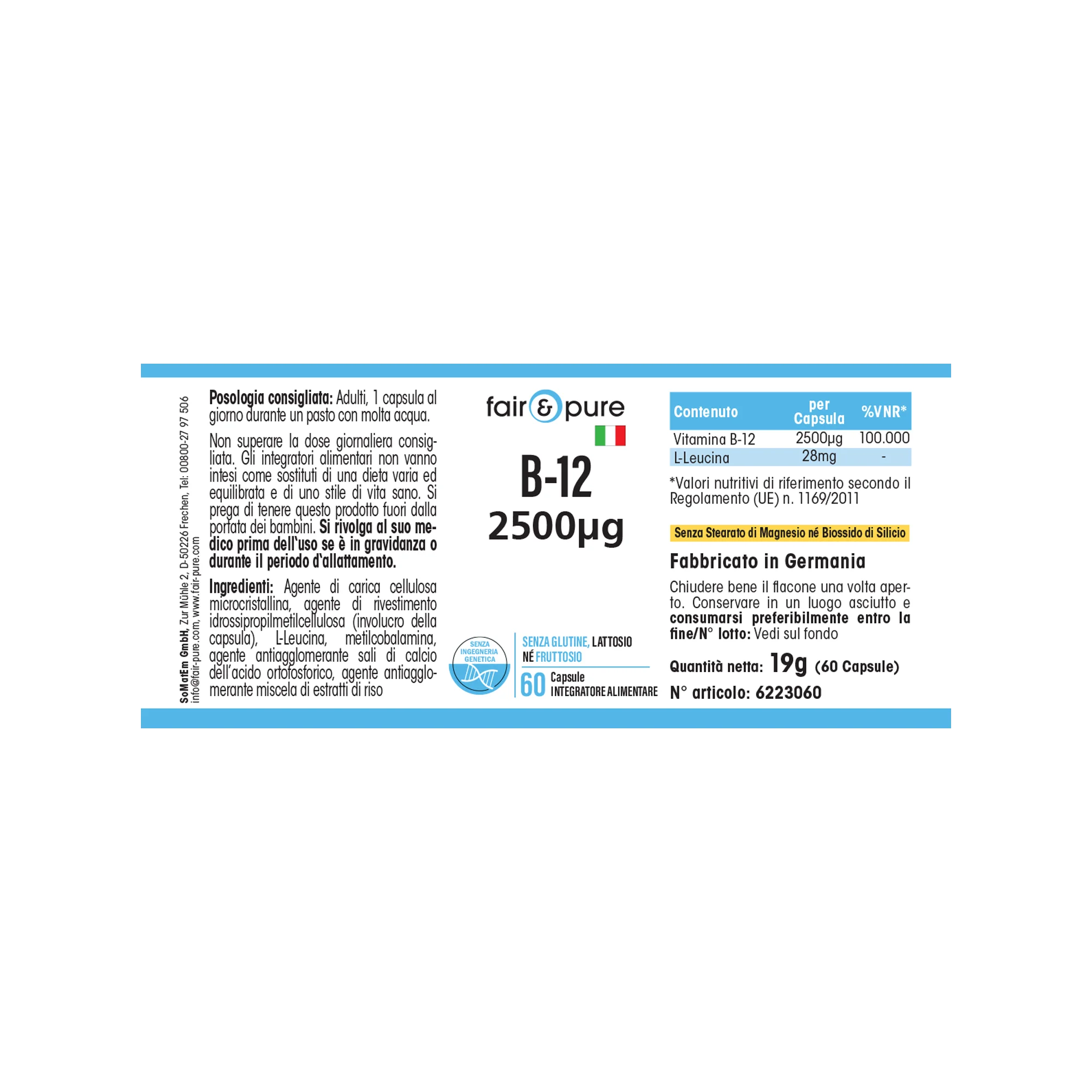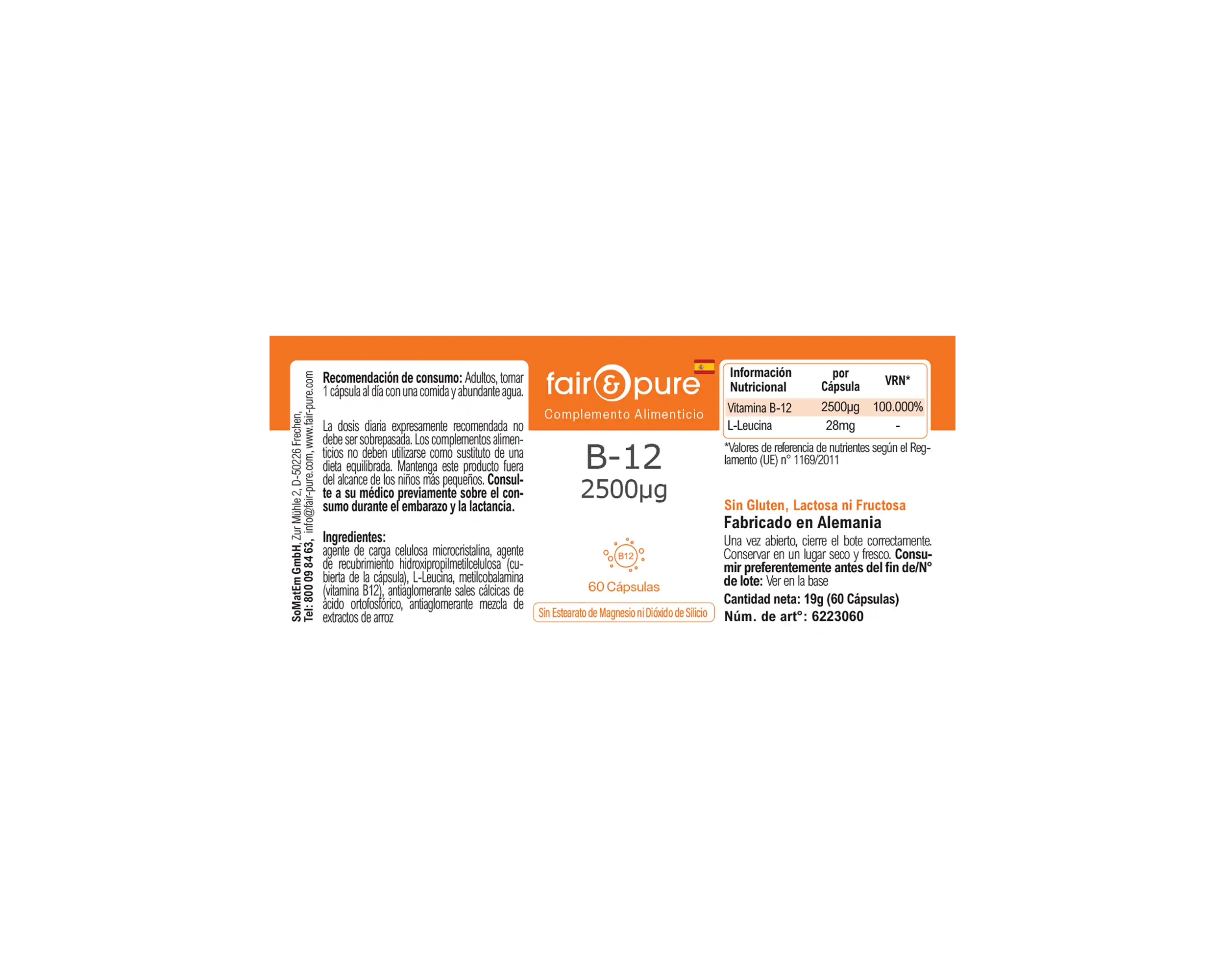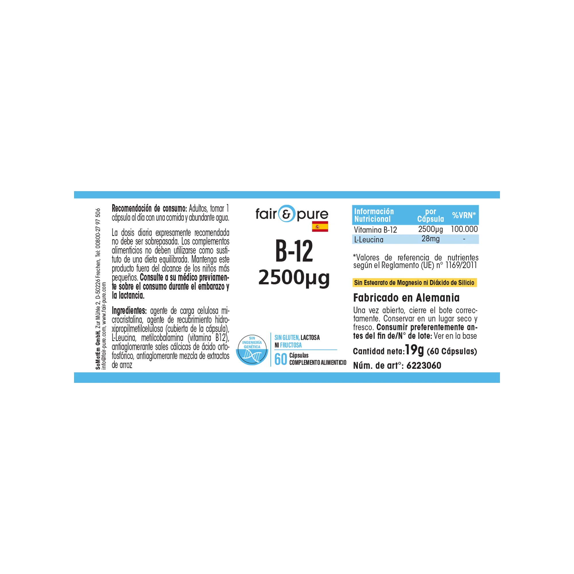 Dado que la ingesta a través de la dieta puede variar, estas cápsulas ofrecen una forma sencilla y precisa de complementar. Cada cápsula contiene 2500 µg de vitamina B12 en una dosis precisa.