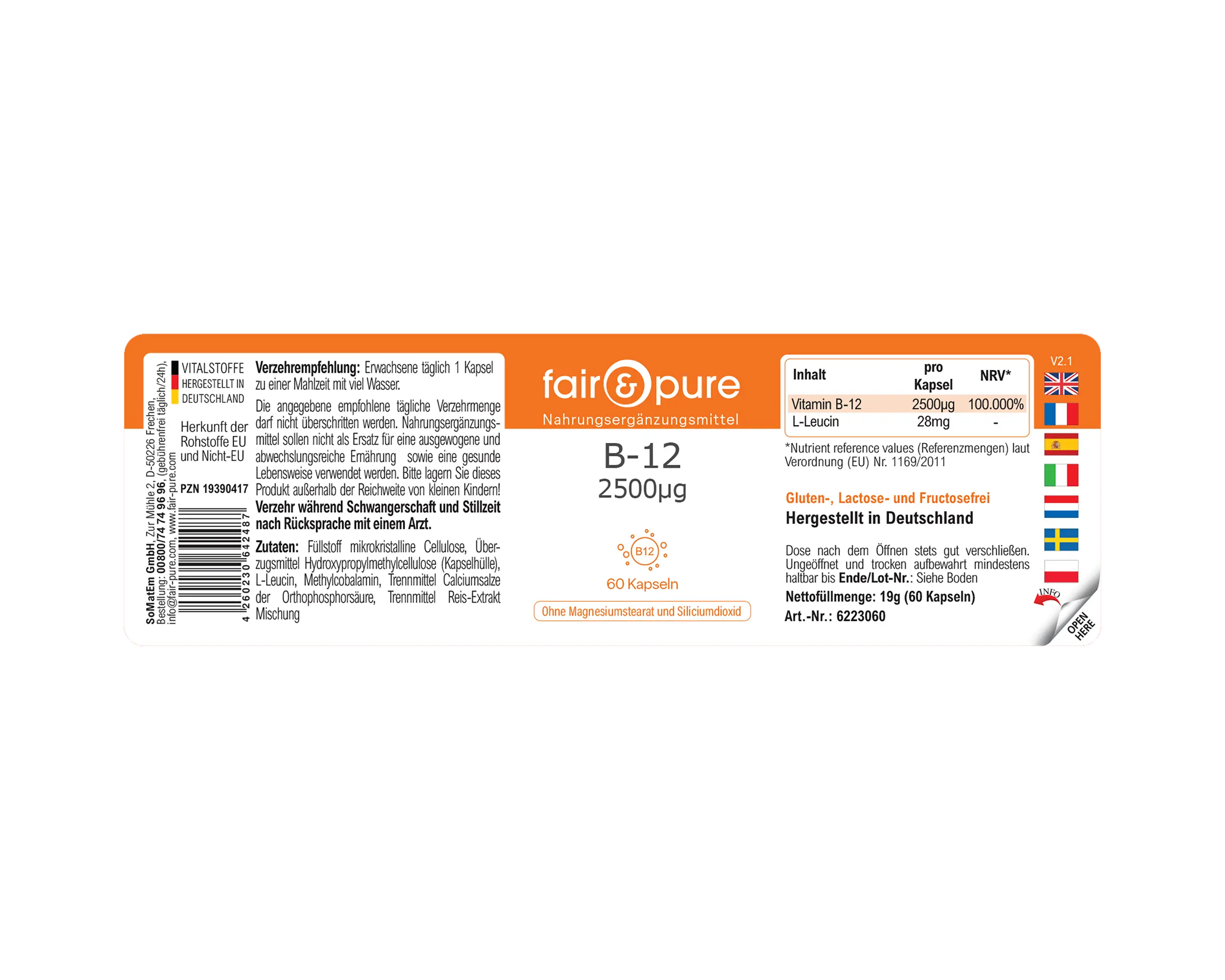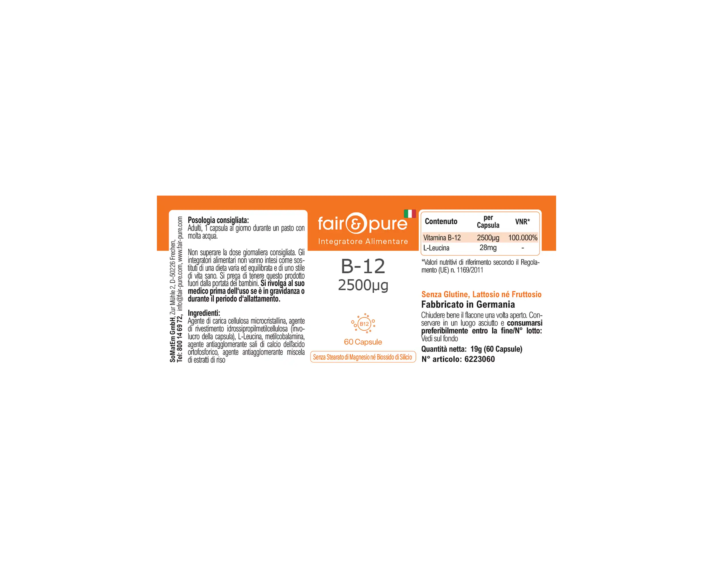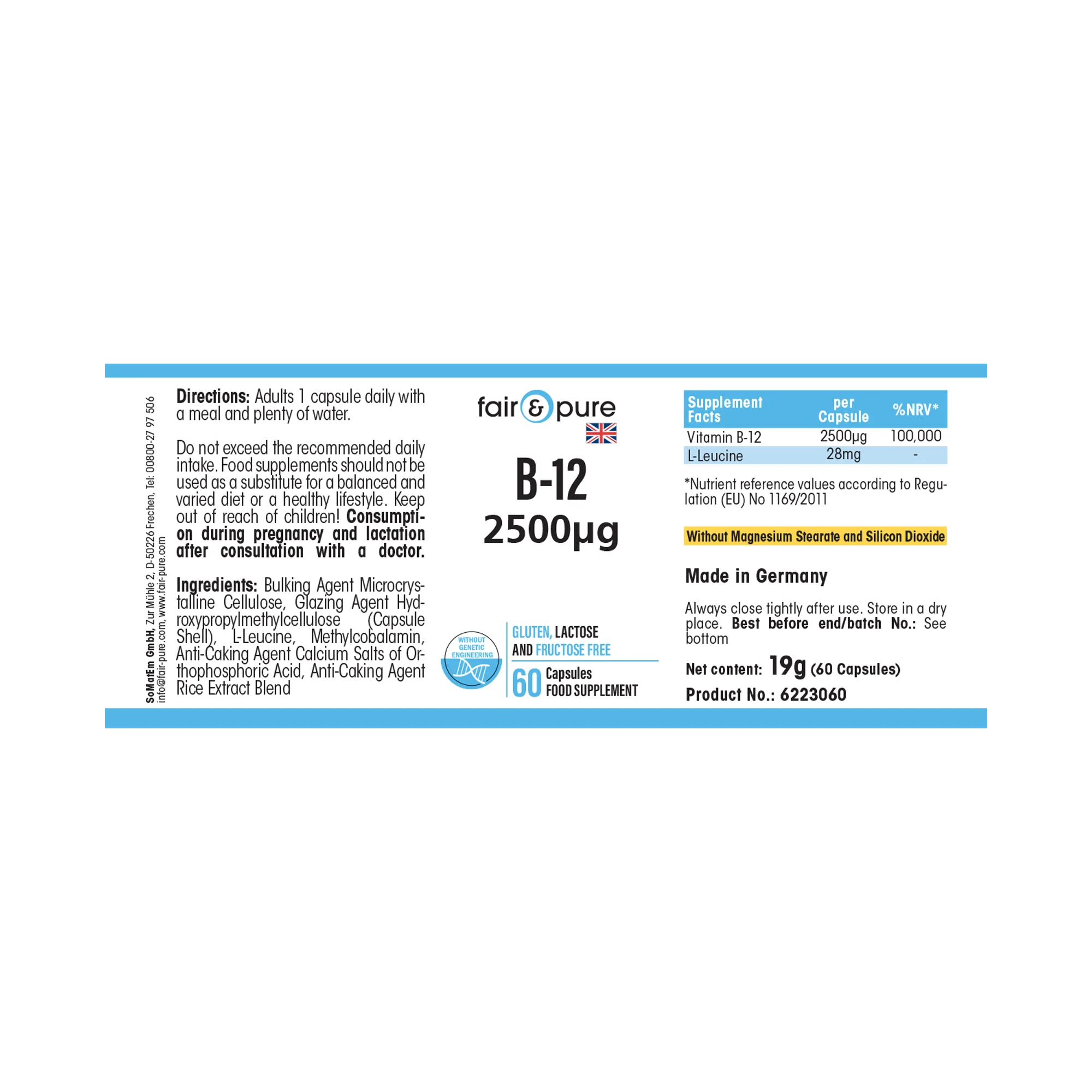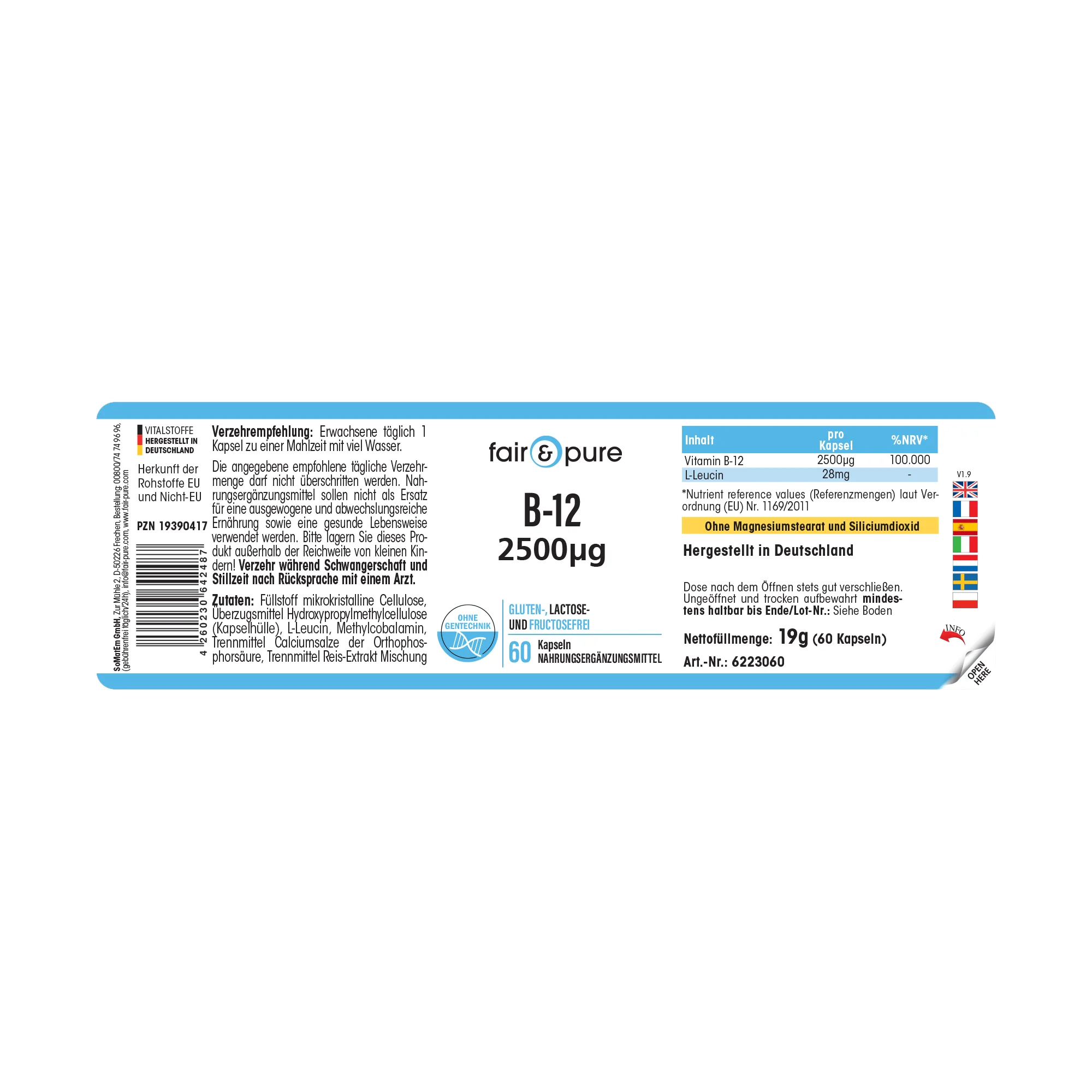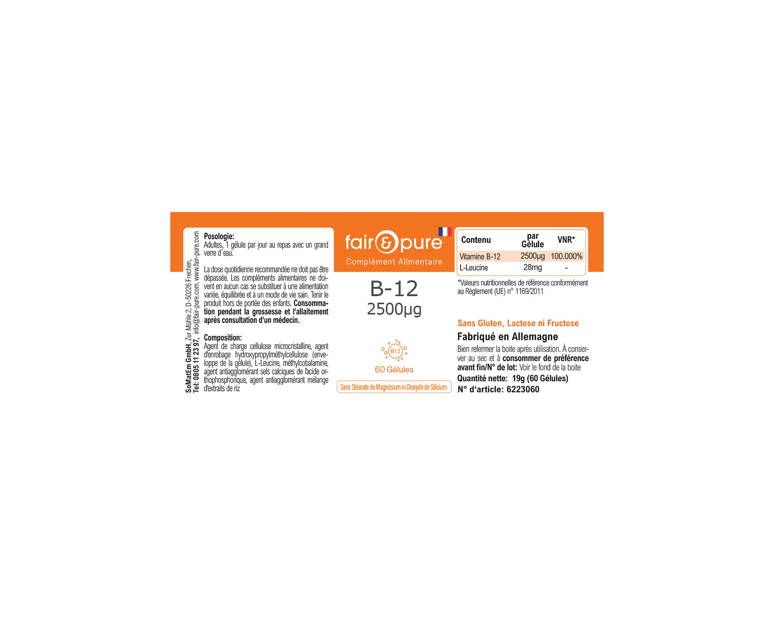 Dado que la ingesta a través de la dieta puede variar, estas cápsulas ofrecen una forma sencilla y precisa de complementar. Cada cápsula contiene 2500 µg de vitamina B12 en una dosis precisa.