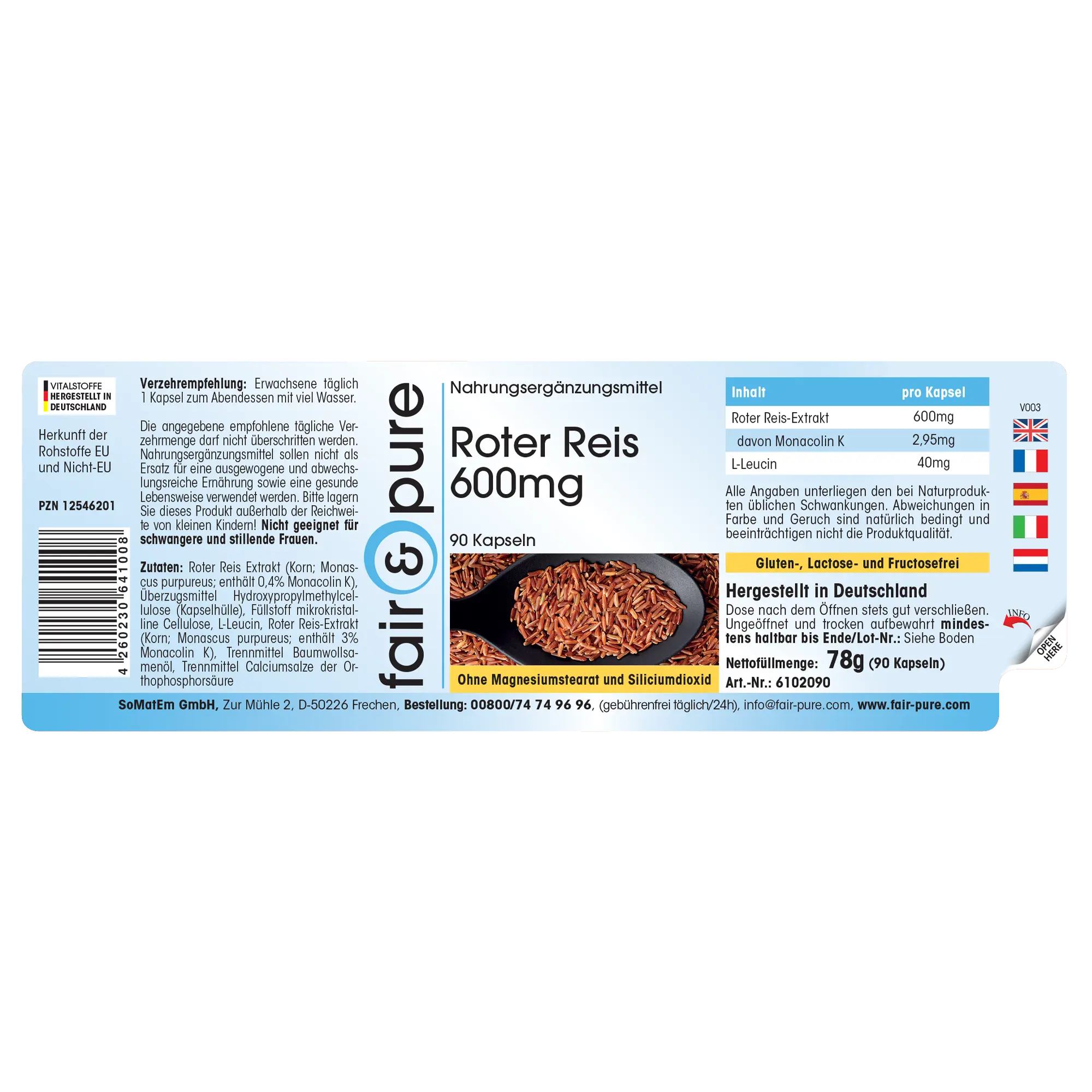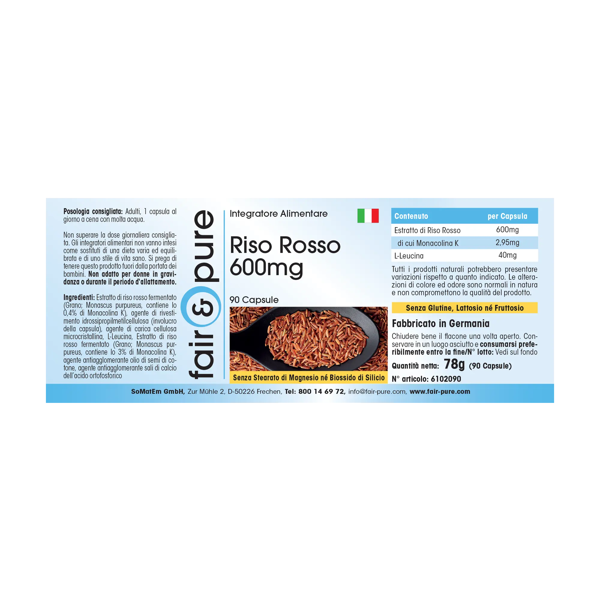 Extracto de arroz rojo (Monascus purpureus, contiene 0,75% de Monacolina K), agente de recubrimiento hidroxipropilmetilcelulosa (cubierta de la cápsula), agente de carga celulosa microcristalina, extracto de salvado de arroz, aceite vegetal hidrogenado, sales cálcicas de ácido ortofosfórico