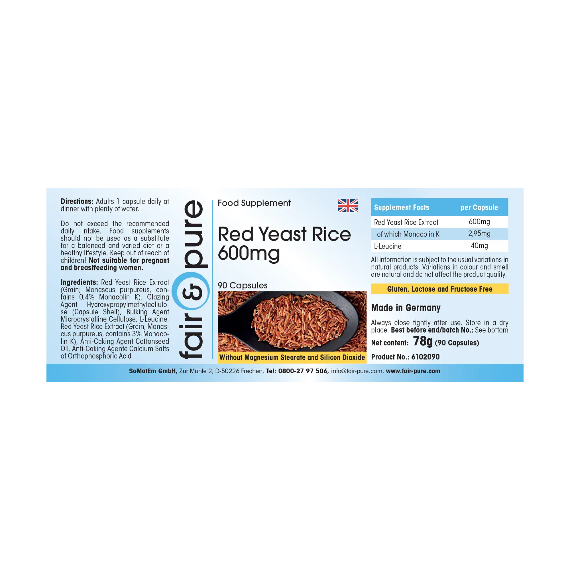 Información sobre el producto "Arroz rojo fermentado 600mg "