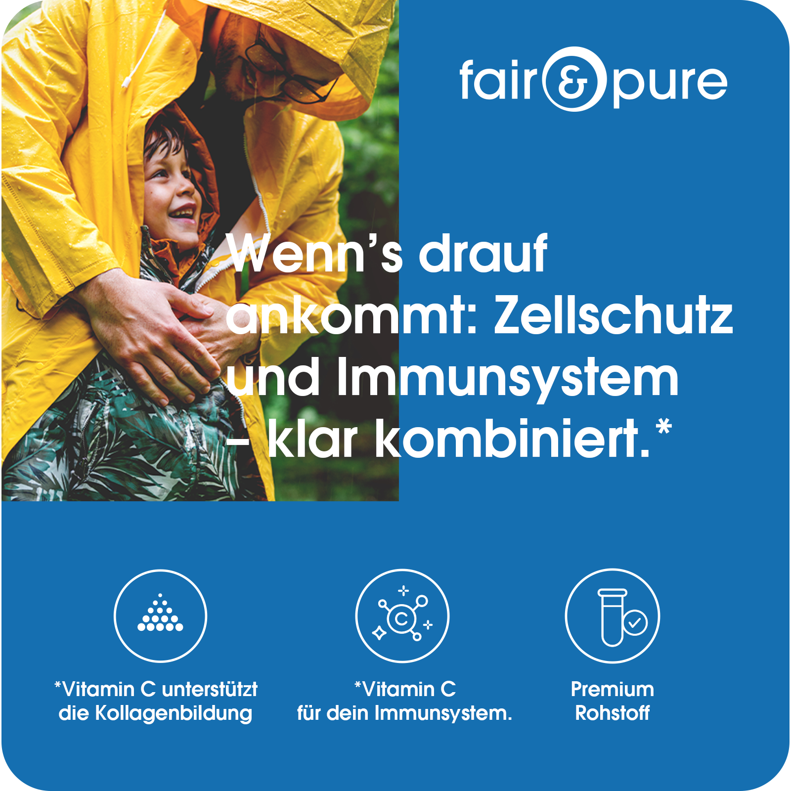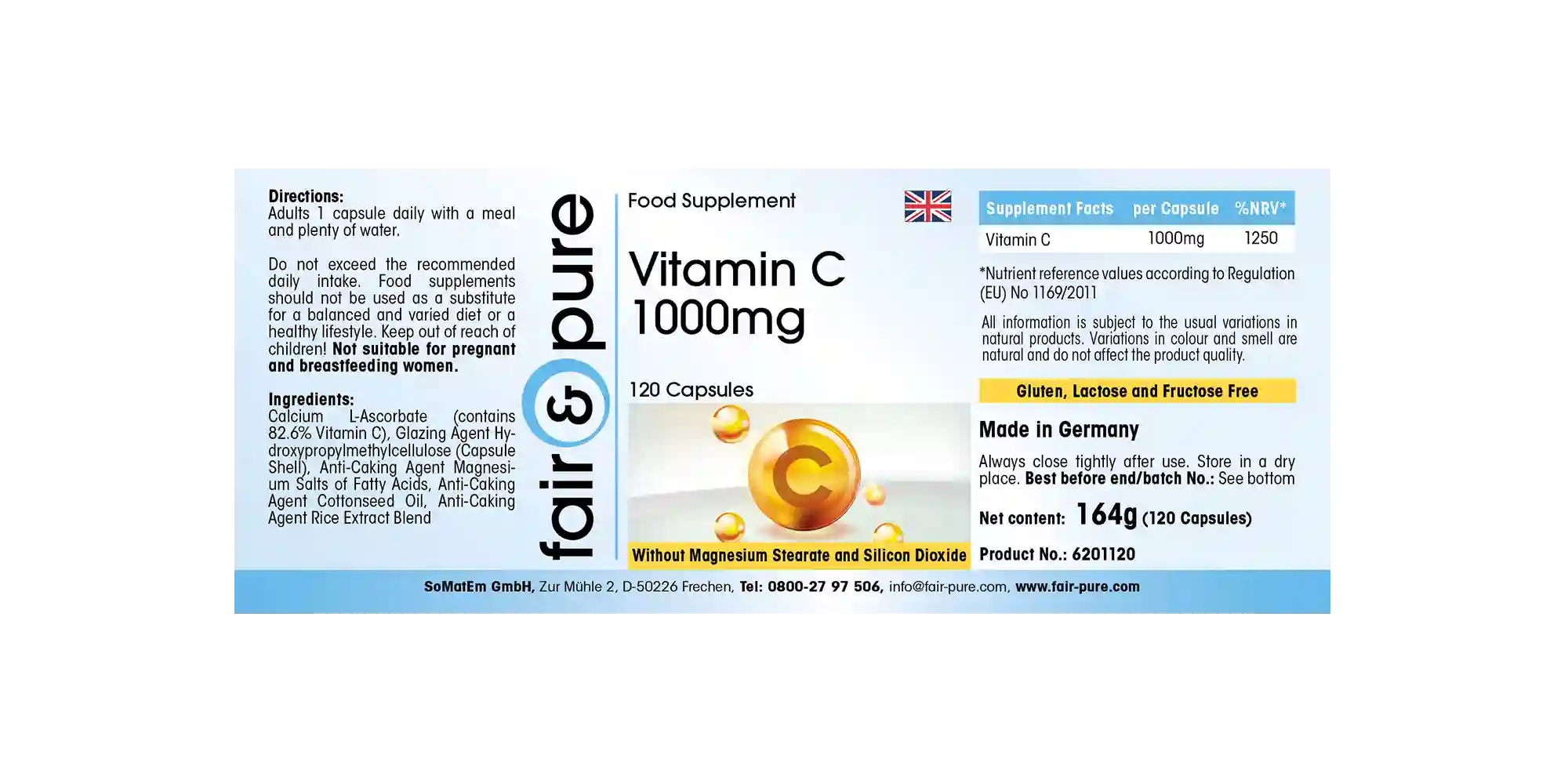Esta vitamina C de Fair & Pure es fácil de digerir. A diferencia del ácido ascórbico, la vitamina C está unida al calcio para amortiguar el ácido. Esto es conveniente para las personas con problemas estomacales.
