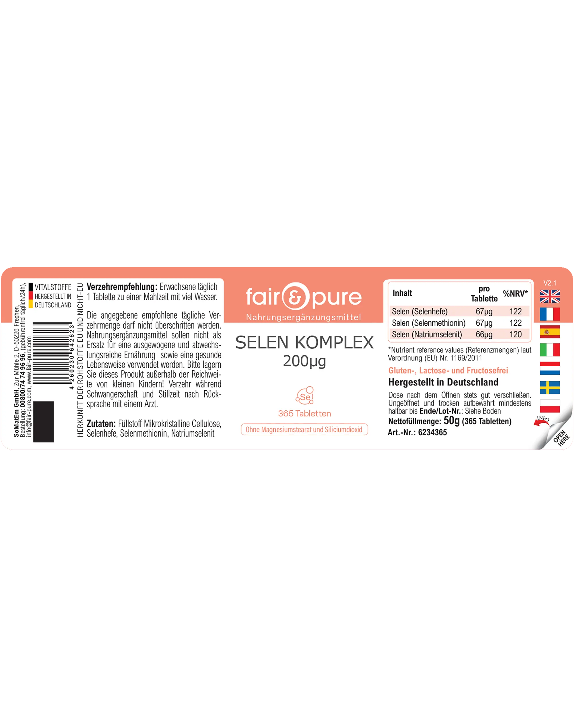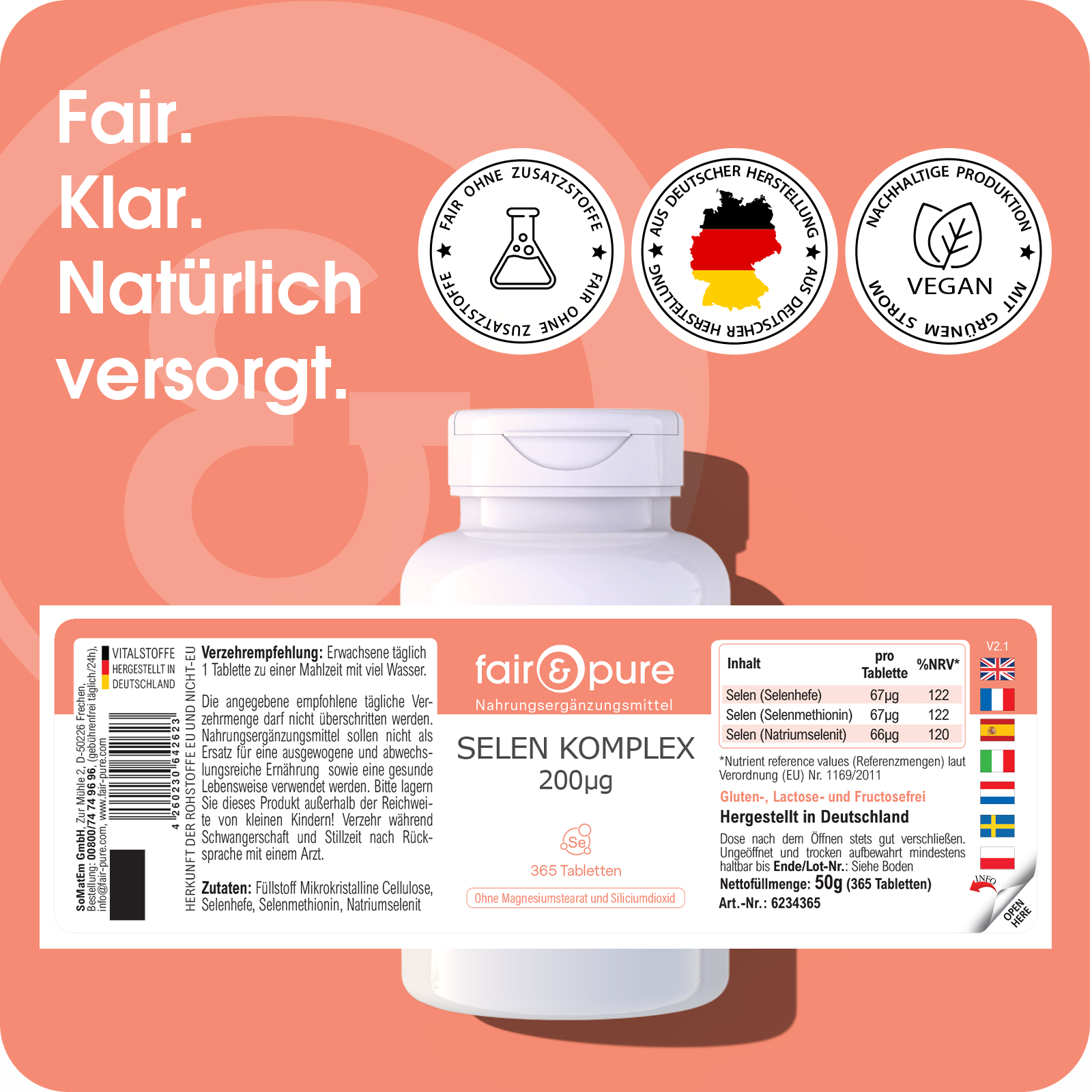 Informazioni sul prodotto "Complesso di selenio 200 µg - 365 compresse - per il sistema immunitario e la tiroide | fair-pure"