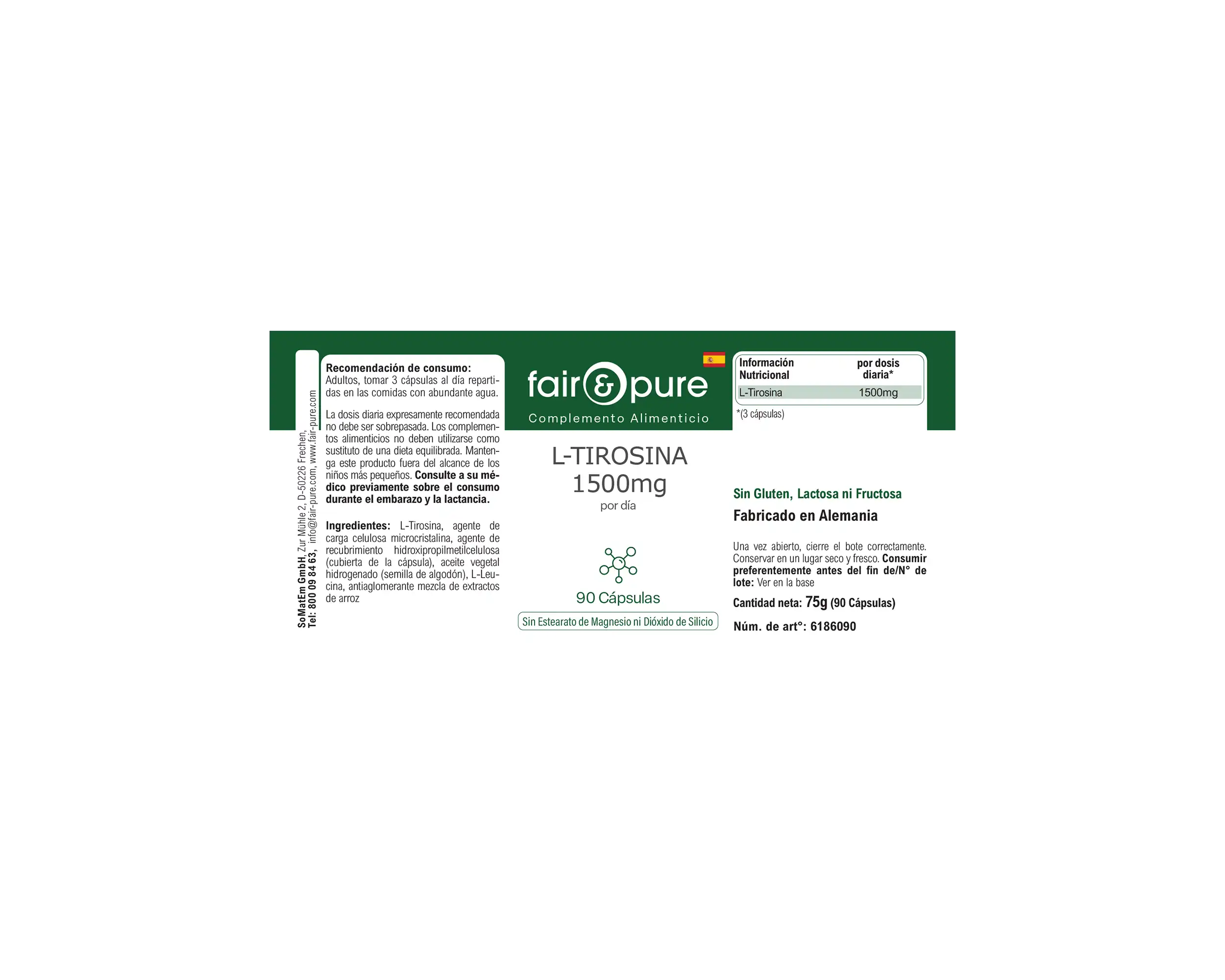 L-Tirosina, Cellulosa microcristallina (agente di carica), Idrossipropilmetilcellulosa (capsula), Olio di semi di cotone (agente antiagglomerante), L-Leucina, Miscela di estratto di riso (agente antiagglomerante).Raccomandazione di consumo