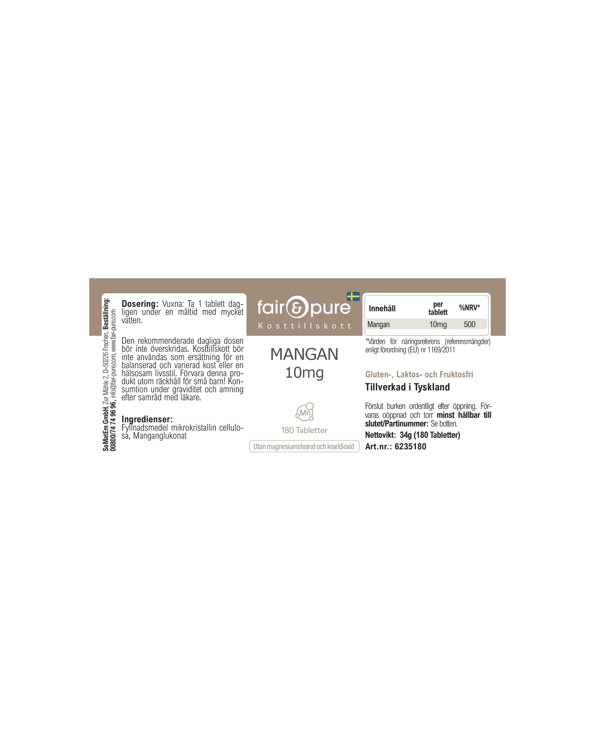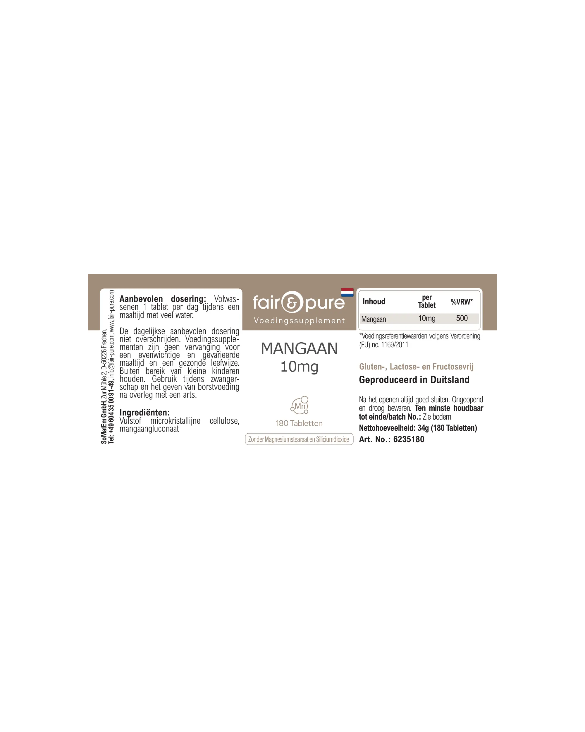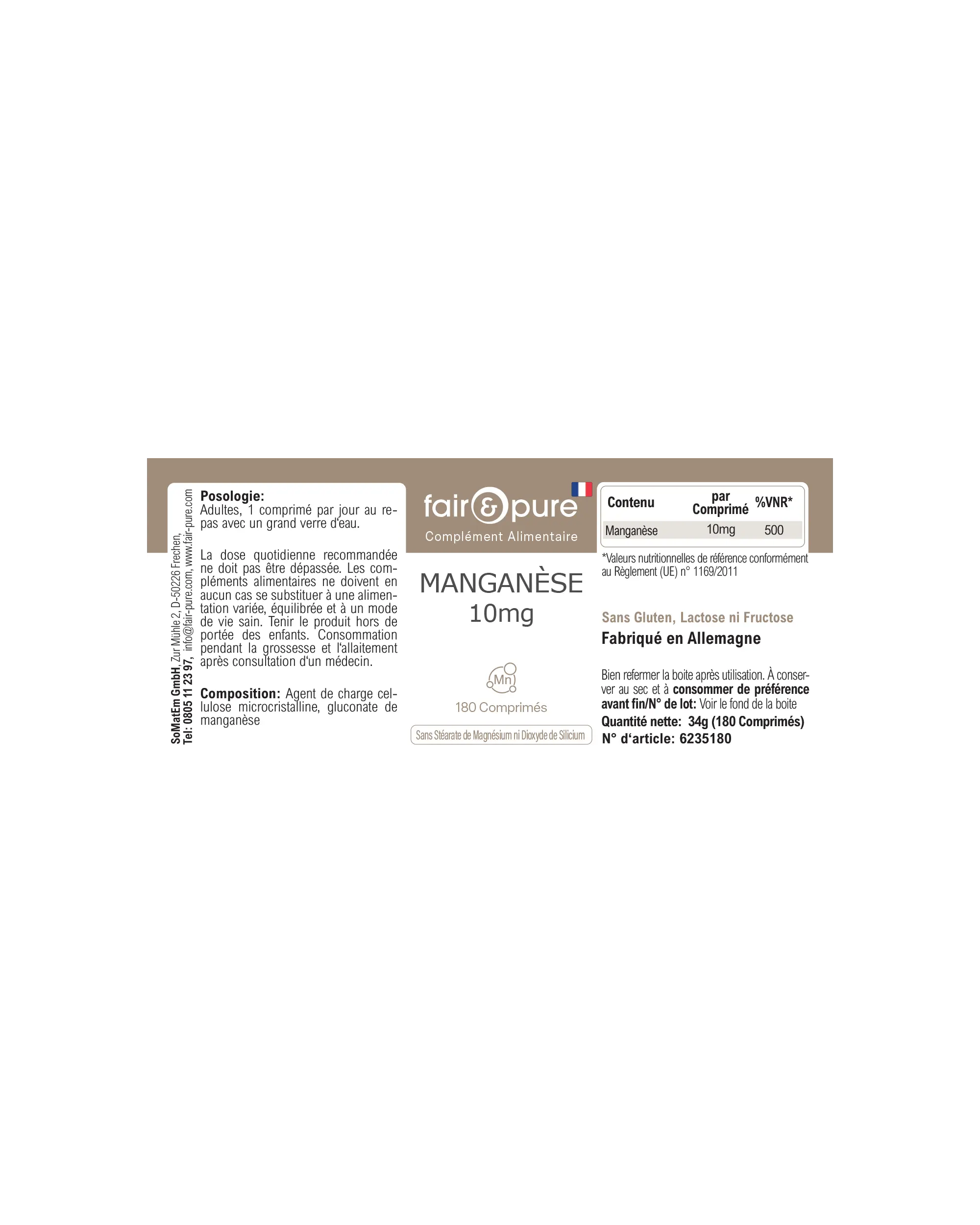 Informazioni sul prodotto "Manganese 10 mg - 180 compresse | fair-pure"
