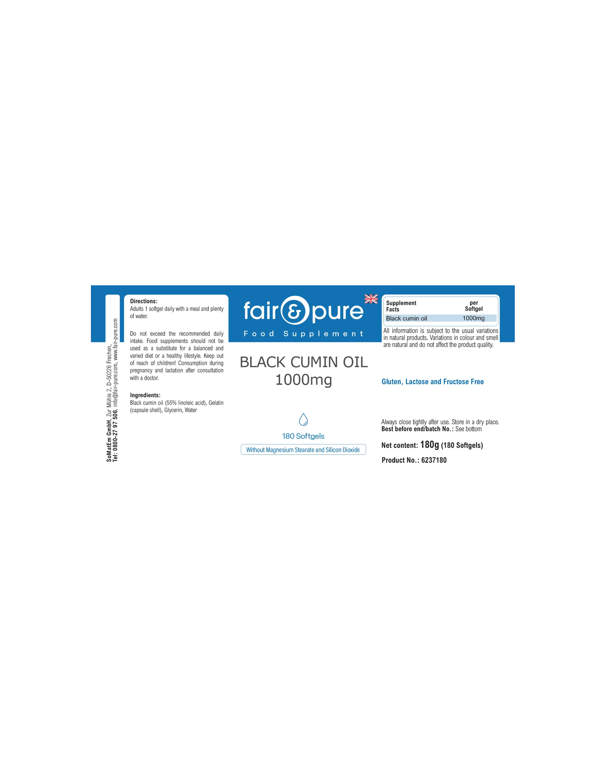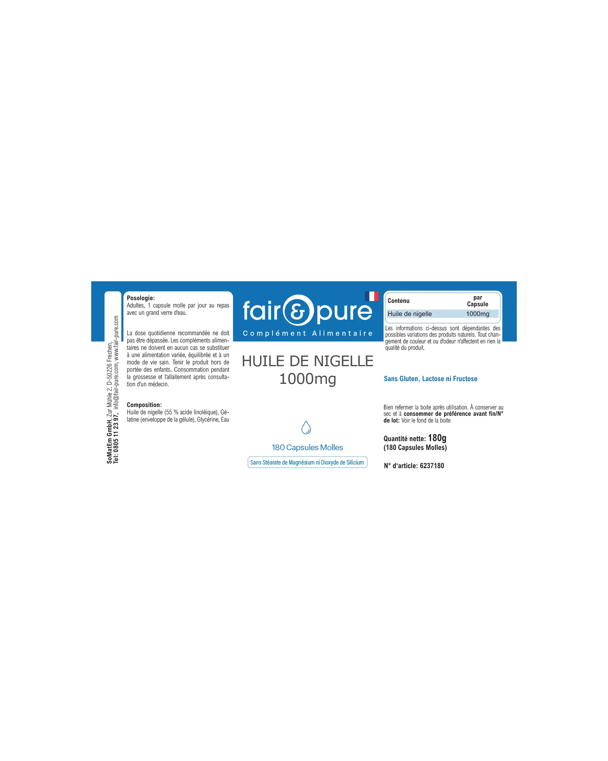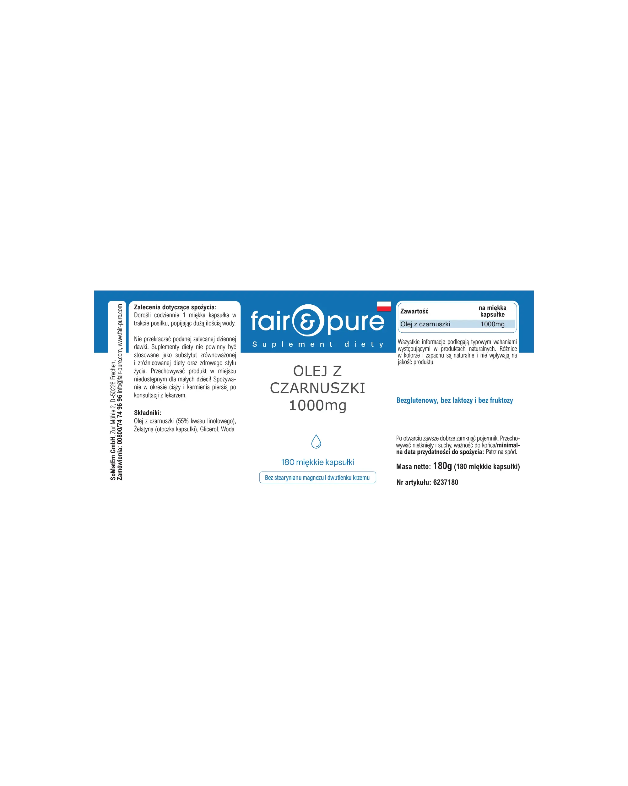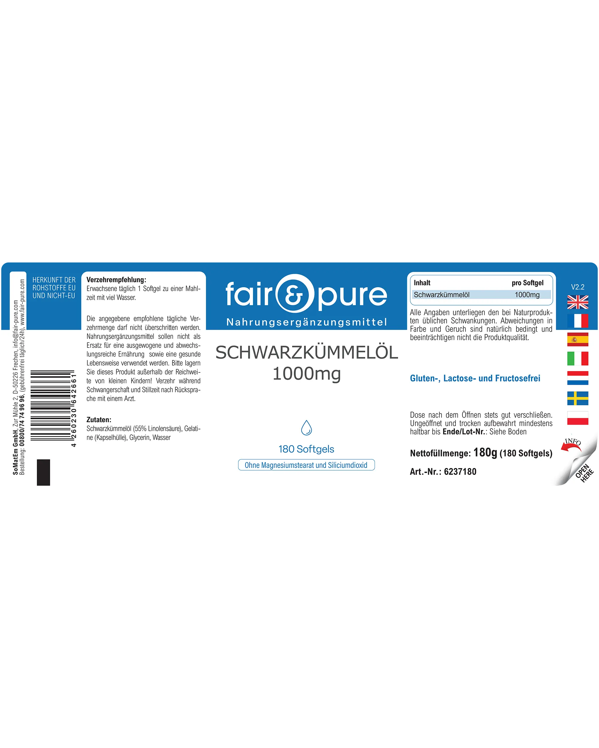 Informazioni sul prodotto "Olio di cumino nero 1000 mg - 180 capsule molli | fair-pure"