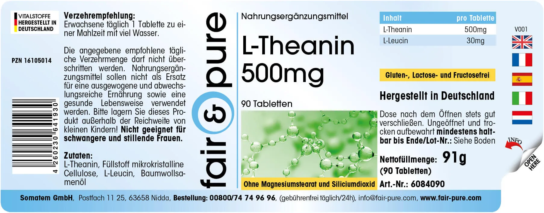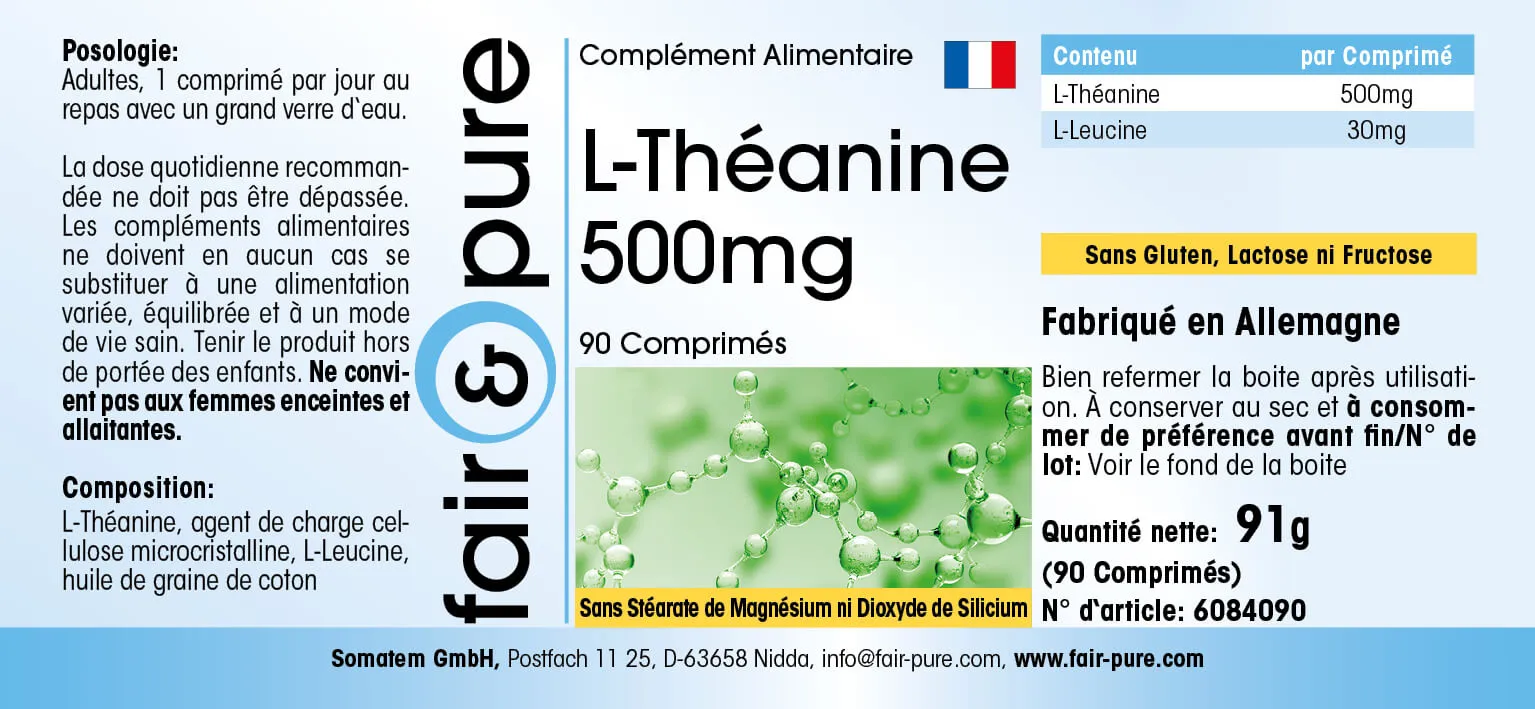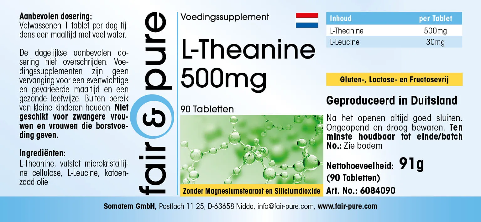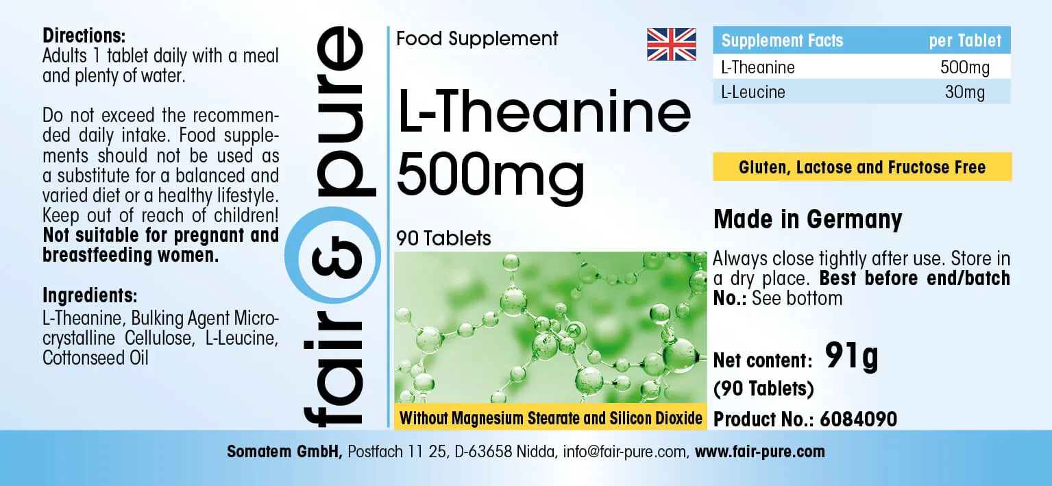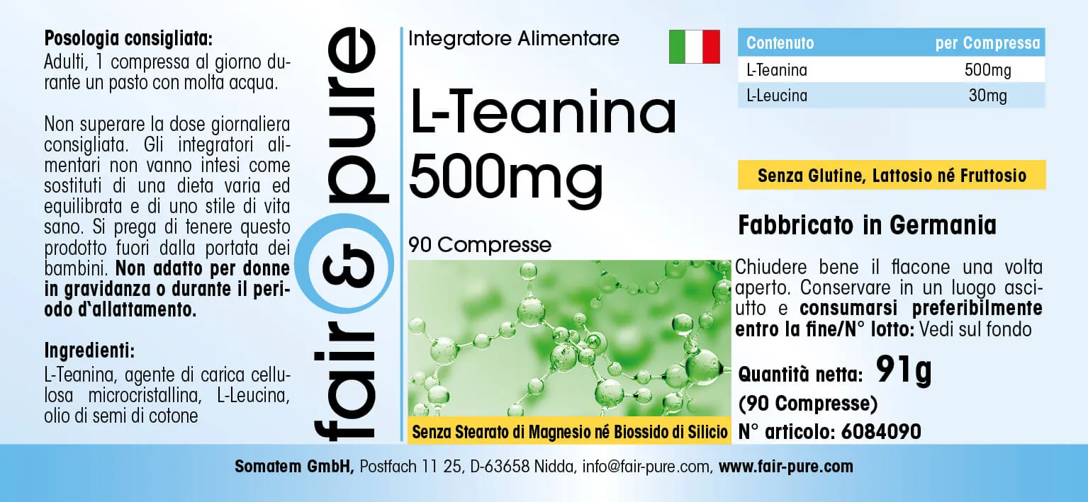 L-Teanina, agente di carica cellulosa microcristallina, L-Leucina, olio di semi di cotone