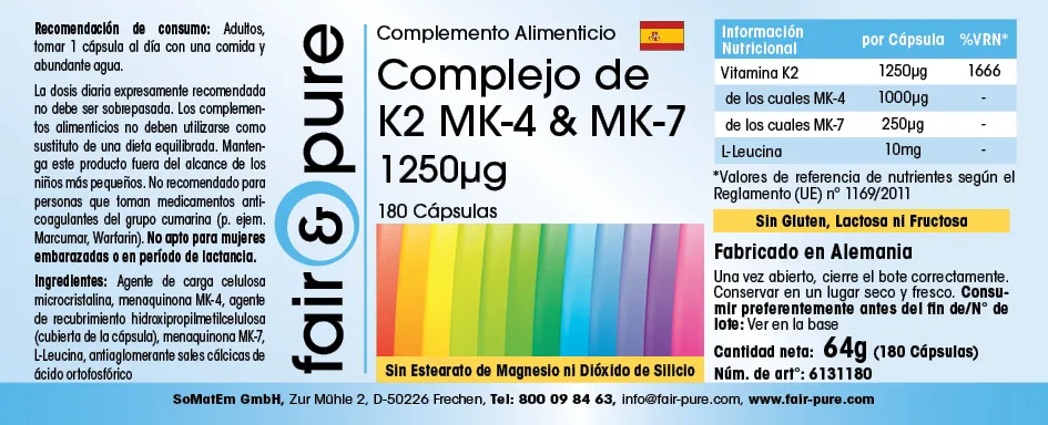 Agente di carica cellulosa microcristallina, menachinone MK-4, agente di rivestimento idrossipropilmetilcellulosa (involucro della capsula), menachinone MK-7, L-Leucina, sali di calcio dell'acido ortofosforico
