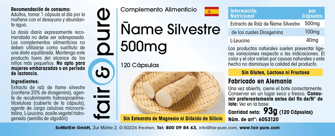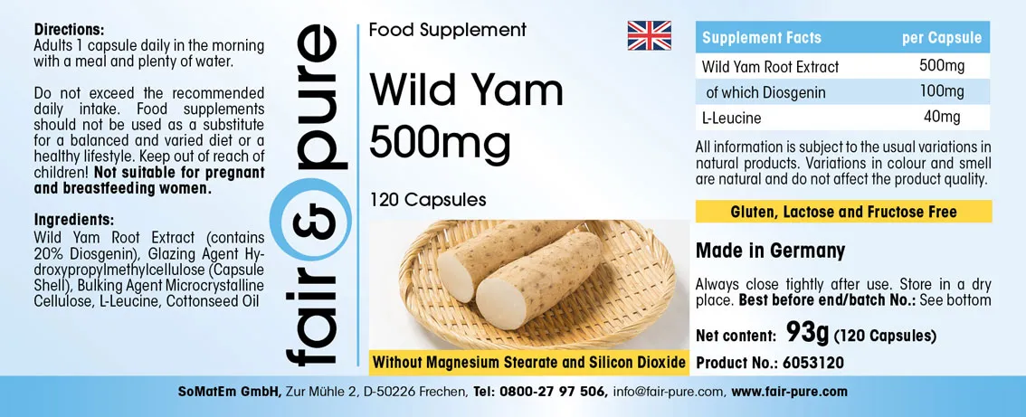 Estratto di radice di igname selvatico (contiene il 20% di diosgenina), agente di rivestimento idrossipropilmetilcellulosa (involucro della capsula), agente di carica cellulosa microcristallina, L-Leucina, olio di semi di cotone