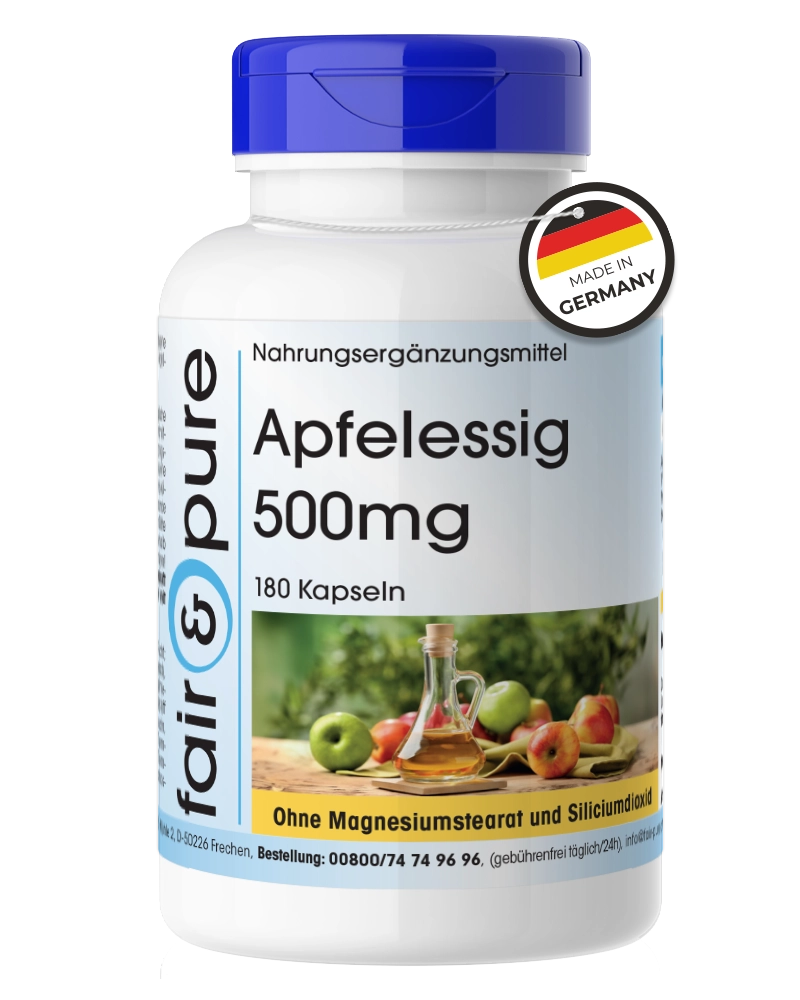 Le capsule permettono un'assunzione facile, senza il tipico sapore dell'aceto. Ogni capsula fornisce un dosaggio preciso di 500 mg di aceto di mele ed è facilmente integrabile nella vita quotidiana.
