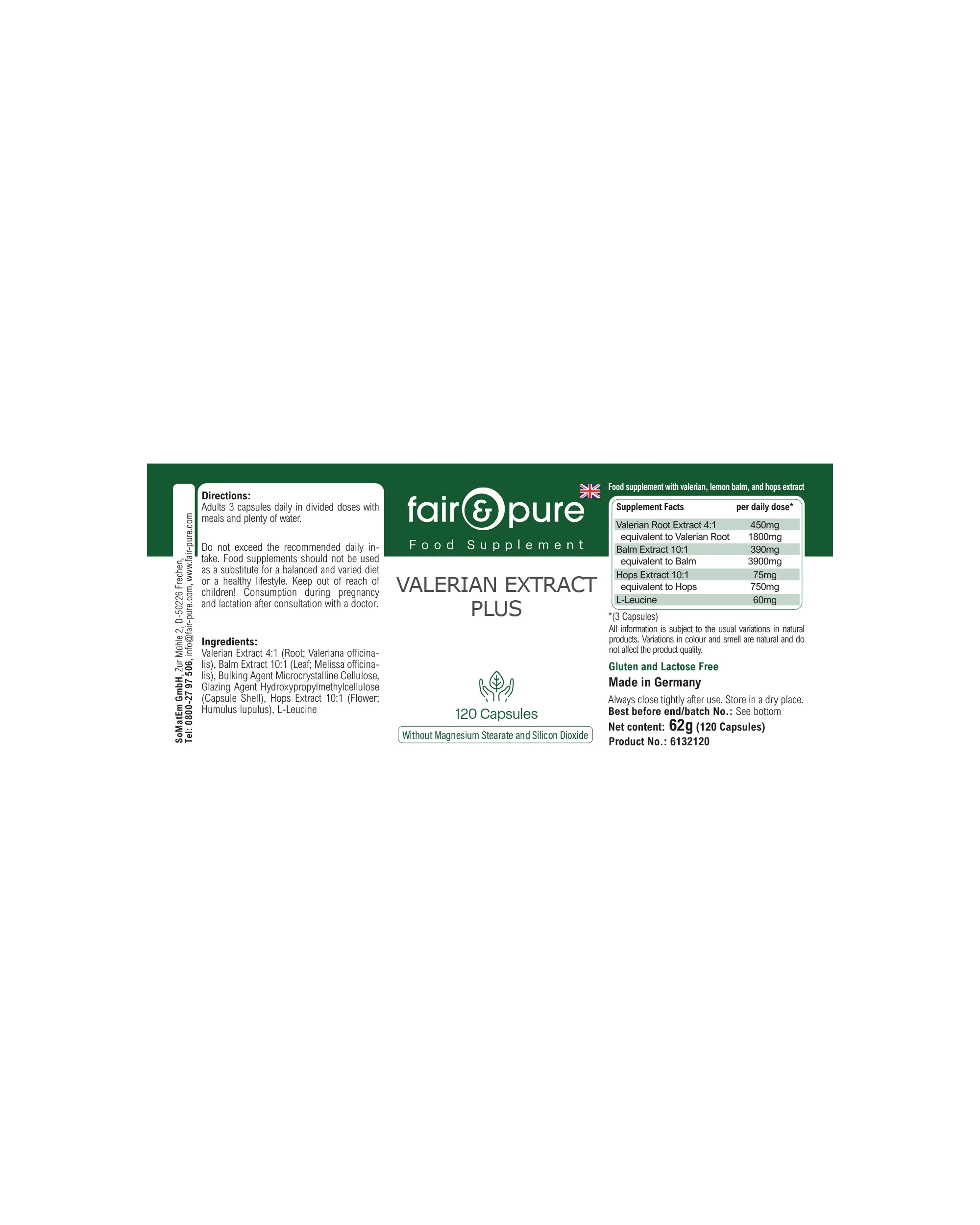 | entspricht Baldrian-Wurzeln / equivalent to valerian roots | 1800 mg |